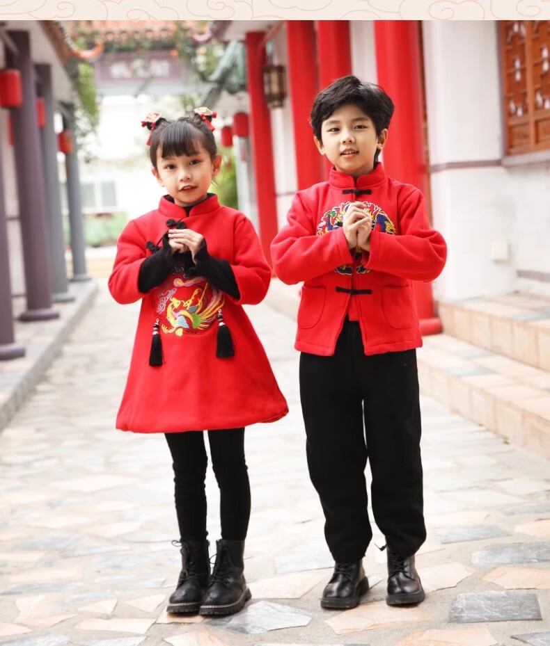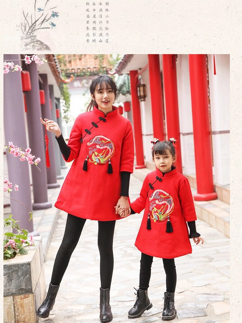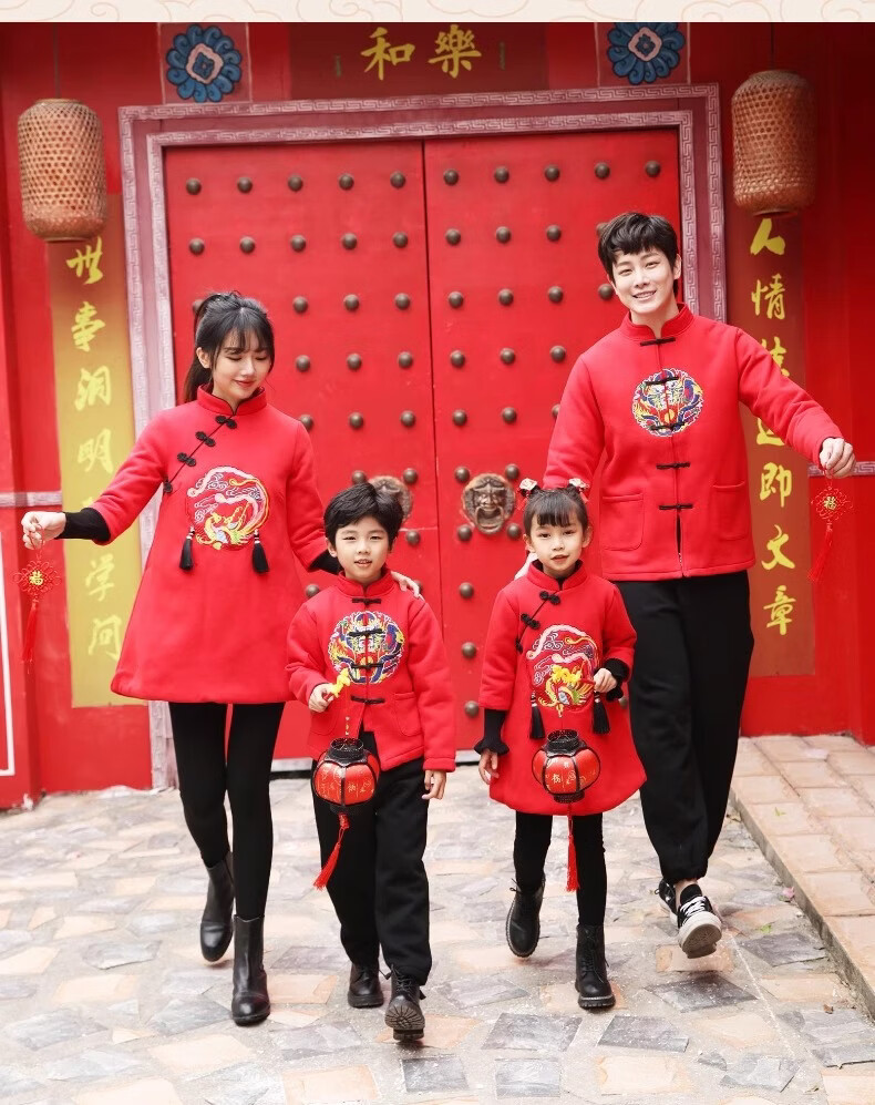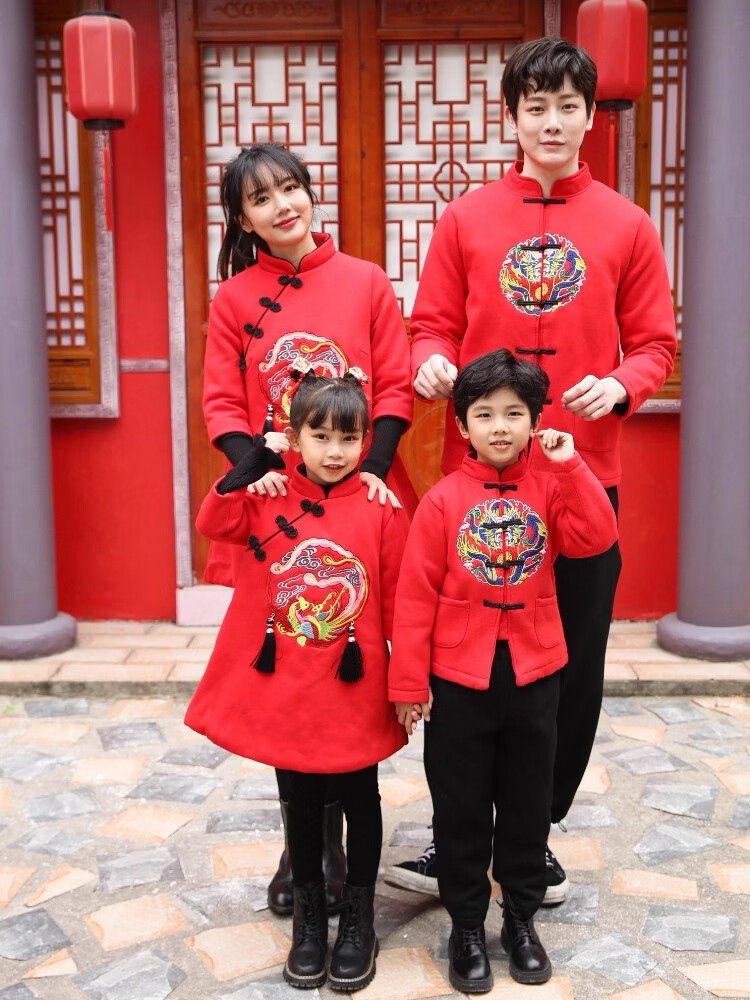 New Year's New Year's parent-child clothing, Hanfu, autumn and winter Chinese style, family of three, four, mother and son, mother-daughter clothing, New Year's greetings clothing, Tang suit, red 90 W87 men's 90 (single top)