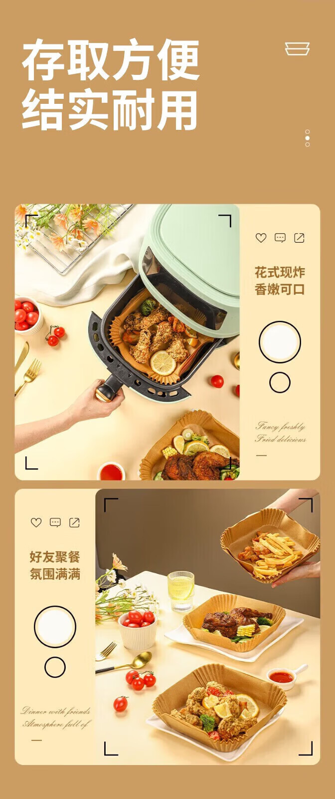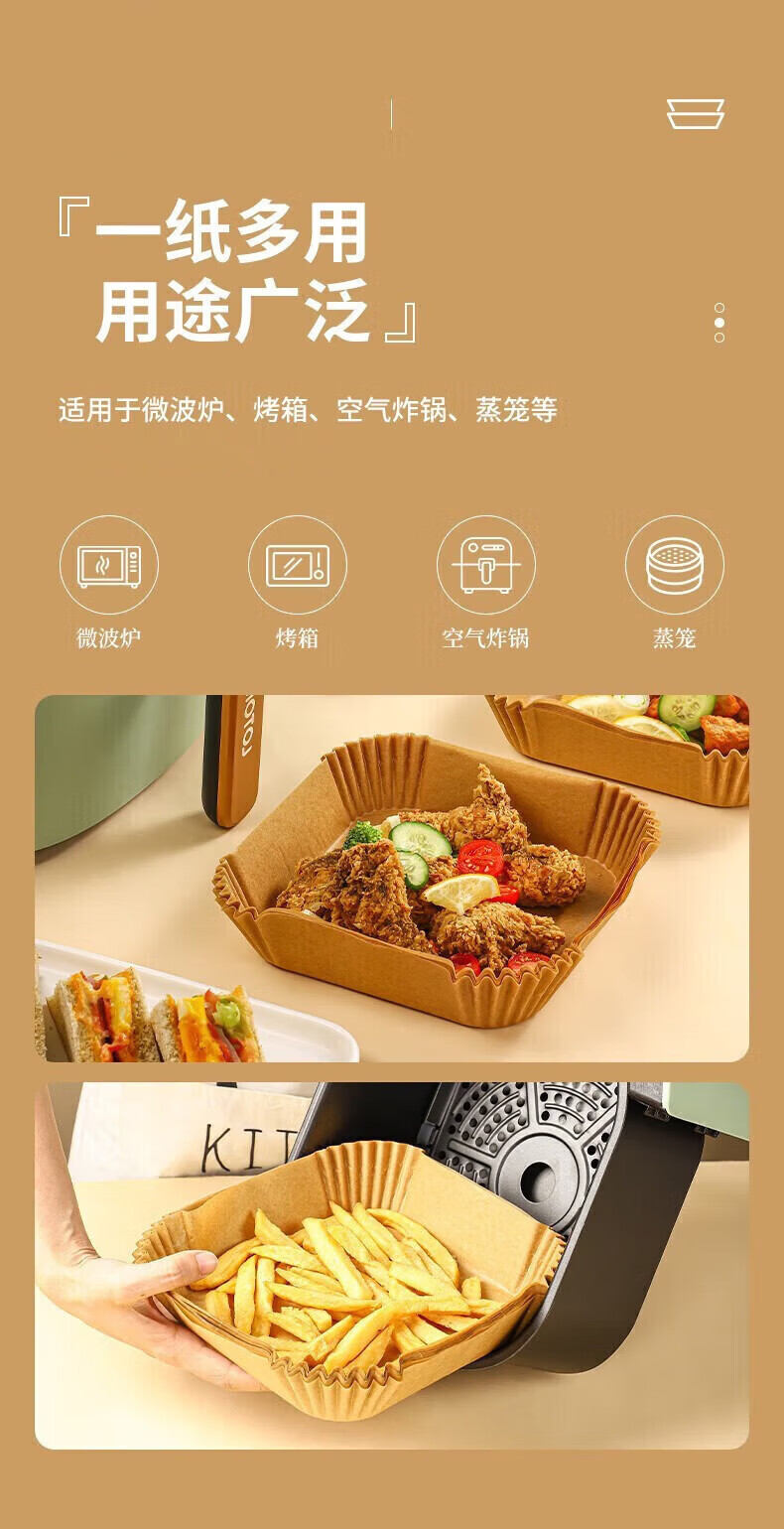 Haodi (HD) air fryer special paper square silicone oil-absorbing paper tin foil tray tin foil baking oven frying pan pad paper aluminum foil natural color thickened and enlarged-heightened edge 50 pieces