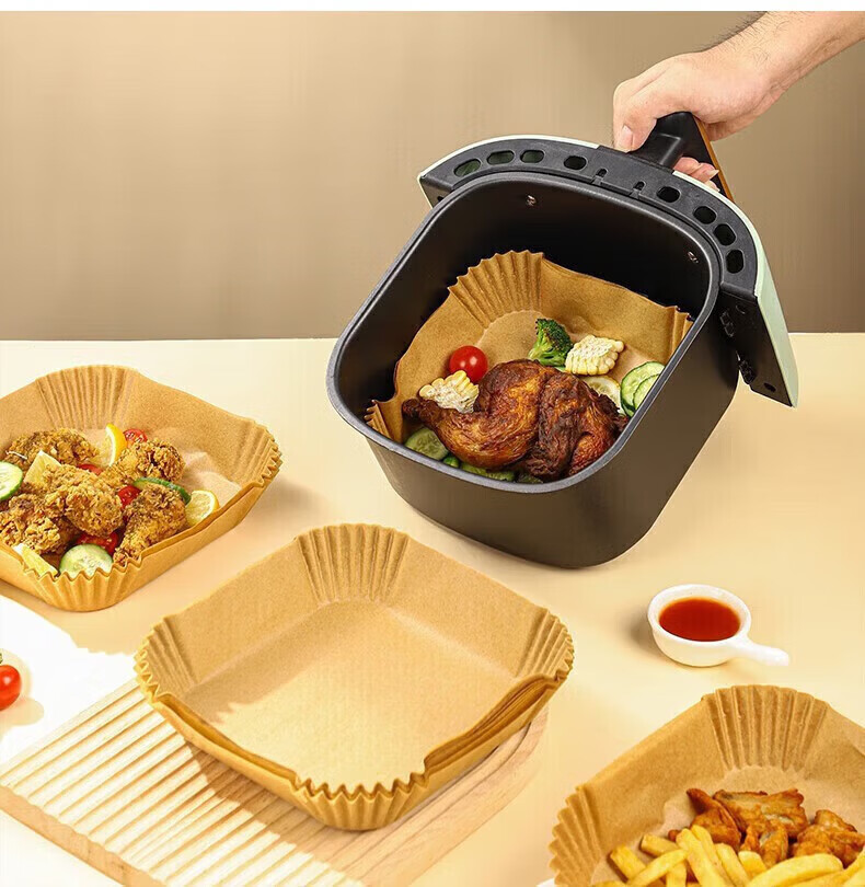 Rice air fryer special paper square silicone oil-absorbing paper tin foil tray tin foil baking oven frying pan pad paper aluminum foil natural color thickened and enlarged-heightened edges 50 pieces