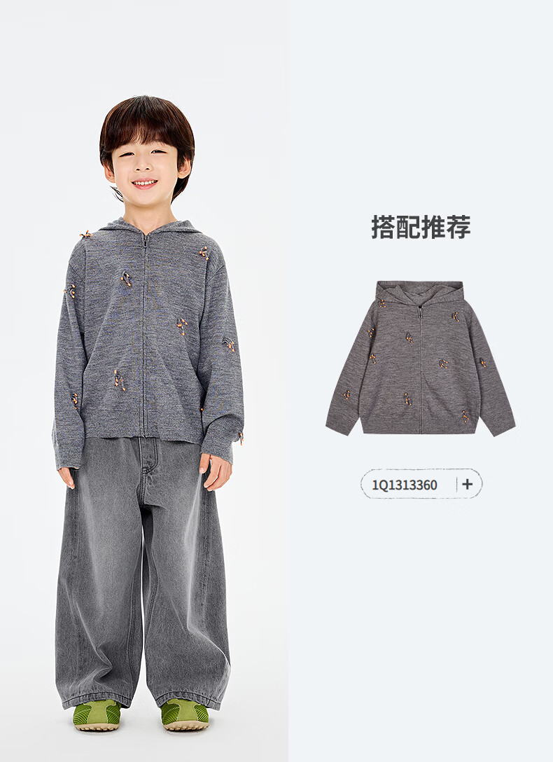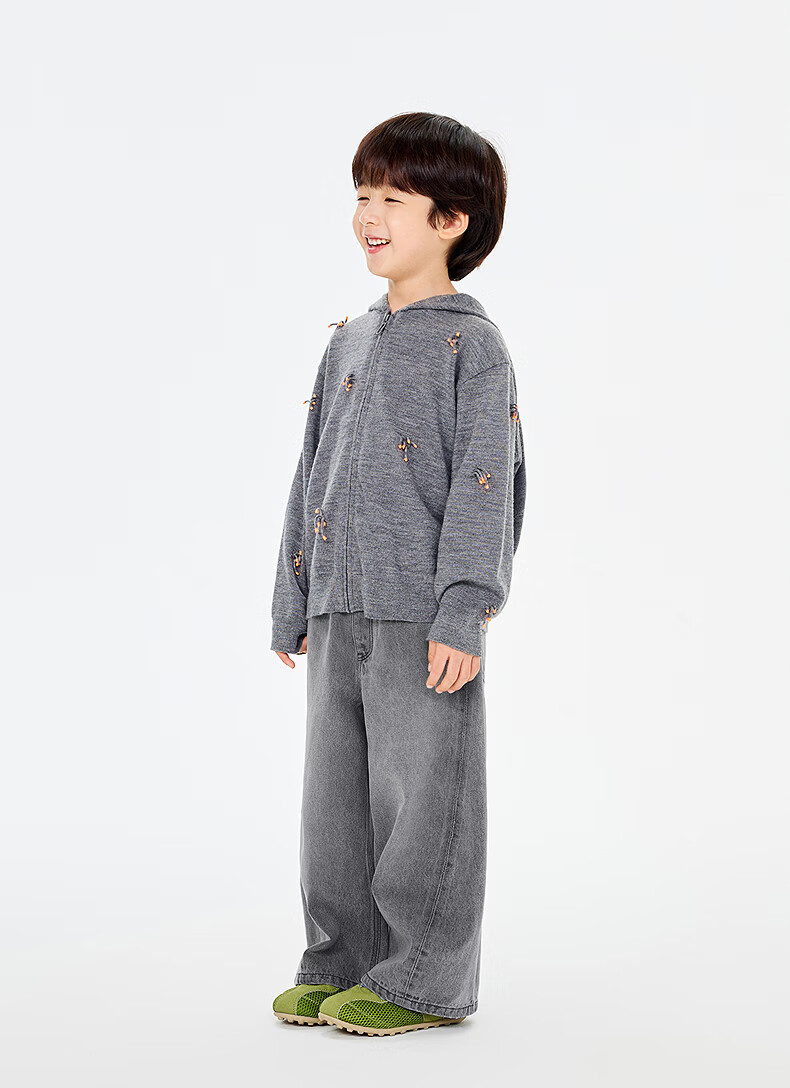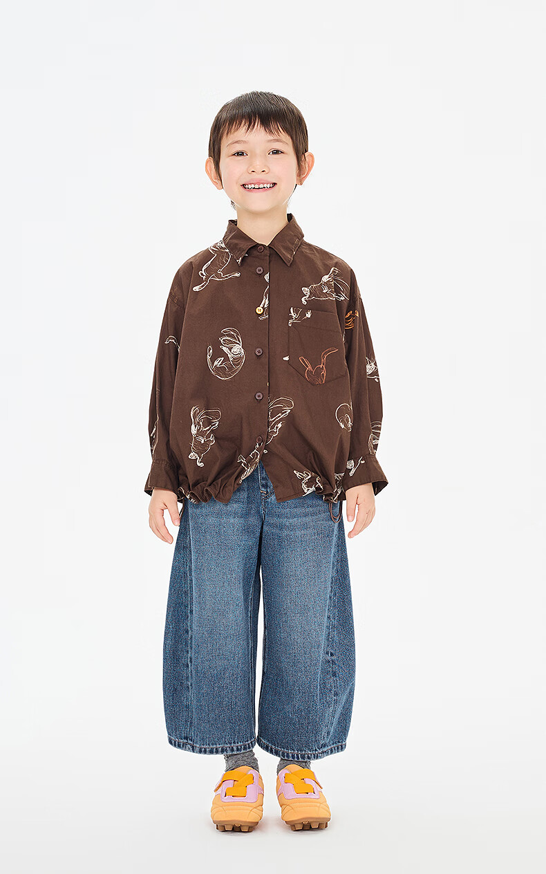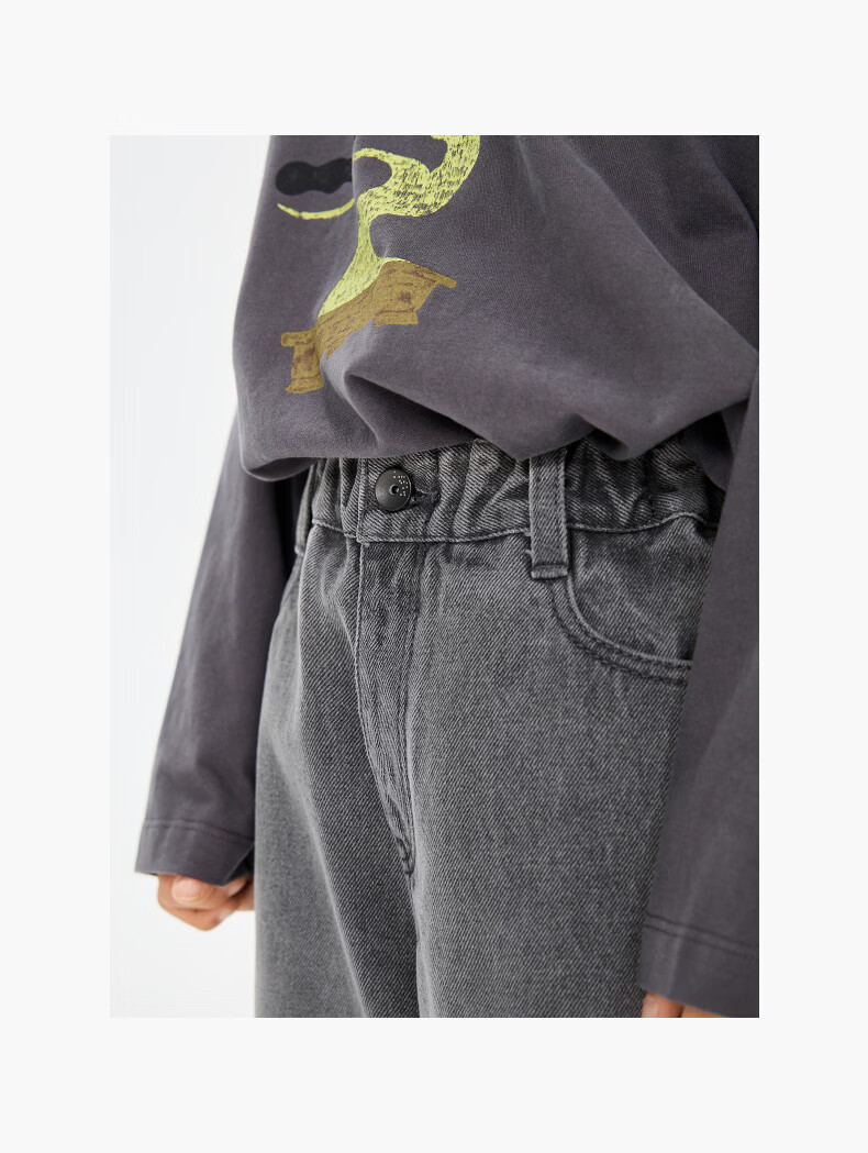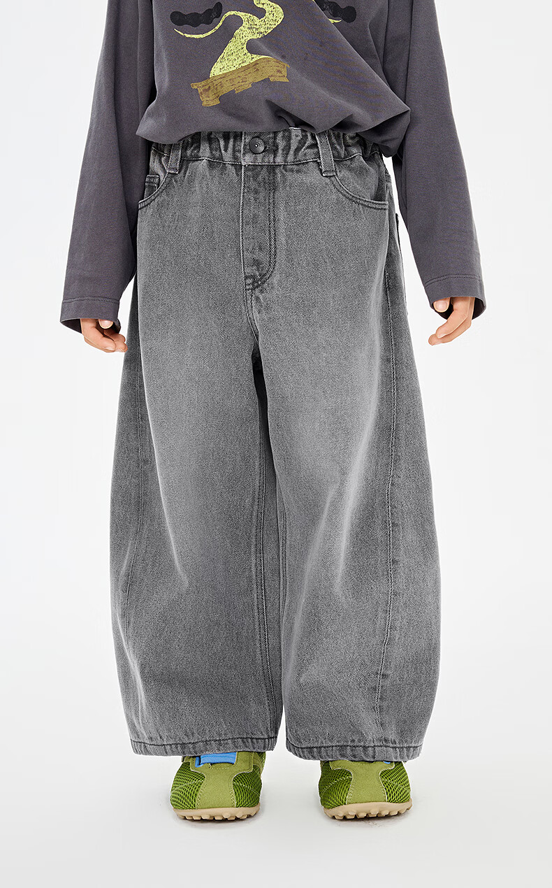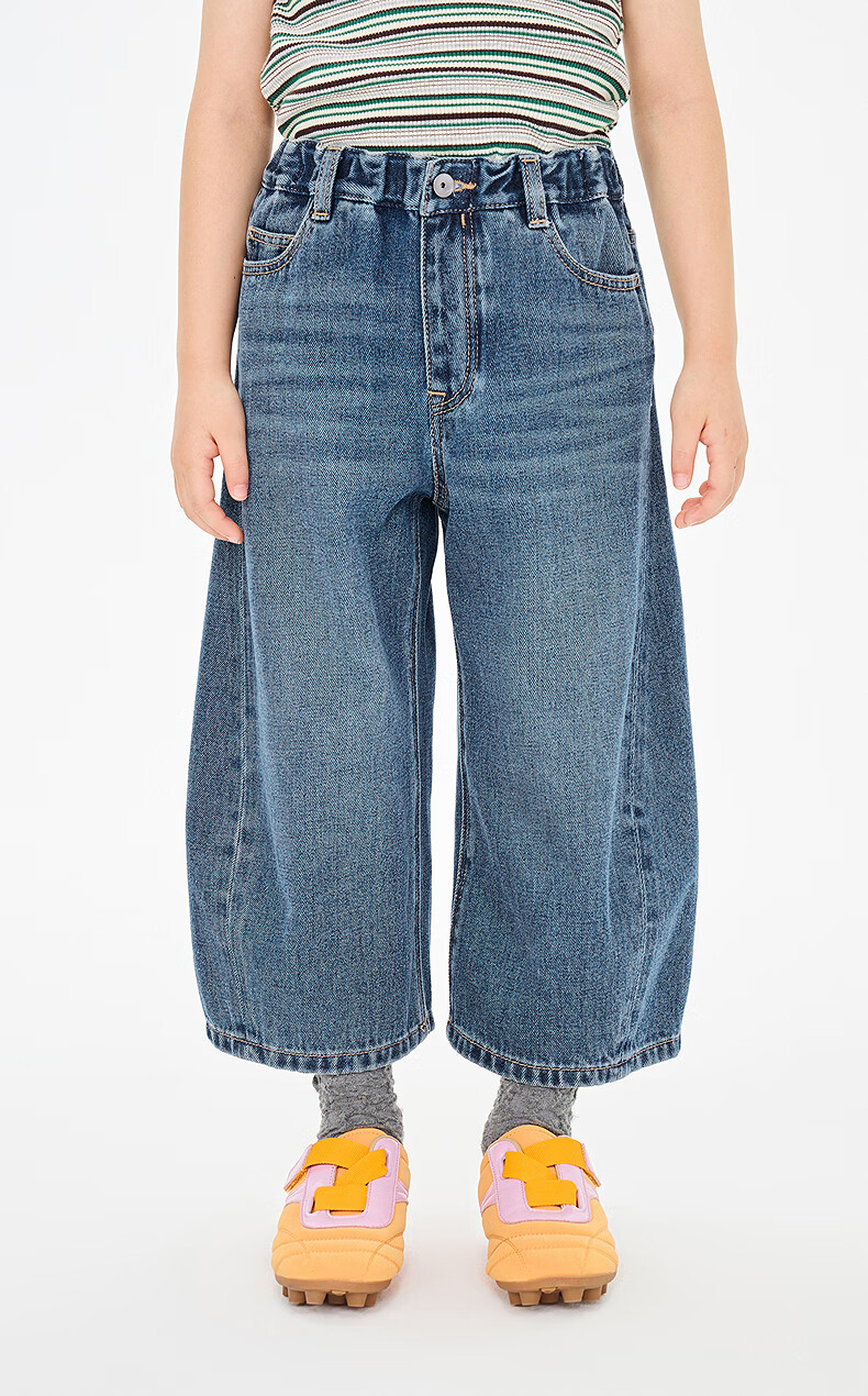 Jnby by JNBY new model Jiangnan Buyi children's clothing denim nine-point pants wide-leg pants loose solid color 26 spring boys and girls 1Q1E11800 958/denim light blue 100 cm