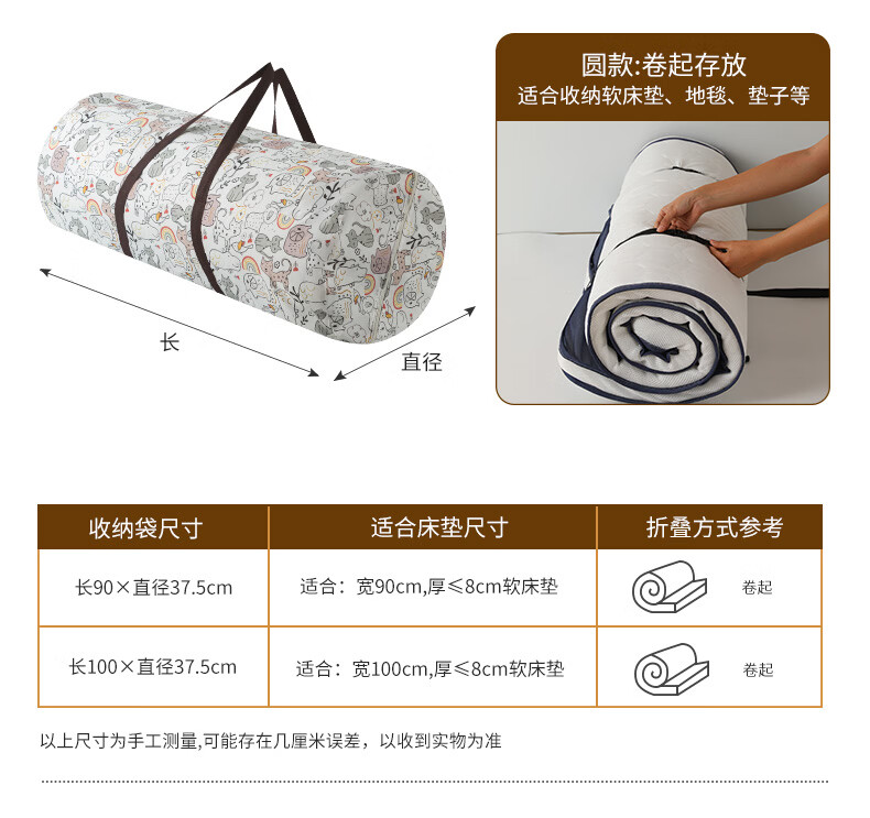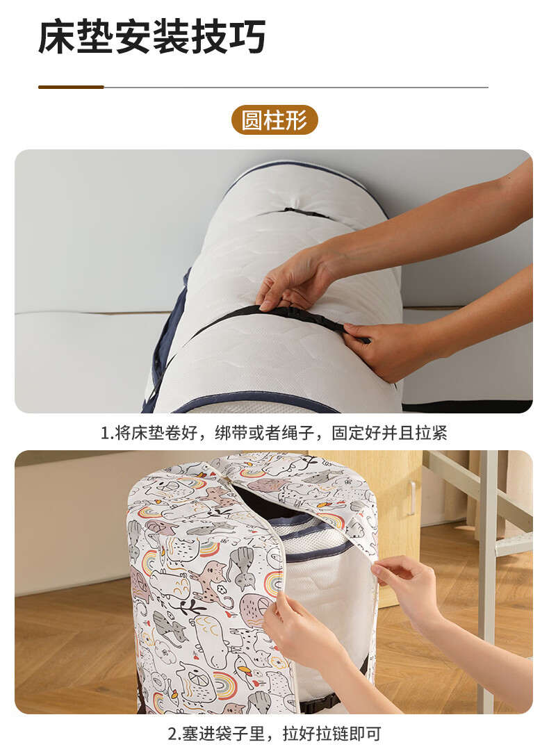 Mattress Storage Bag Bedding Quilt Latex Foldable Student Dormitory Moving Bag Luggage Packing Bag Happy Meow Portable Diameter 38 Long 90cm