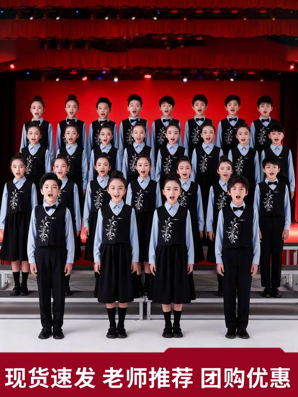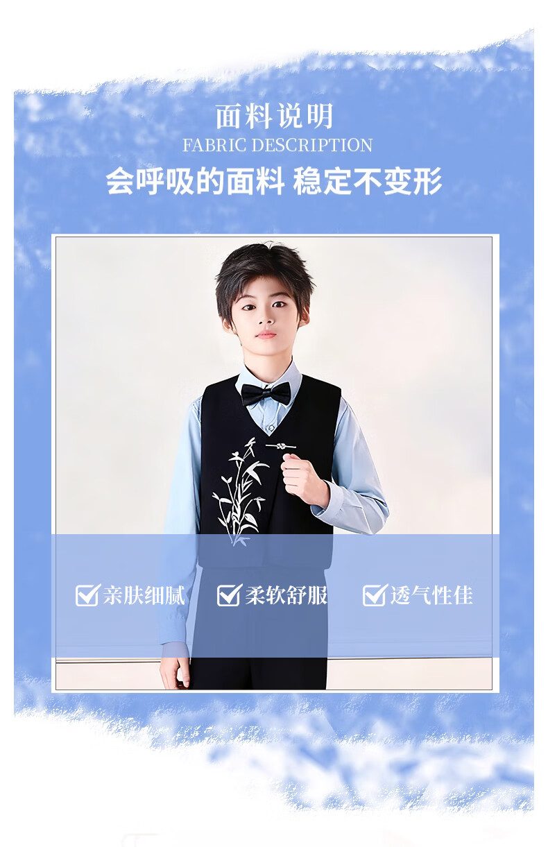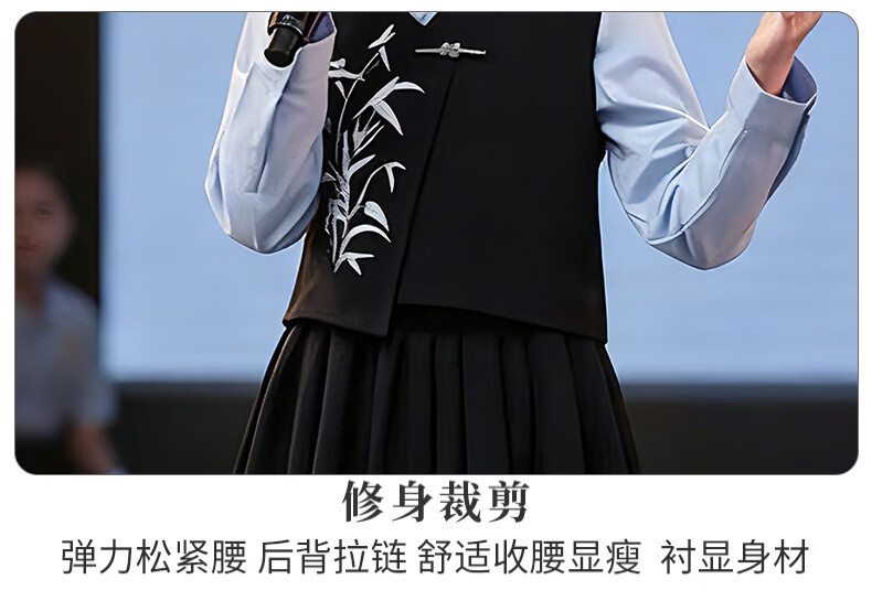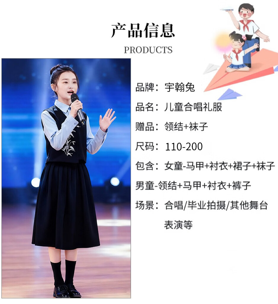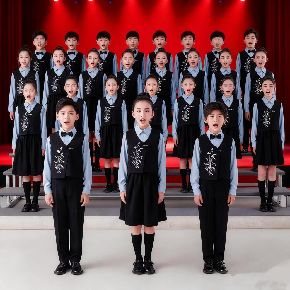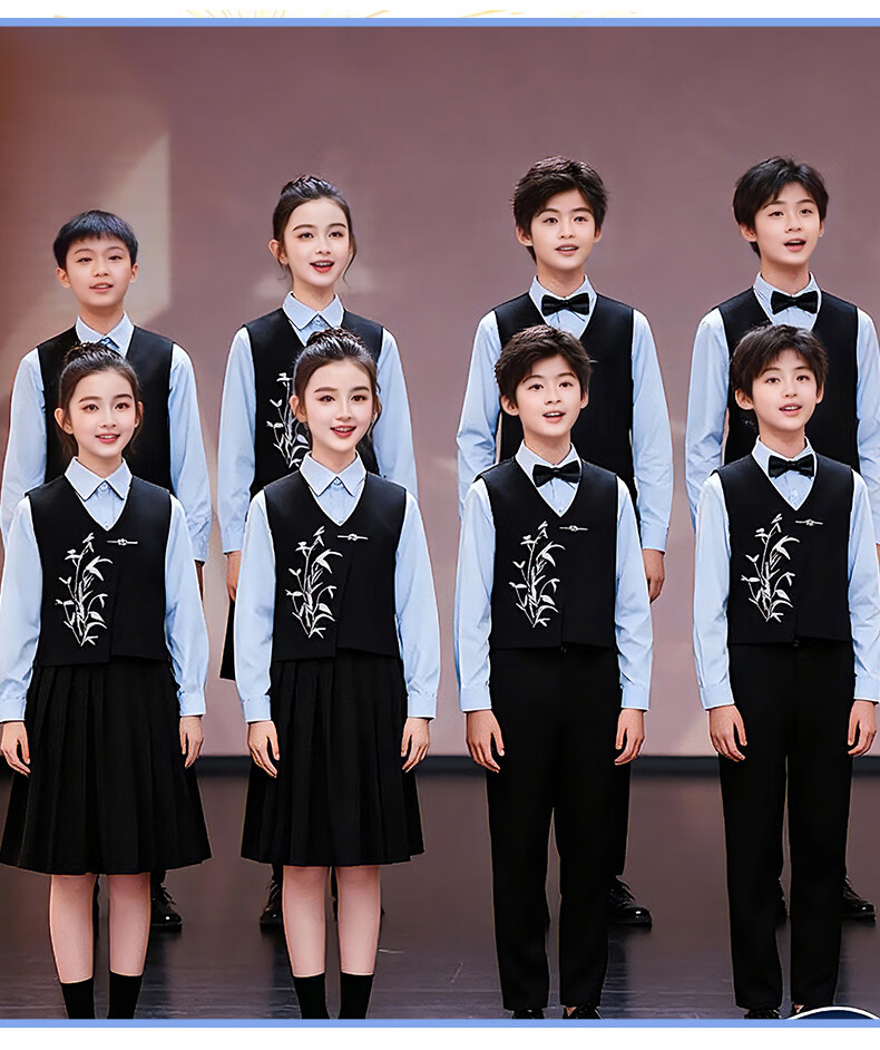 Huanshuai New Year's Day children's chorus performance costumes, primary school students' recitation and speech contest performance costumes, men's and women's Chinese style hosting ceremony, girls, long-sleeved blue shirt + vest + skirt + socks 120 cm