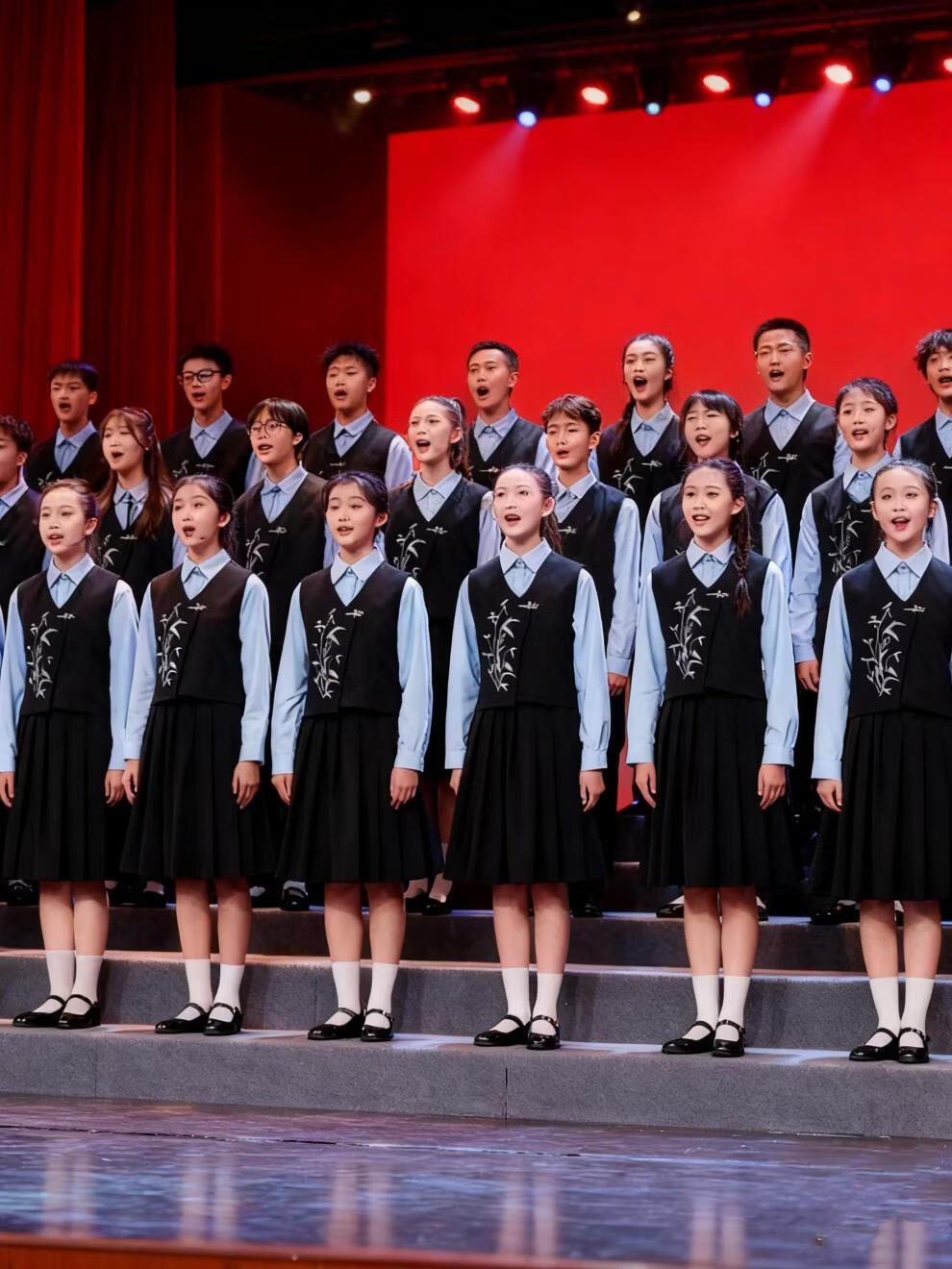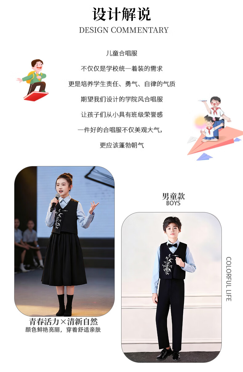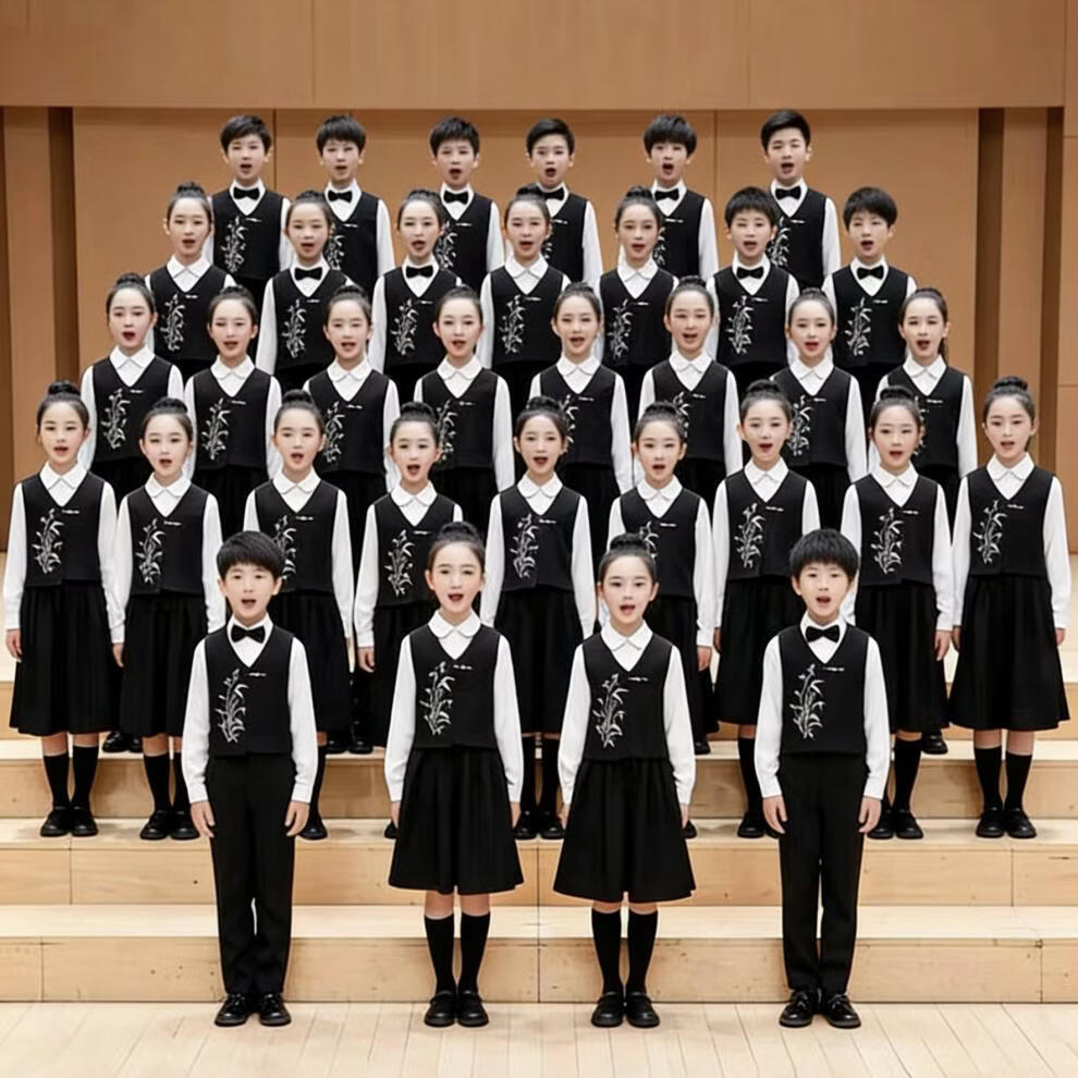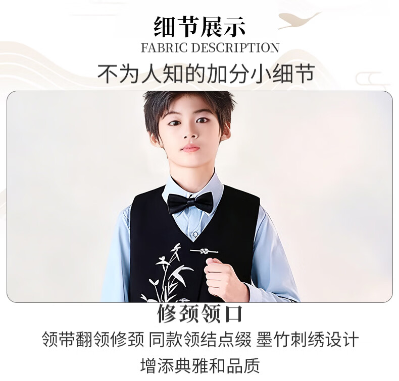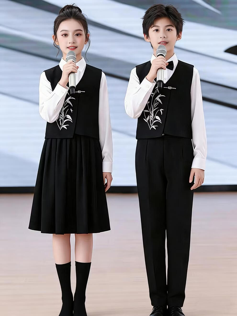 Huanshuai New Year's Day children's chorus performance costumes, primary school students' recitation and speech contest performance costumes, men's and women's Chinese style hosting ceremony, girls, long-sleeved blue shirt + vest + skirt + socks 120 cm