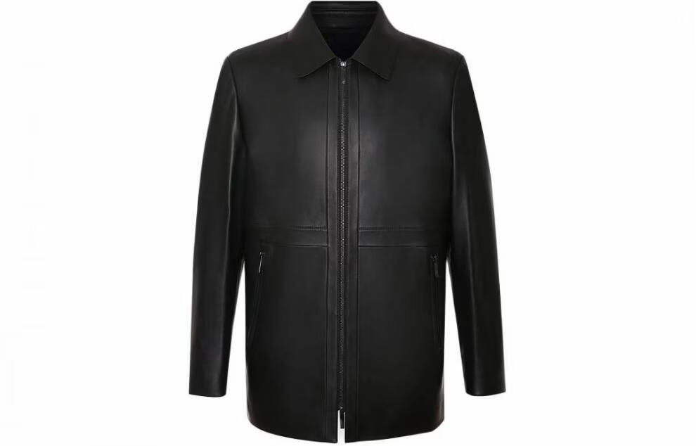 SATCHI solid color lapel zipper slim leather jacket men's black black one size 48