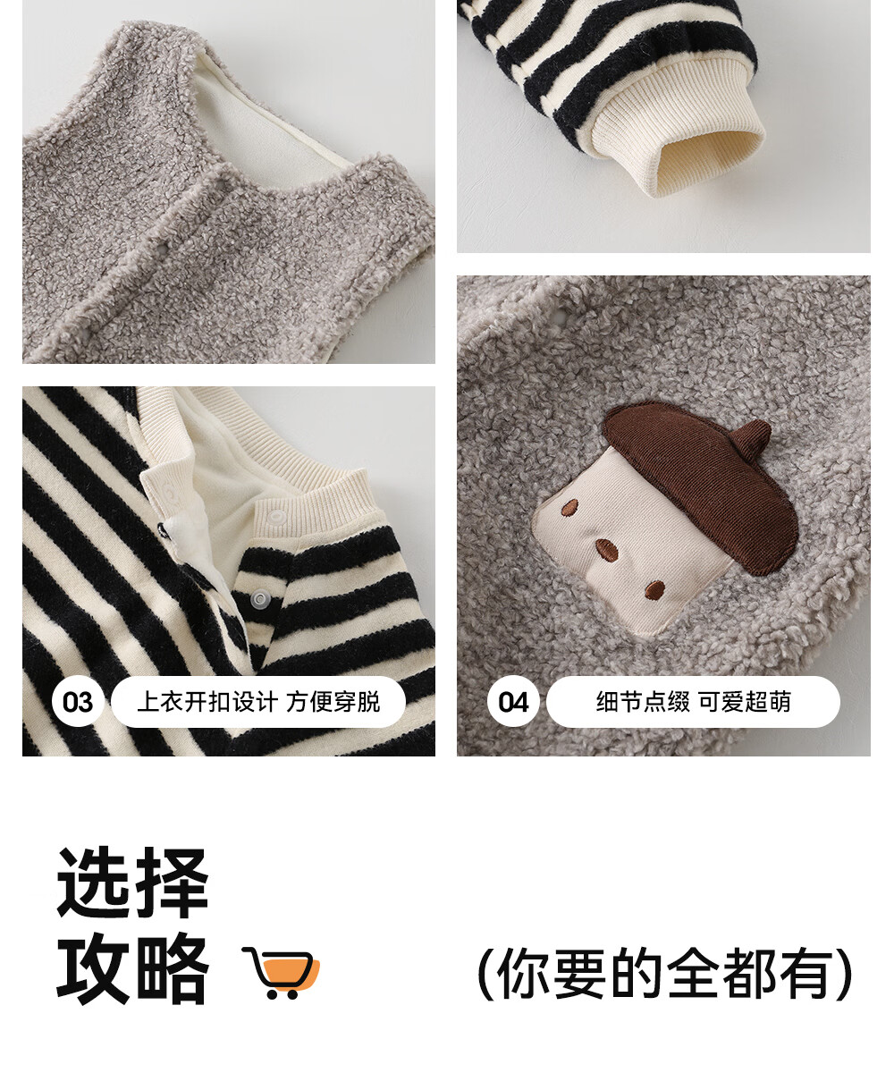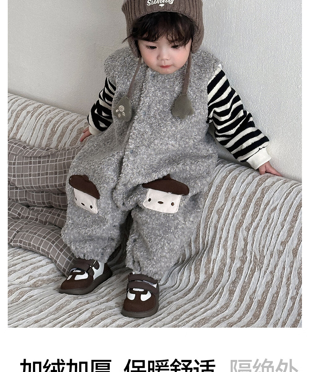 Betis baby jumpsuit suit winter newborn thickened warm overalls small month-old crawling clothes baby clothes gray 73cm