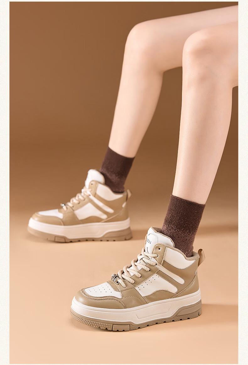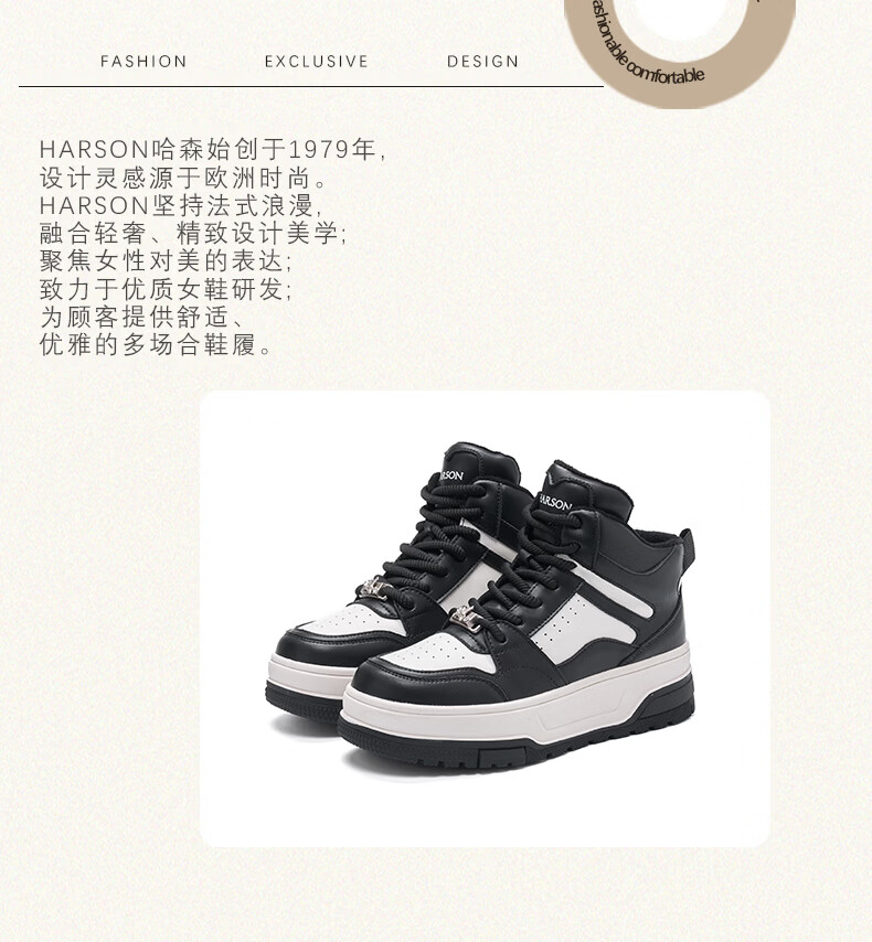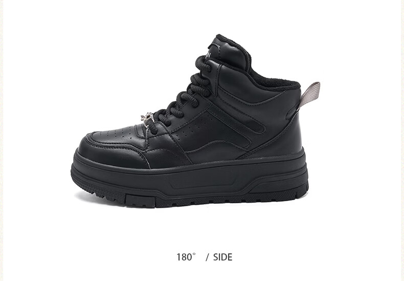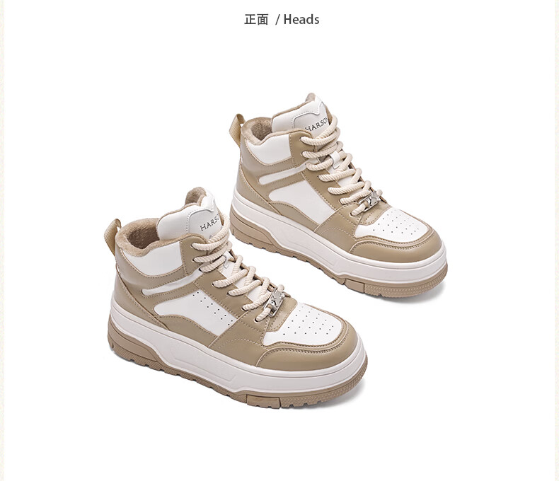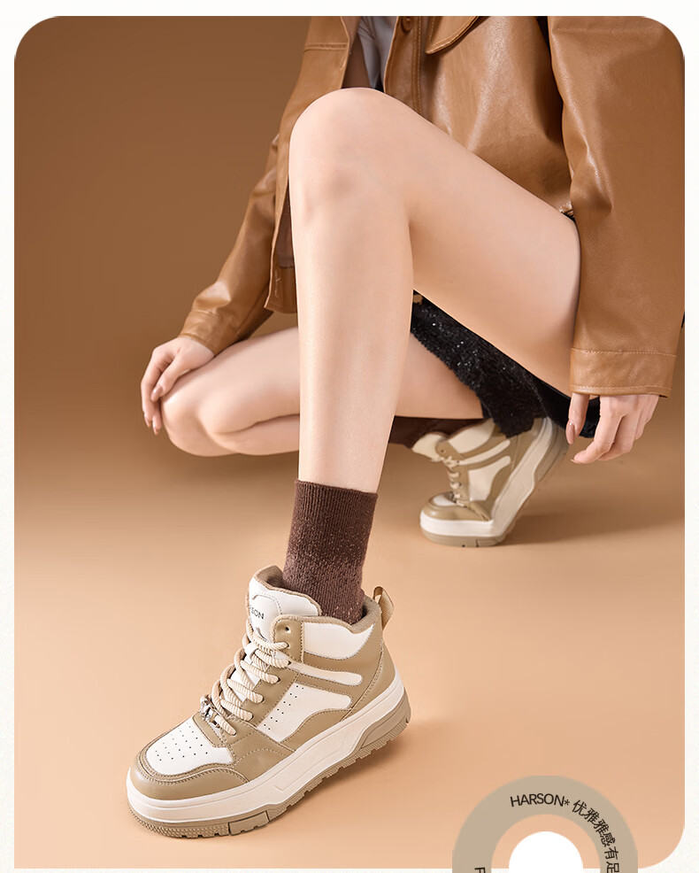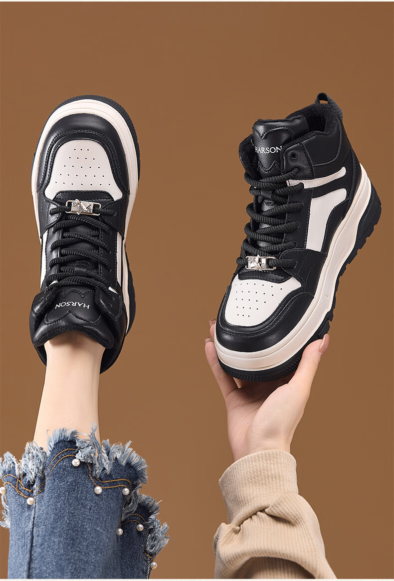 Harson thick-soled plus velvet high-top sports casual shoes for women 2025 autumn and winter warm and versatile white shoes sneakers official authentic black plus velvet 35