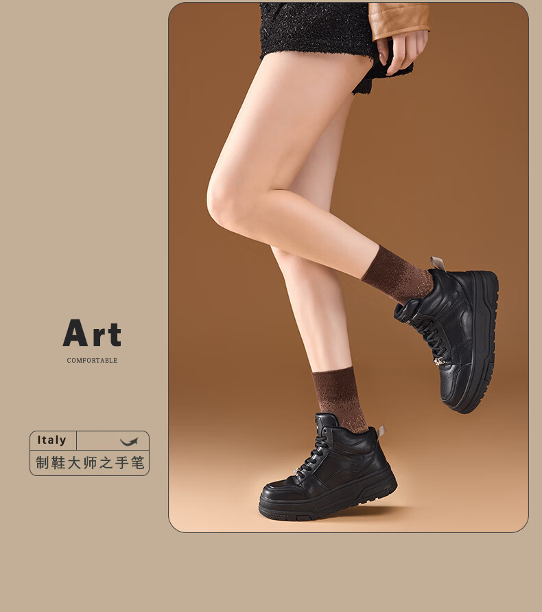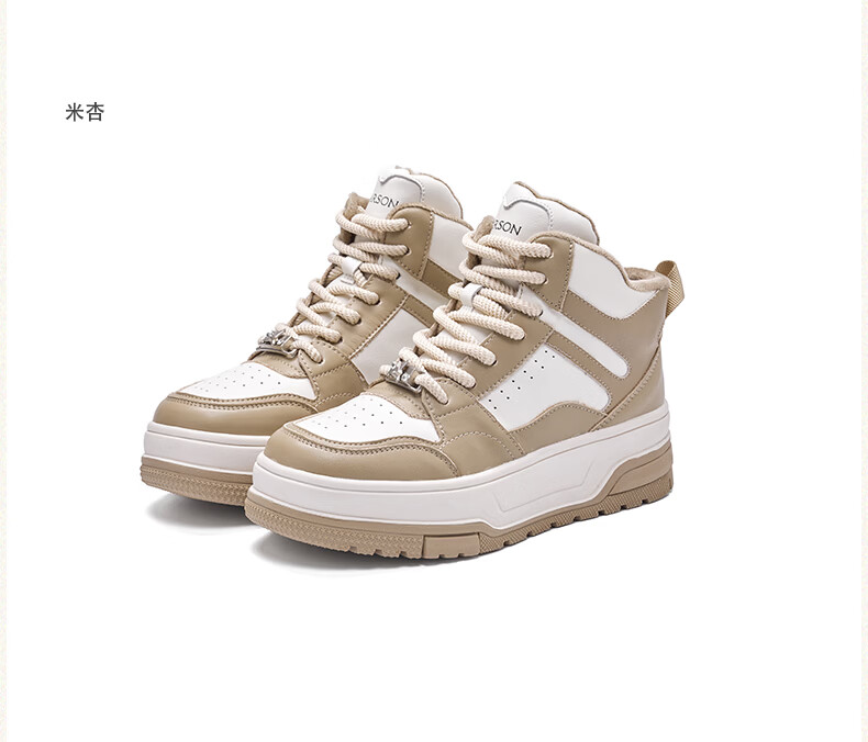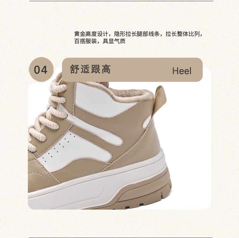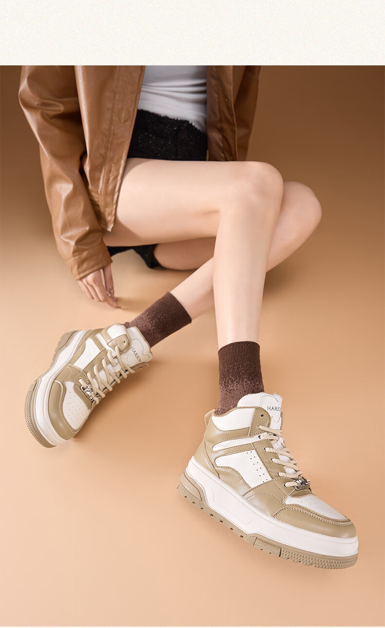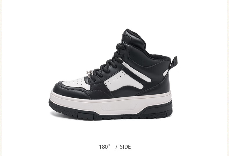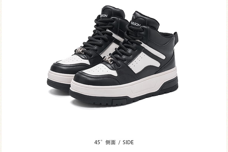 Harson thick-soled plus velvet high-top sports casual shoes for women 2025 autumn and winter warm and versatile white shoes sneakers official authentic black plus velvet 35