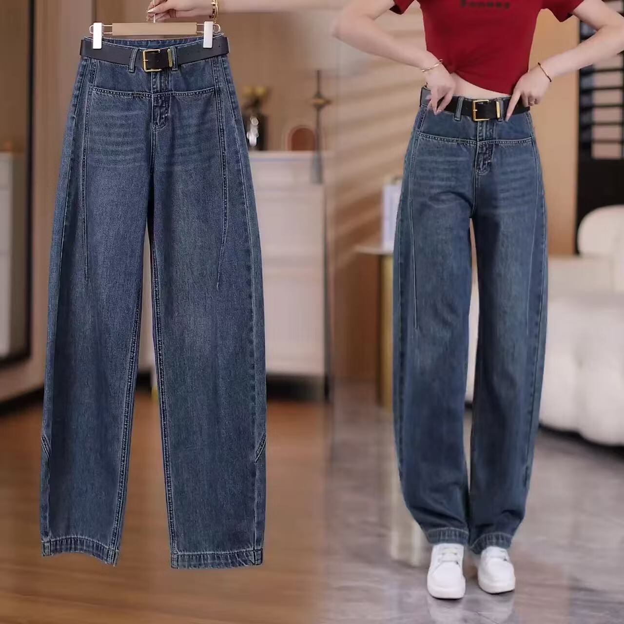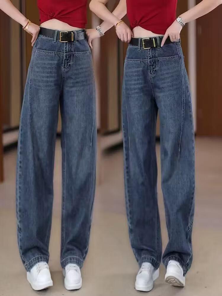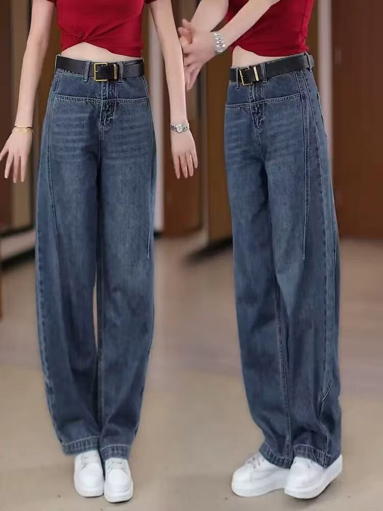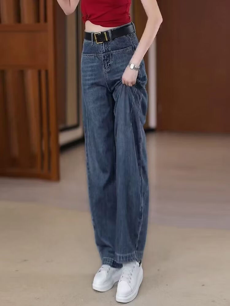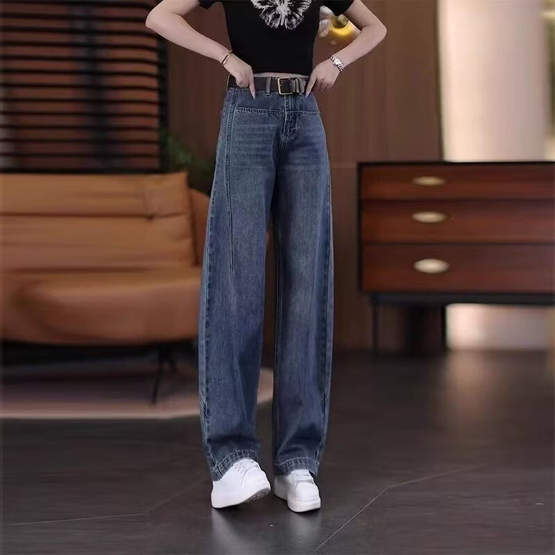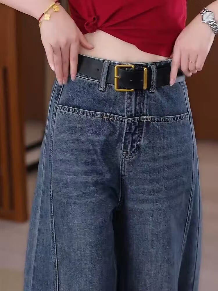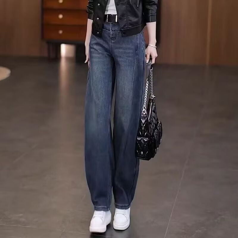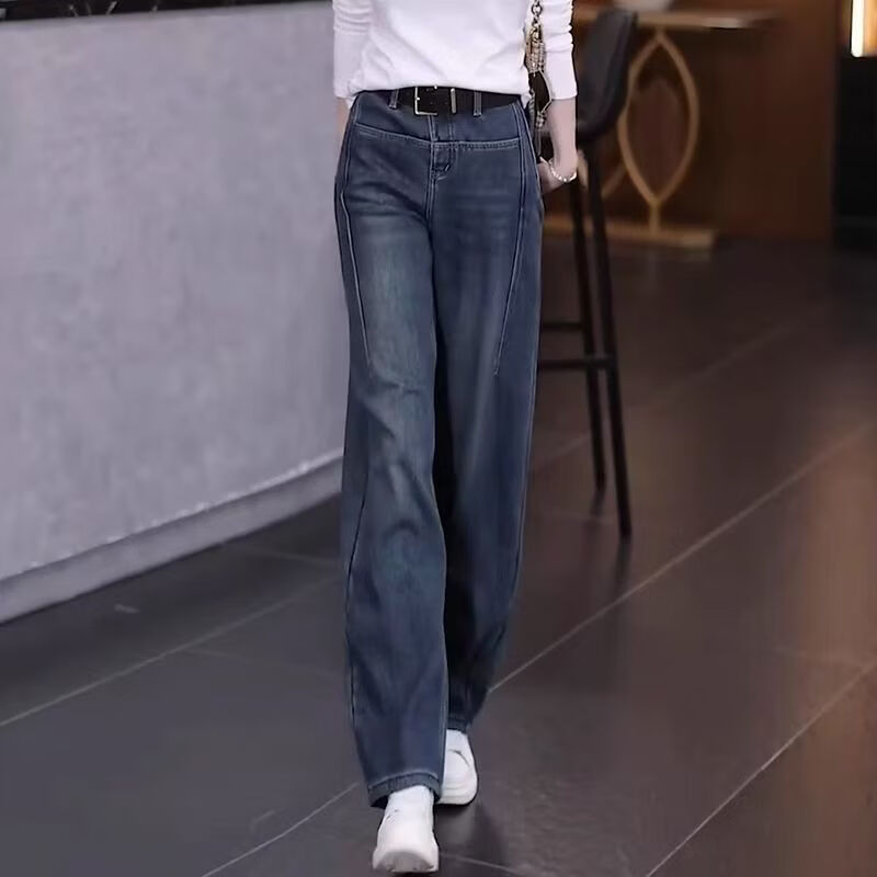 Popular Scimitar Jeans for Women 2025 Autumn New High Waist Slim Front Pocket Versatile Drape Narrow Wide Leg Pants Retro Blue Velvet Jeans M Recommendation 96-105Jin Jin is equal to 0.5 kg