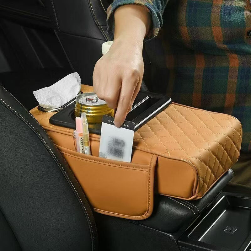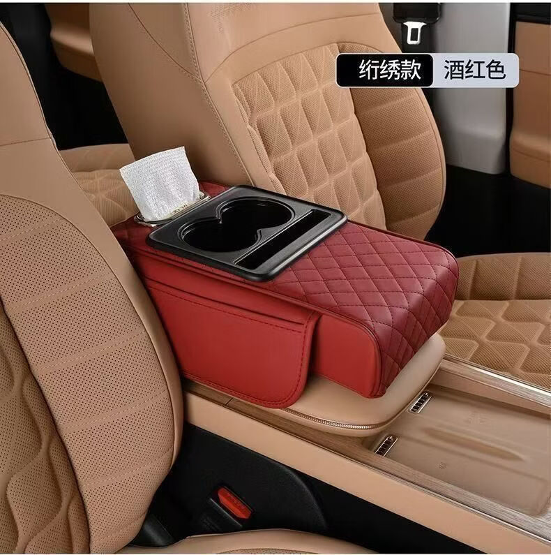 Four-in-one armrest box booster pad, multi-functional car tissue box, elbow rest pad, car organizer, auto repair and maintenance tools, classic black