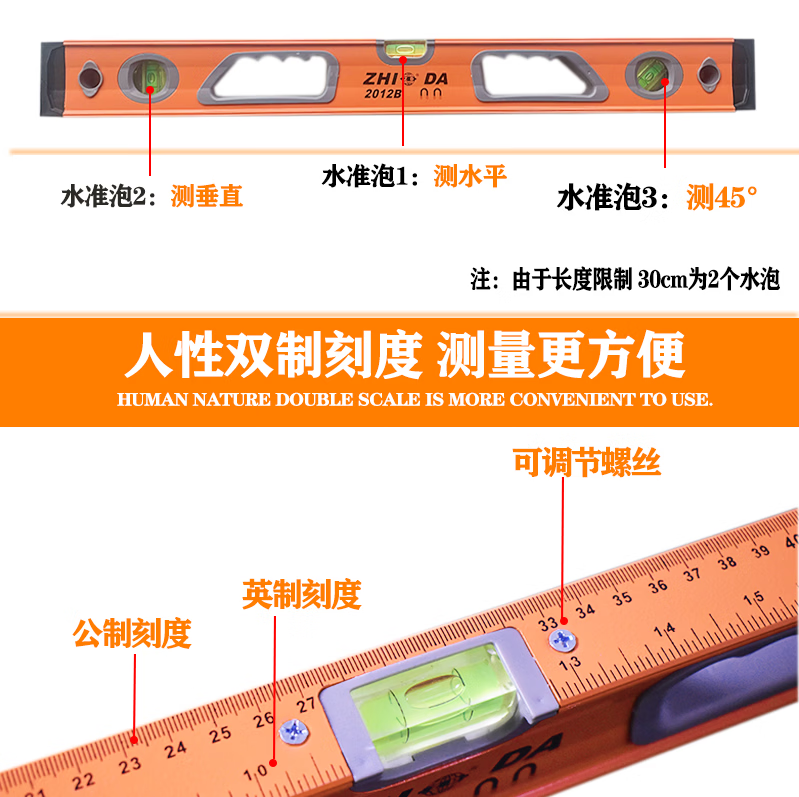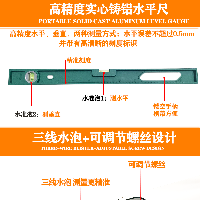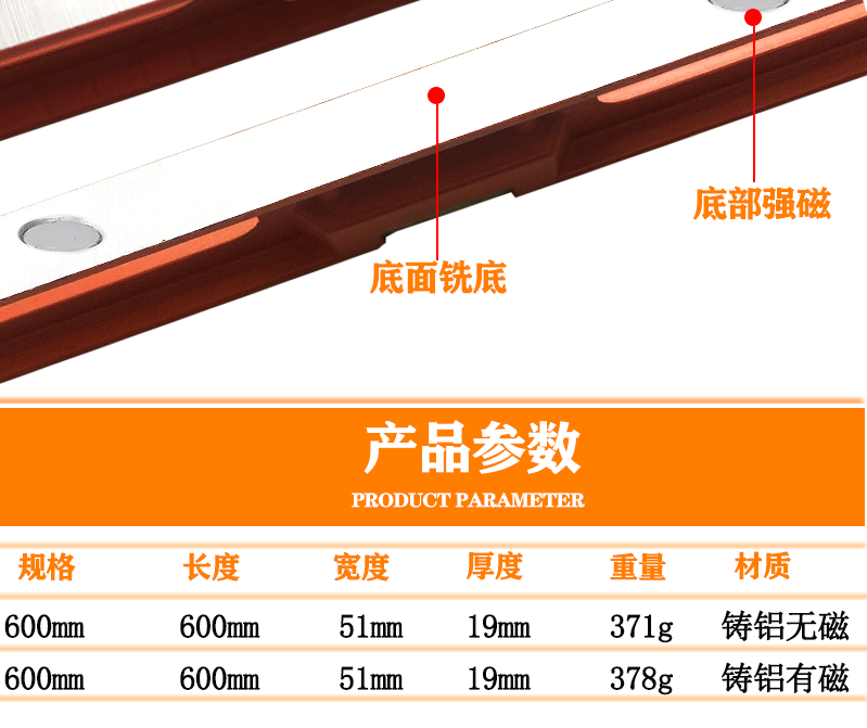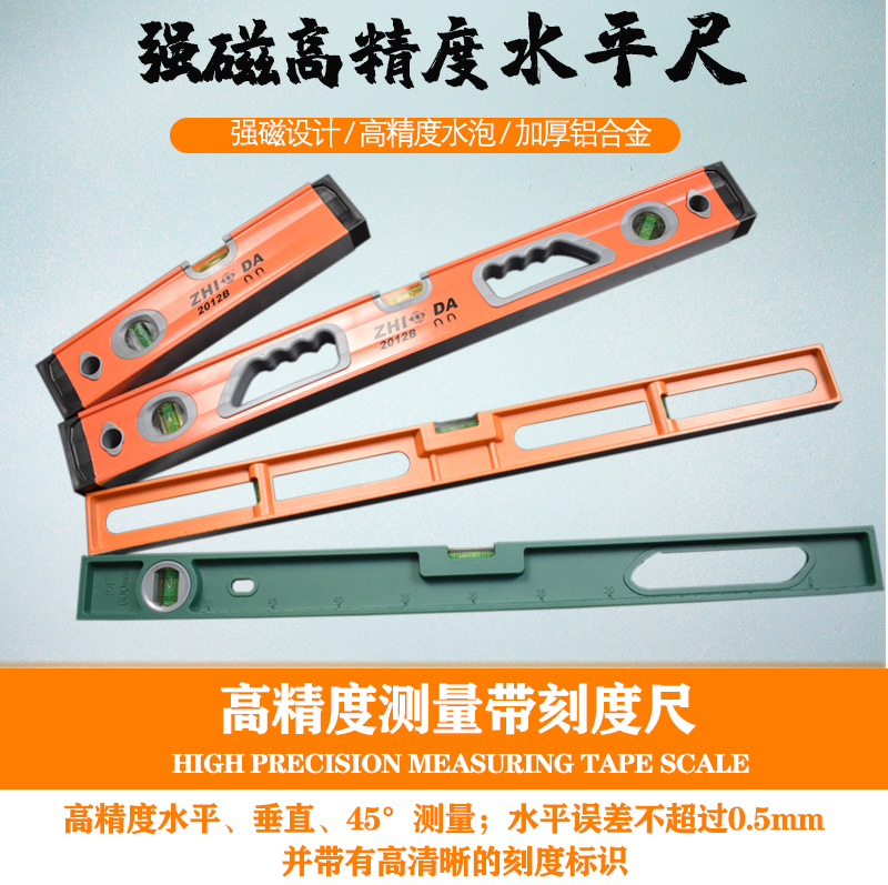An Junsheng level high-precision aluminum alloy strong magnetic leveling level multi-functional level solid anti-fall mini level Pubai level 600mm (magnetic)