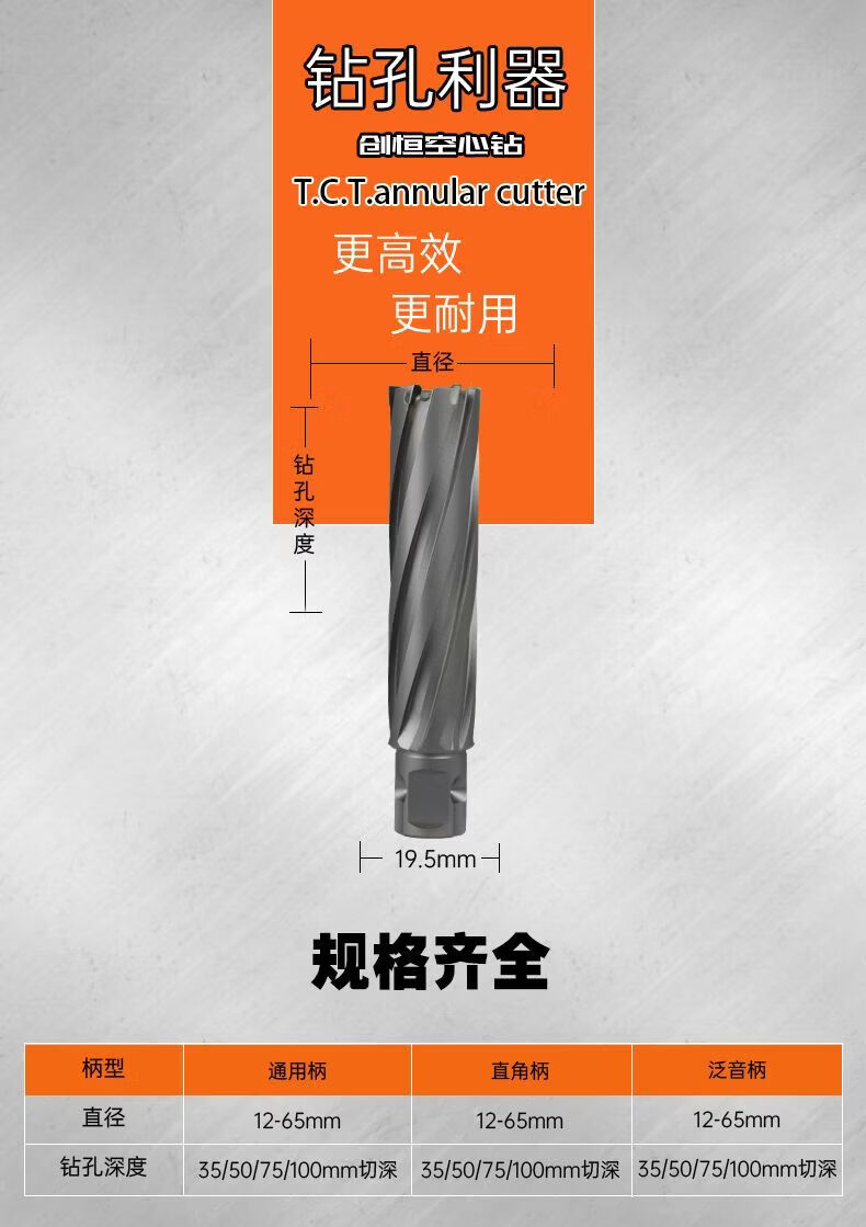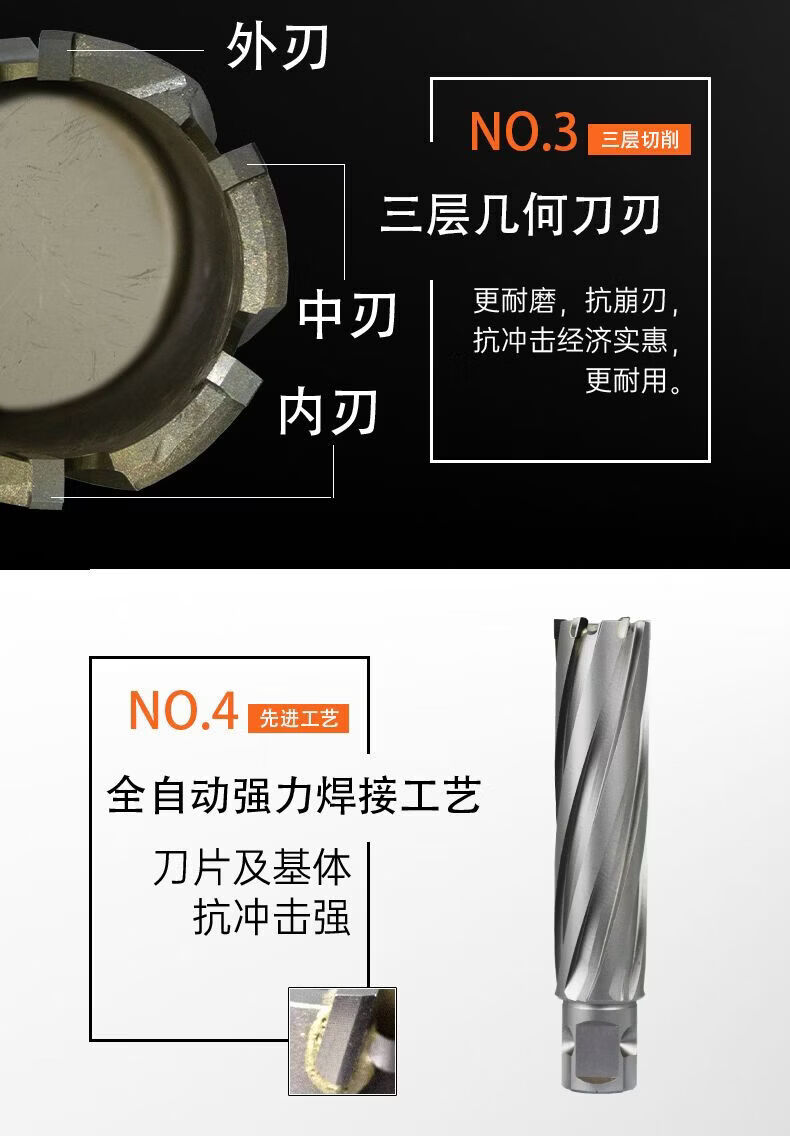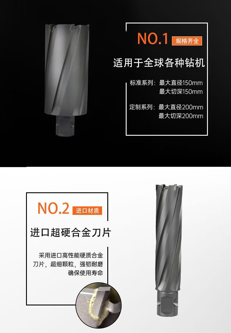 Ye Yu hollow drill bit magnetic drill bit extended cutting depth steel plate core drilling steel structure steel beam drilling stainless steel drill bit 60*75