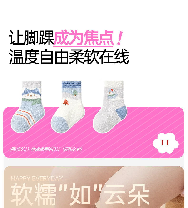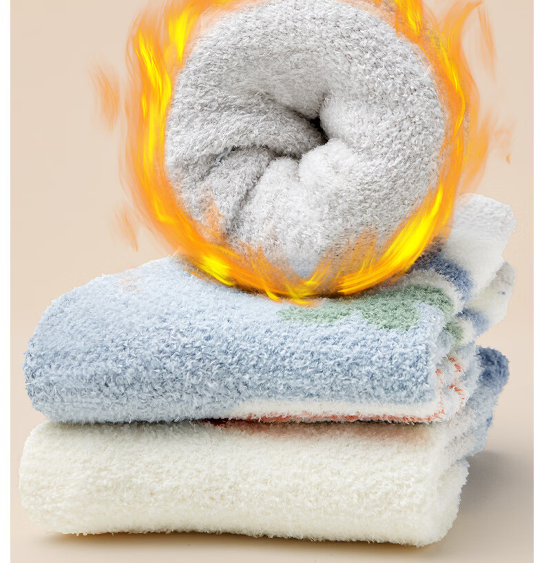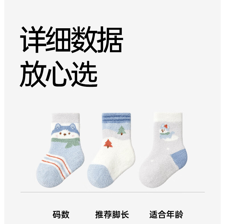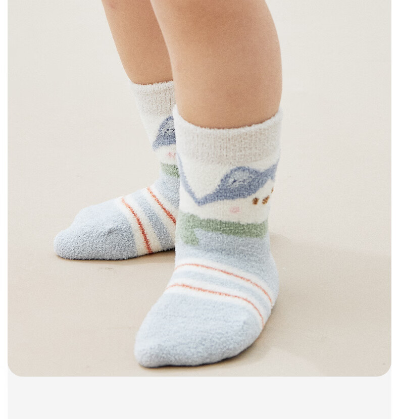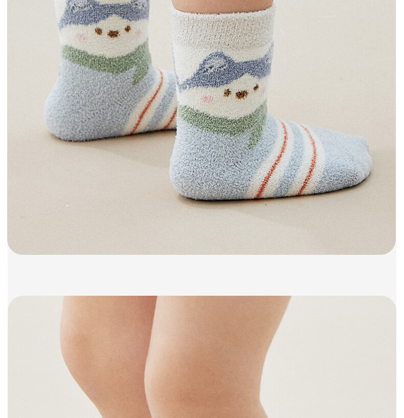 Cotton baby socks for autumn and winter, plus velvet and warm terry socks for girls, thickened cartoon plush cotton socks for boys and girls, 3 pairs B5009-boy style-3 pairs, warm double-sided velvet, 0-6 months - recommended foot length 7-9cm