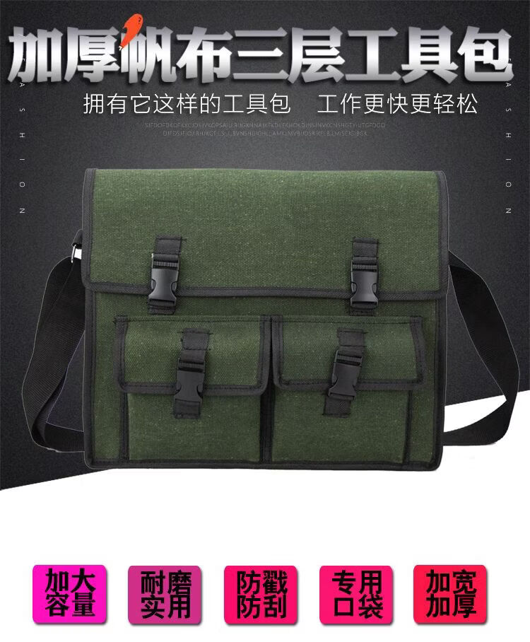 An Junsheng's new tool bag canvas wear-resistant thickened electrician's bag repair vehicle carpentry special construction site large capacity canvas bag thickened three-layer space five-hole small 35*30*16
