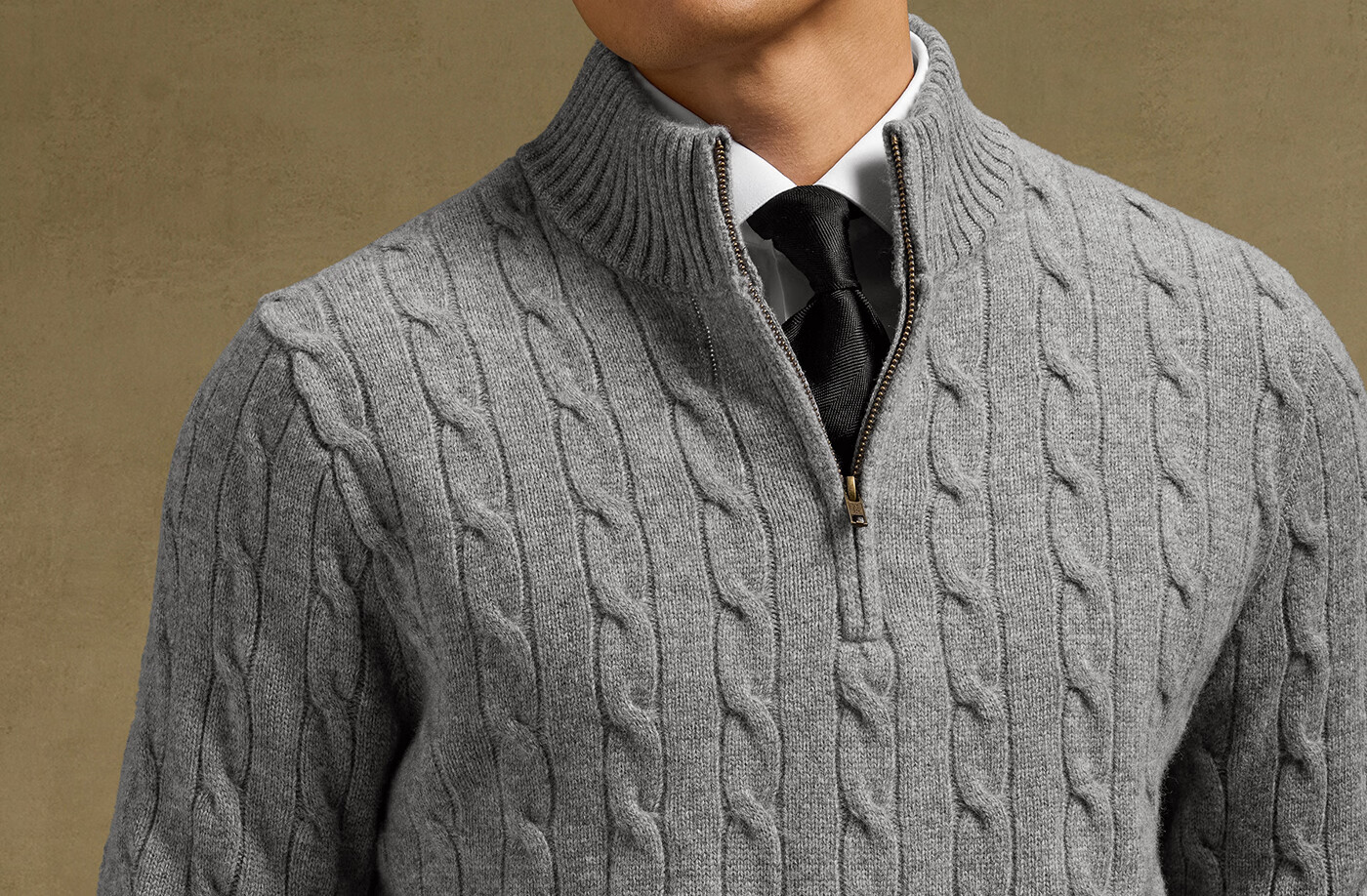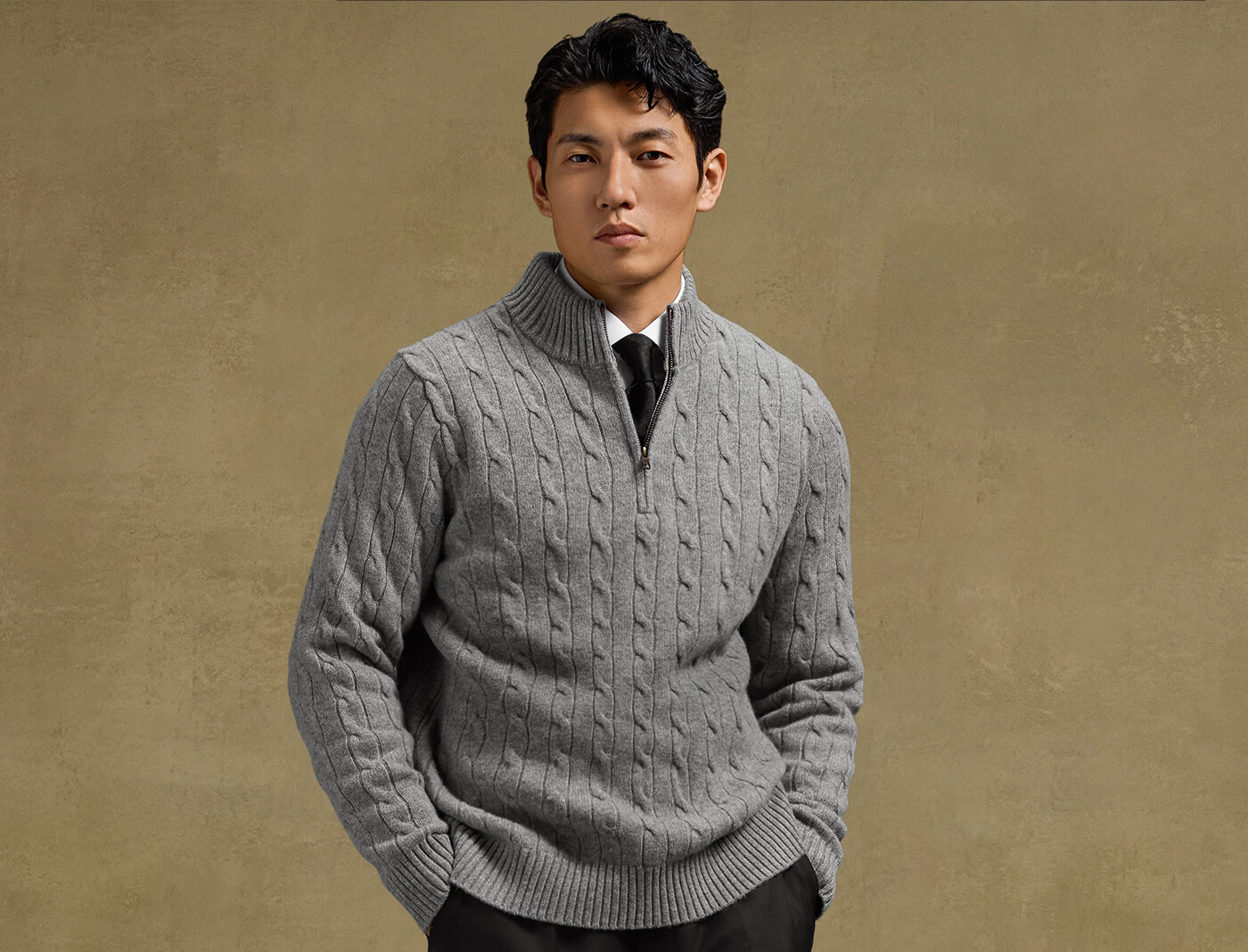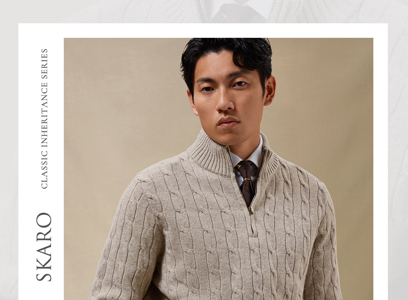 SKARO Australian pure wool old money style half turtleneck sweater for men autumn and winter retro long-sleeved sweater gray SKA932 L