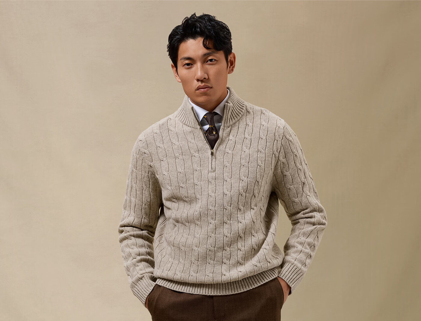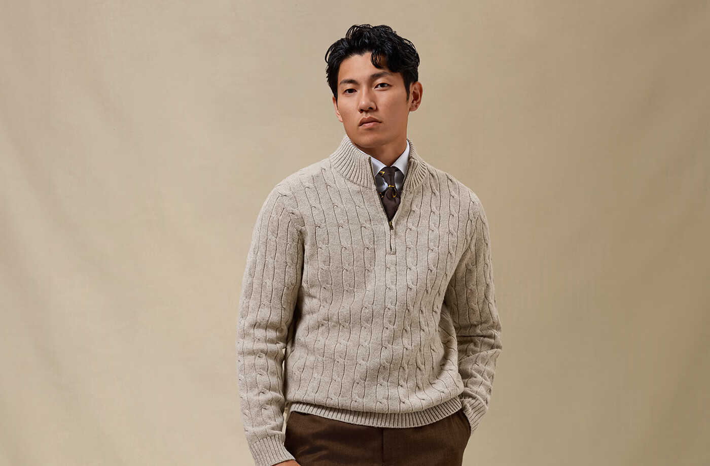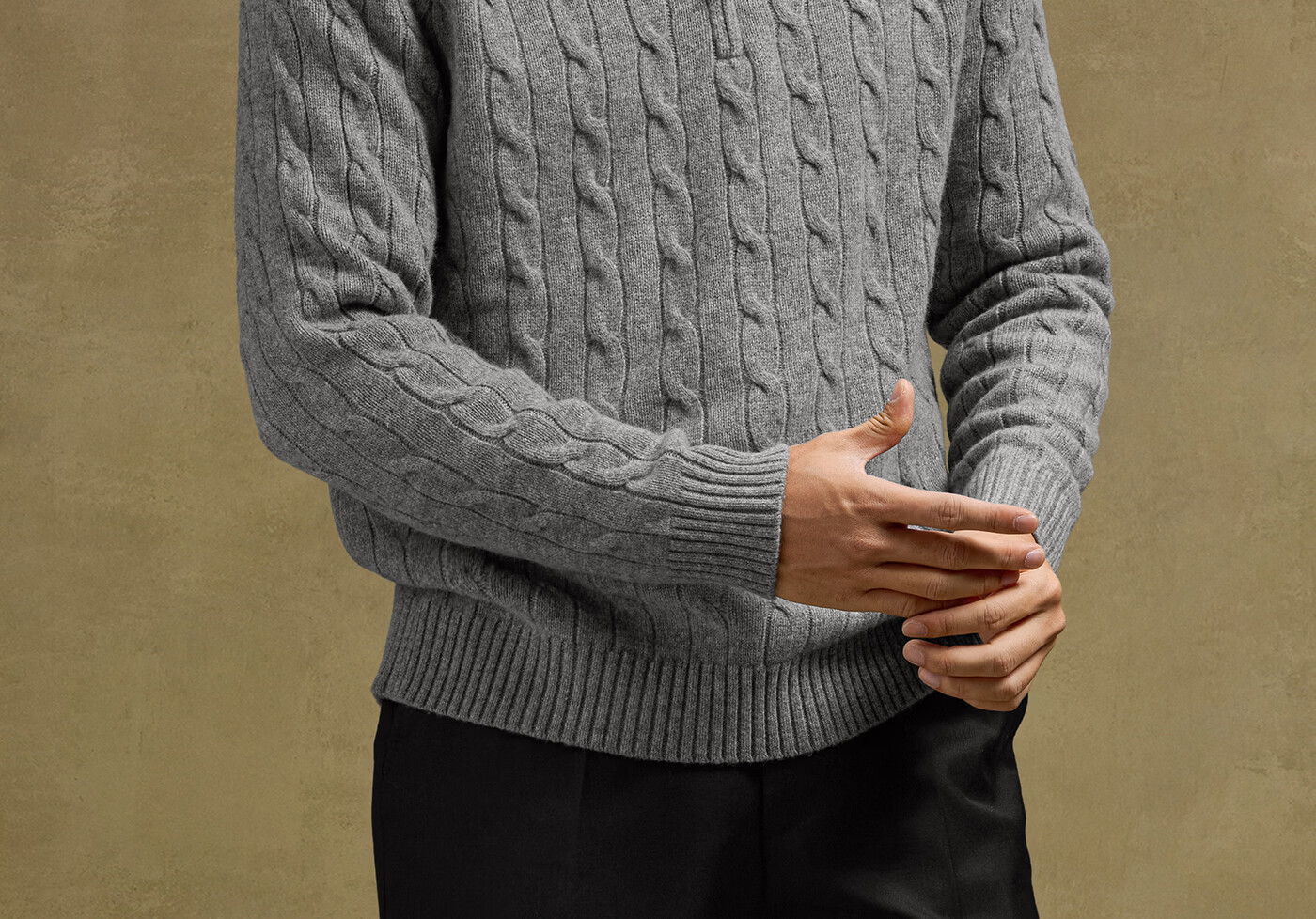 SKARO Australian pure wool old money style half turtleneck sweater for men autumn and winter retro long-sleeved sweater gray SKA932 L
