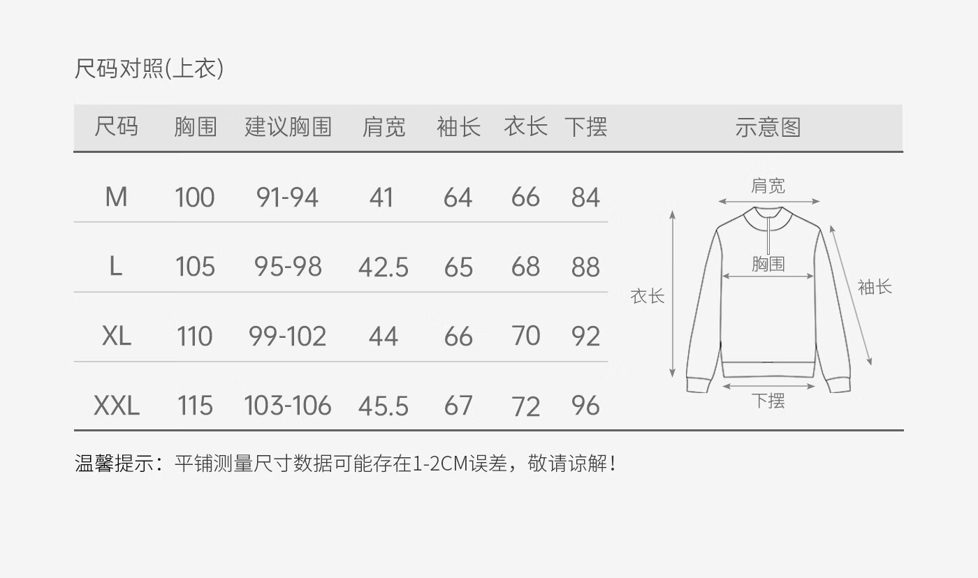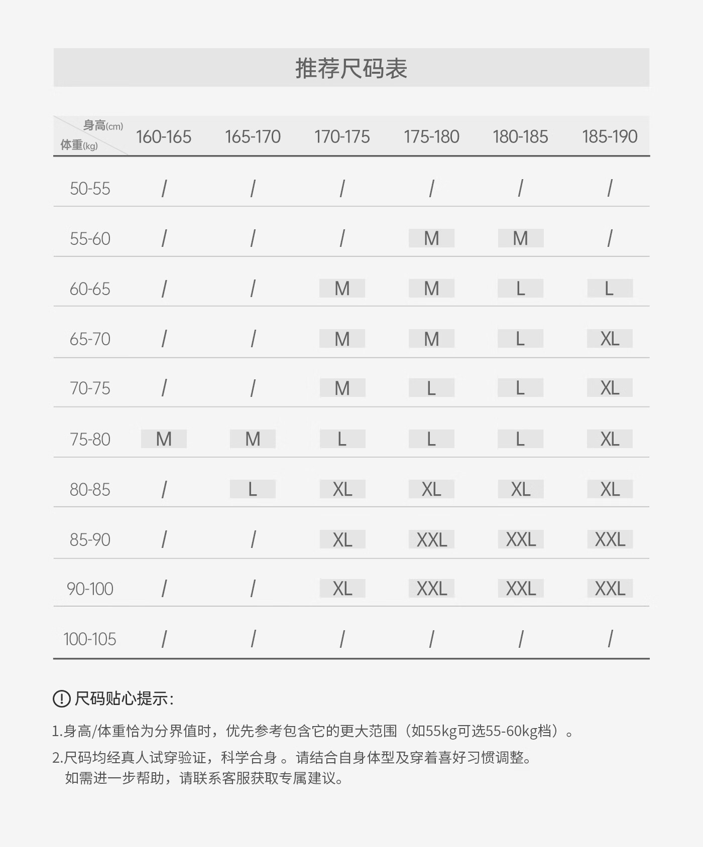 China (cm) 160-165/84-86 165-170 / 88-90 167-172 / 92-96 168-173 / 98-102 170-176 / 106-110