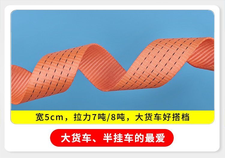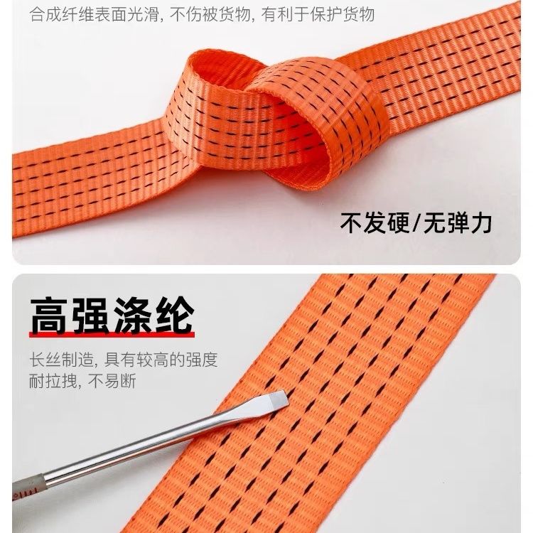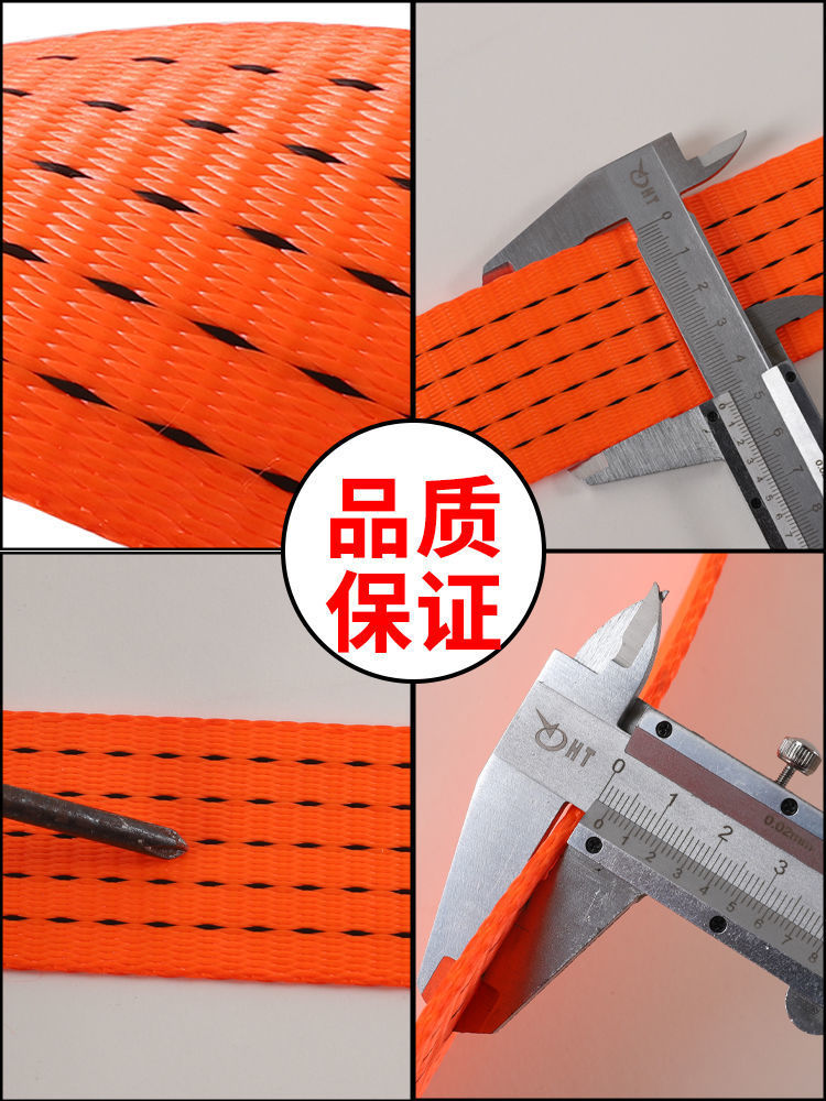 Work horse cart rope off-road special truck cargo heavy-duty brake binding strap flat belt car sealing thickened wear-resistant polyester fiber orange 5cm-1.5mm 100 meters 70 grams per meter