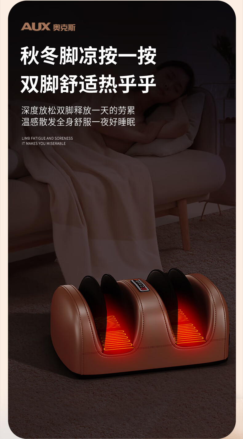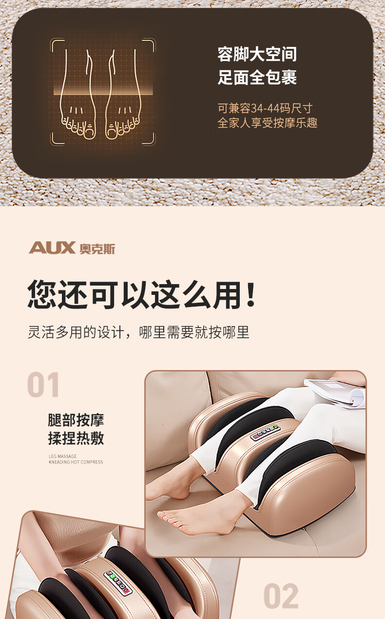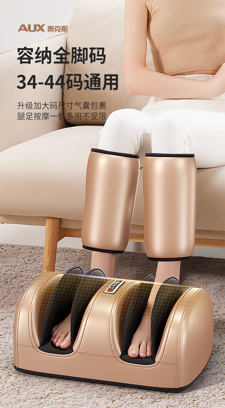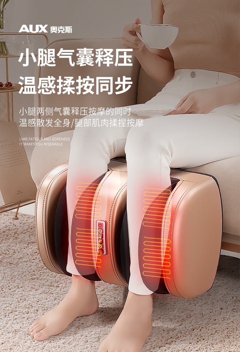 AUX leg massager, calf massager, muscle soreness, soles, thighs and meridians, fully automatic kneading, heating and compressing artifact, foot massage machine, practical birthday gift for parents, top version\upgraded one-piece leg and foot massage, 64-head kneading massage on the soles of the feet