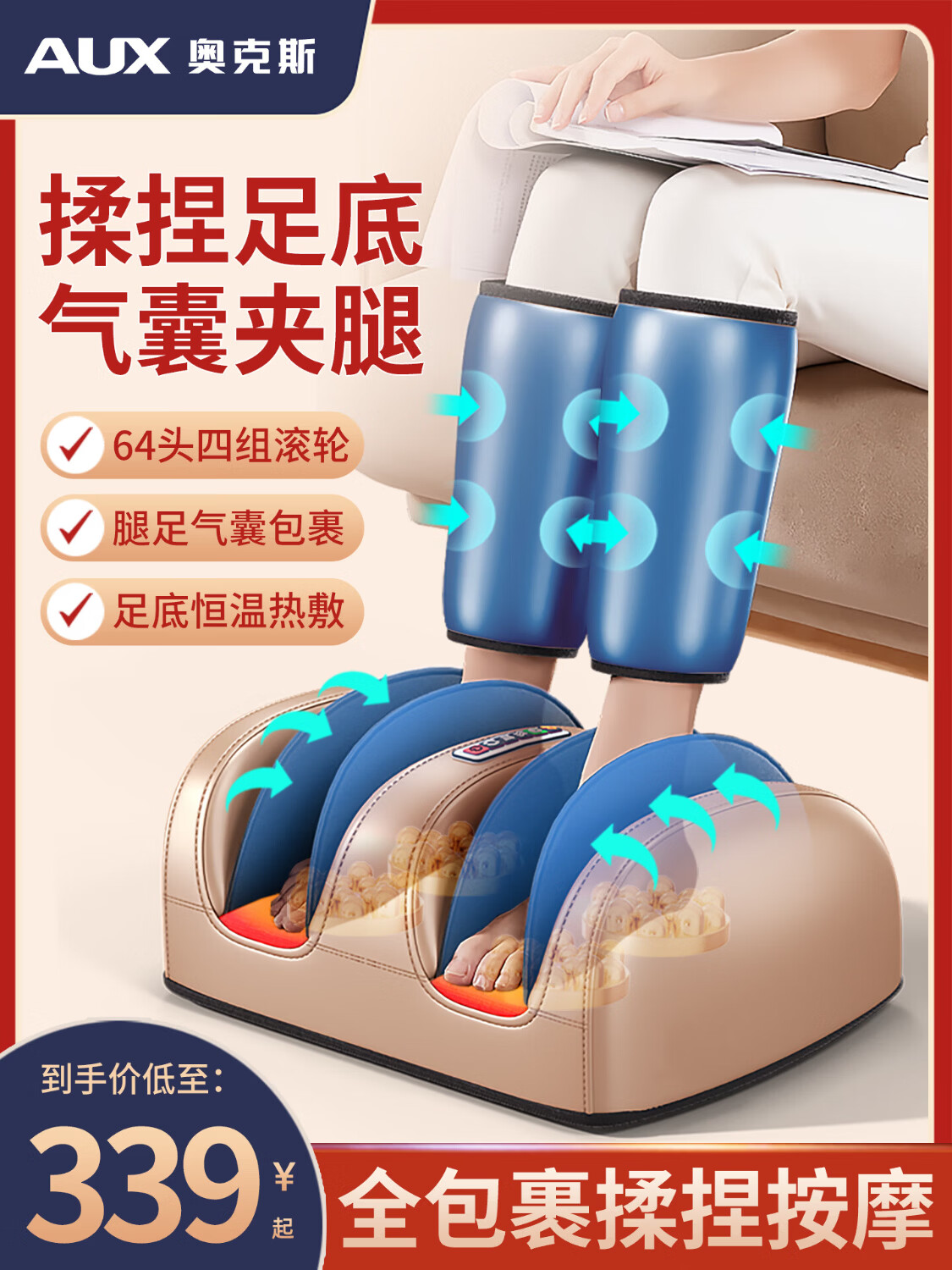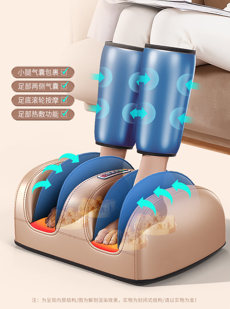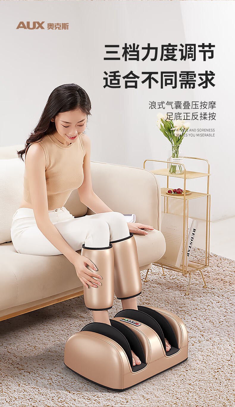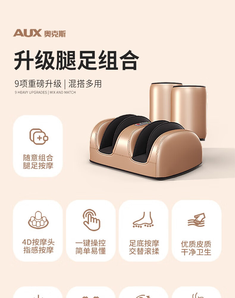AUX leg massager, calf massager, muscle soreness, soles, thighs and meridians, fully automatic kneading, heating and compressing artifact, foot massage machine, practical birthday gift for parents, top version\upgraded one-piece leg and foot massage, 64-head kneading massage on the soles of the feet