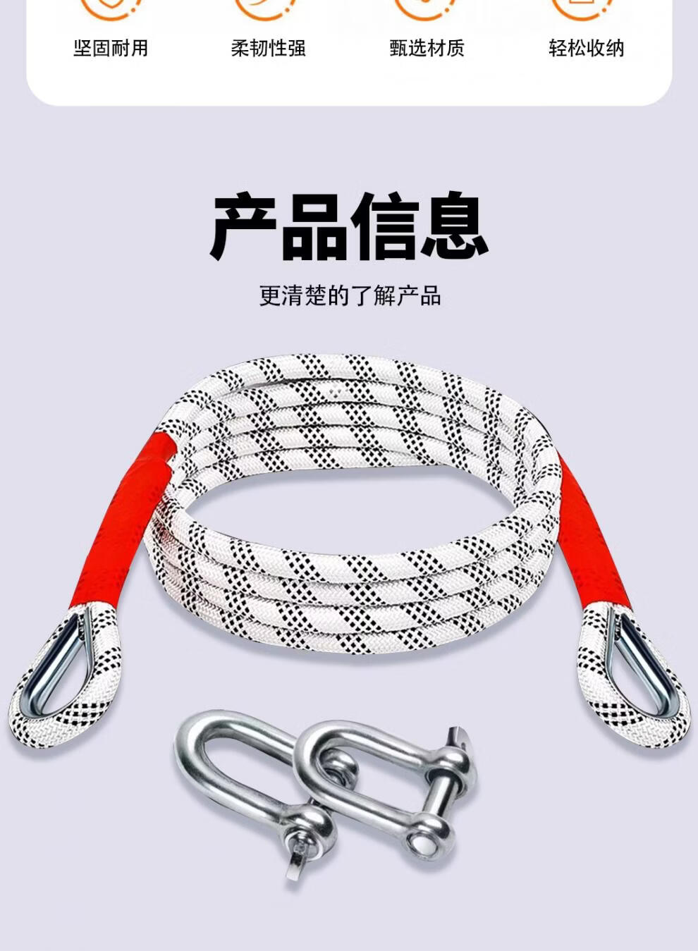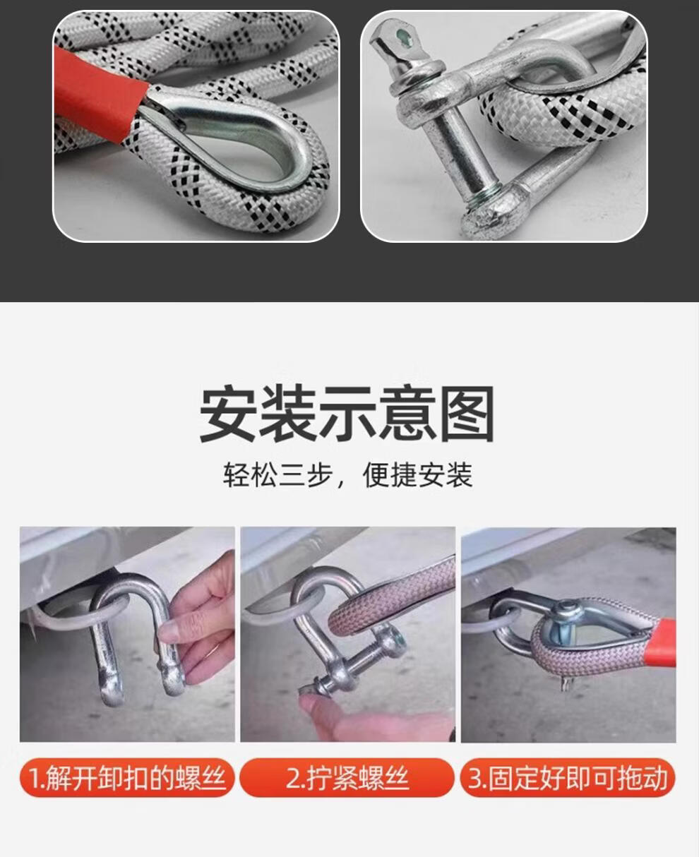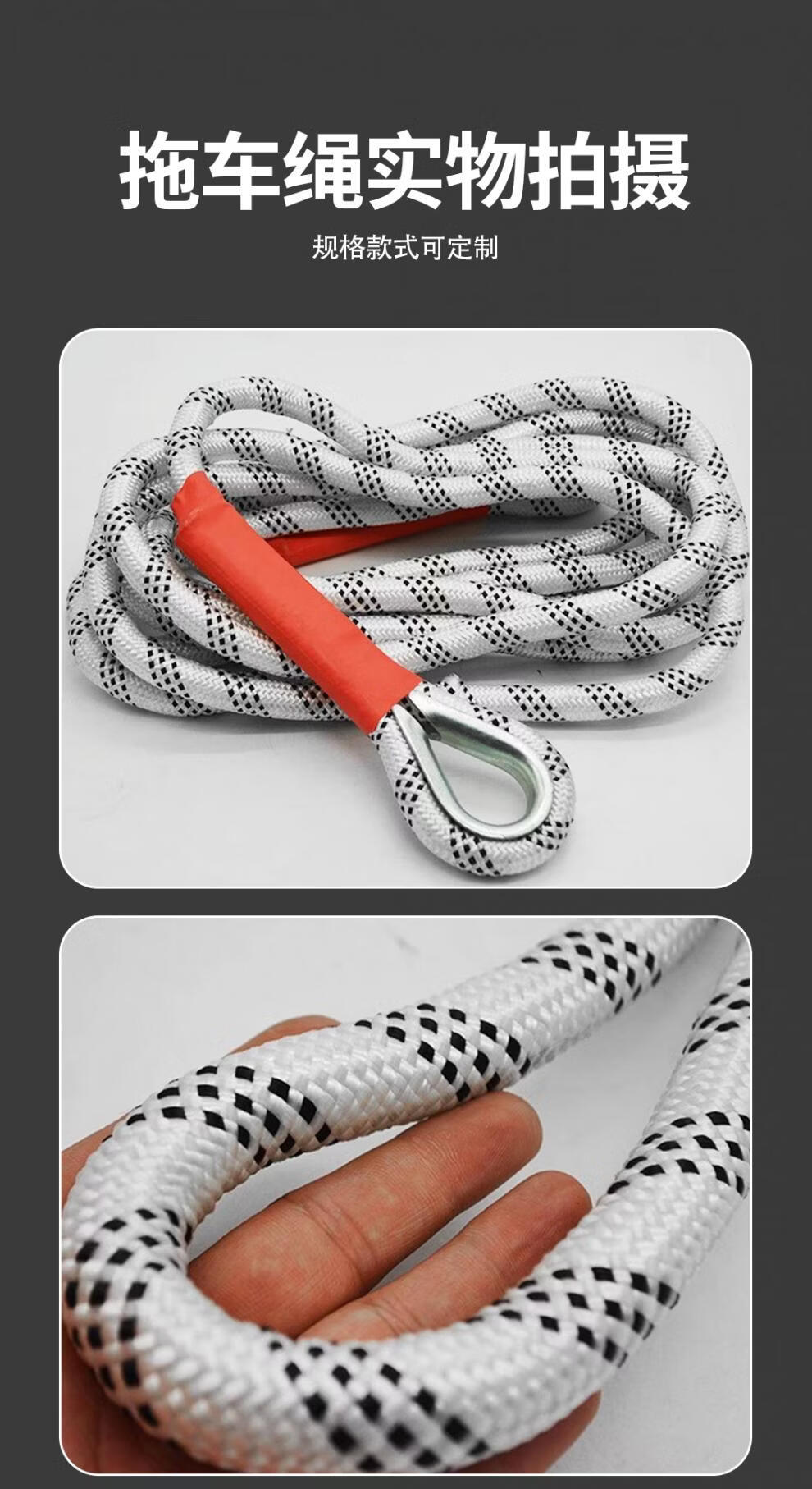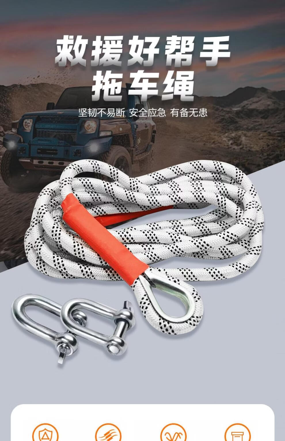 Gongma car trolley rope 5 tons 10 tons off-road vehicle trolley truck trolley with thickened traction rope anti-wear trailer hook 7 meters 18 tons large hook + reflective tape + storage bag universal for all vehicle series