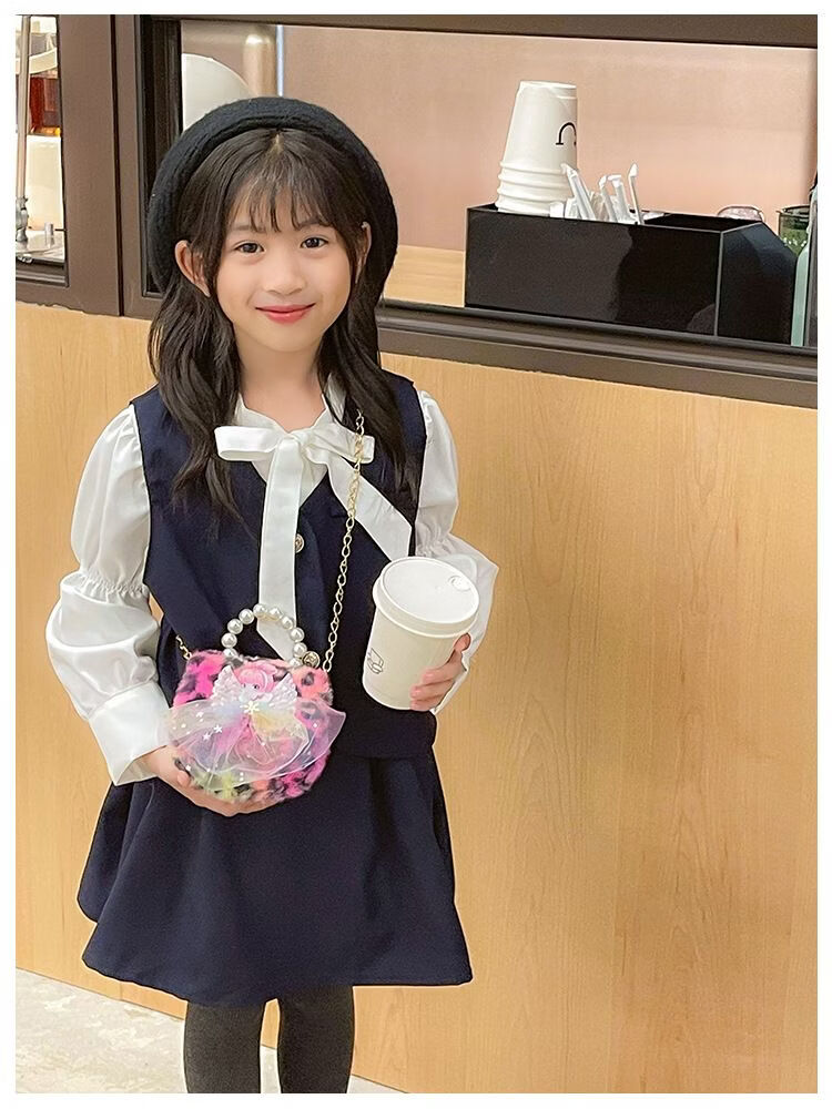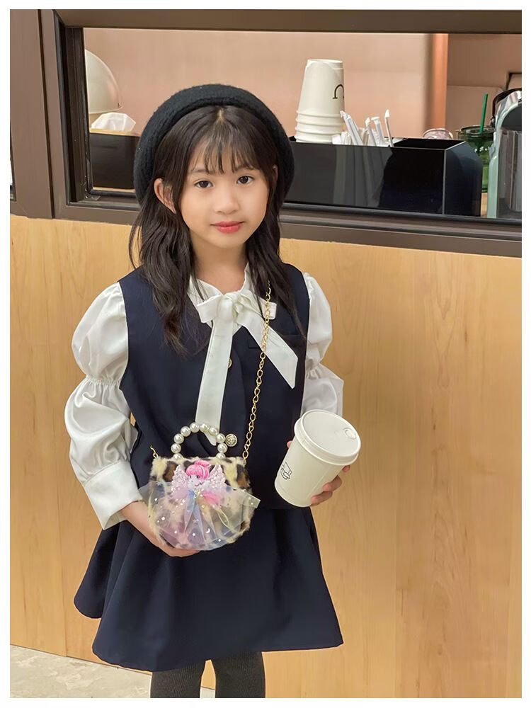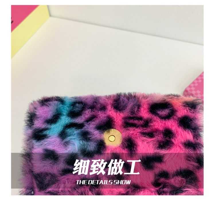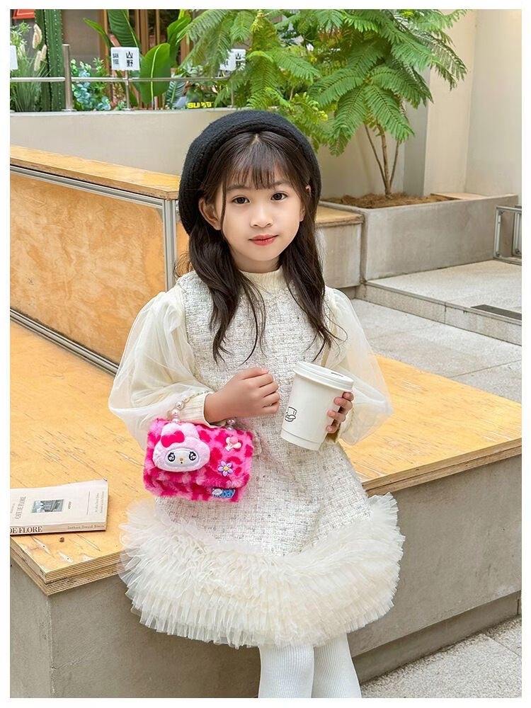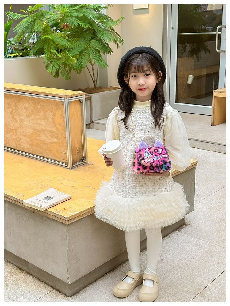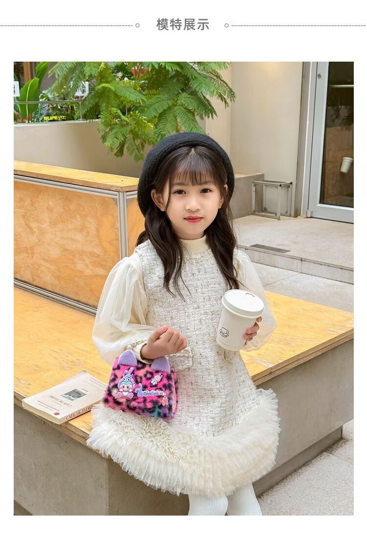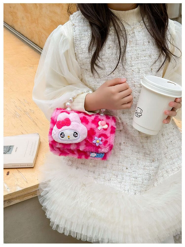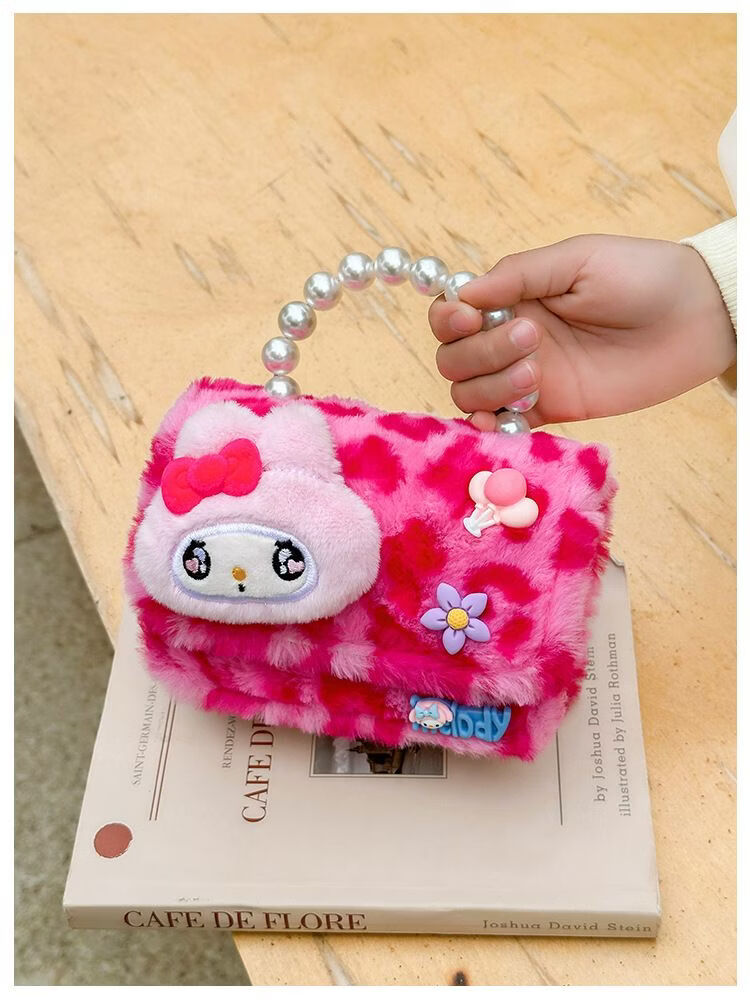 Ultraman Autumn and Winter New Girls Plush Bag Children's Chain Crossbody Bag Princess Baby Cute Pearl Handheld Shoulder Bag Brown Leopard Print