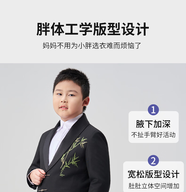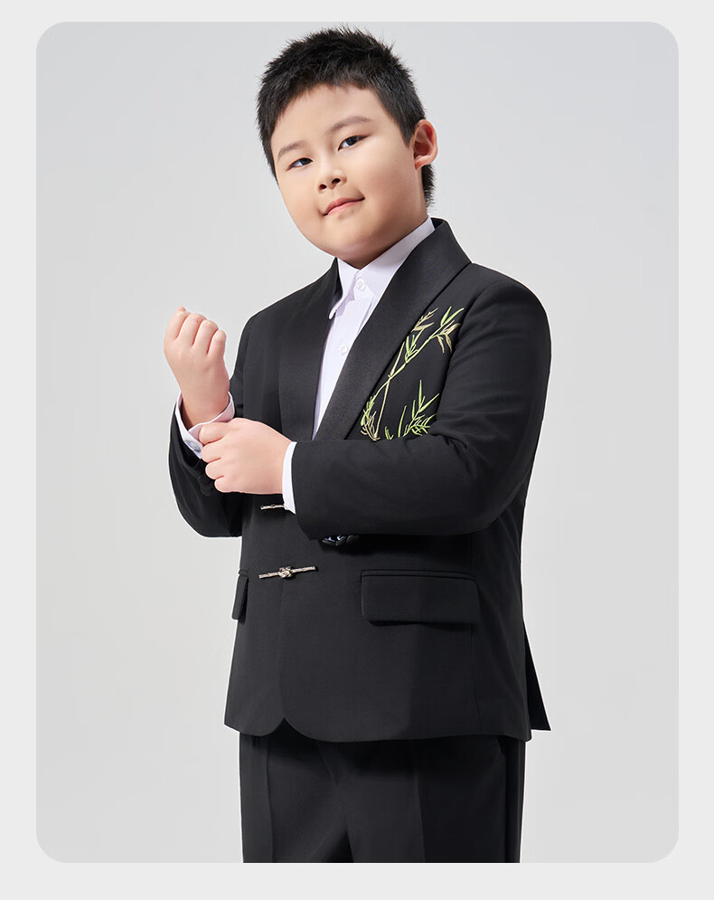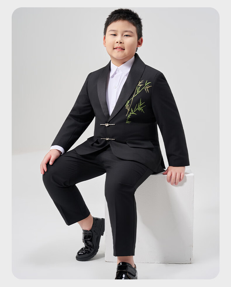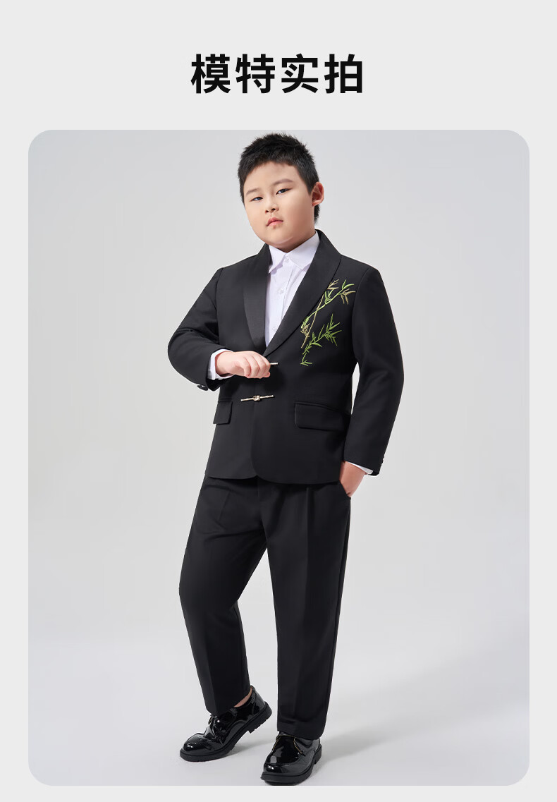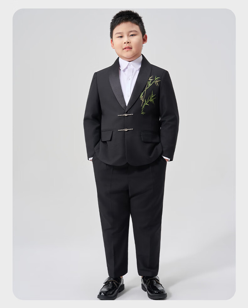 Luo Meng fat boy suit suit boy's plus size suit children's host performance clothing big children's performance dress fat boy two-piece suit jacket + trousers 130
