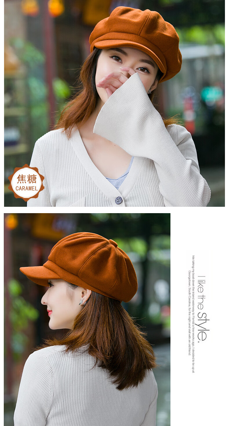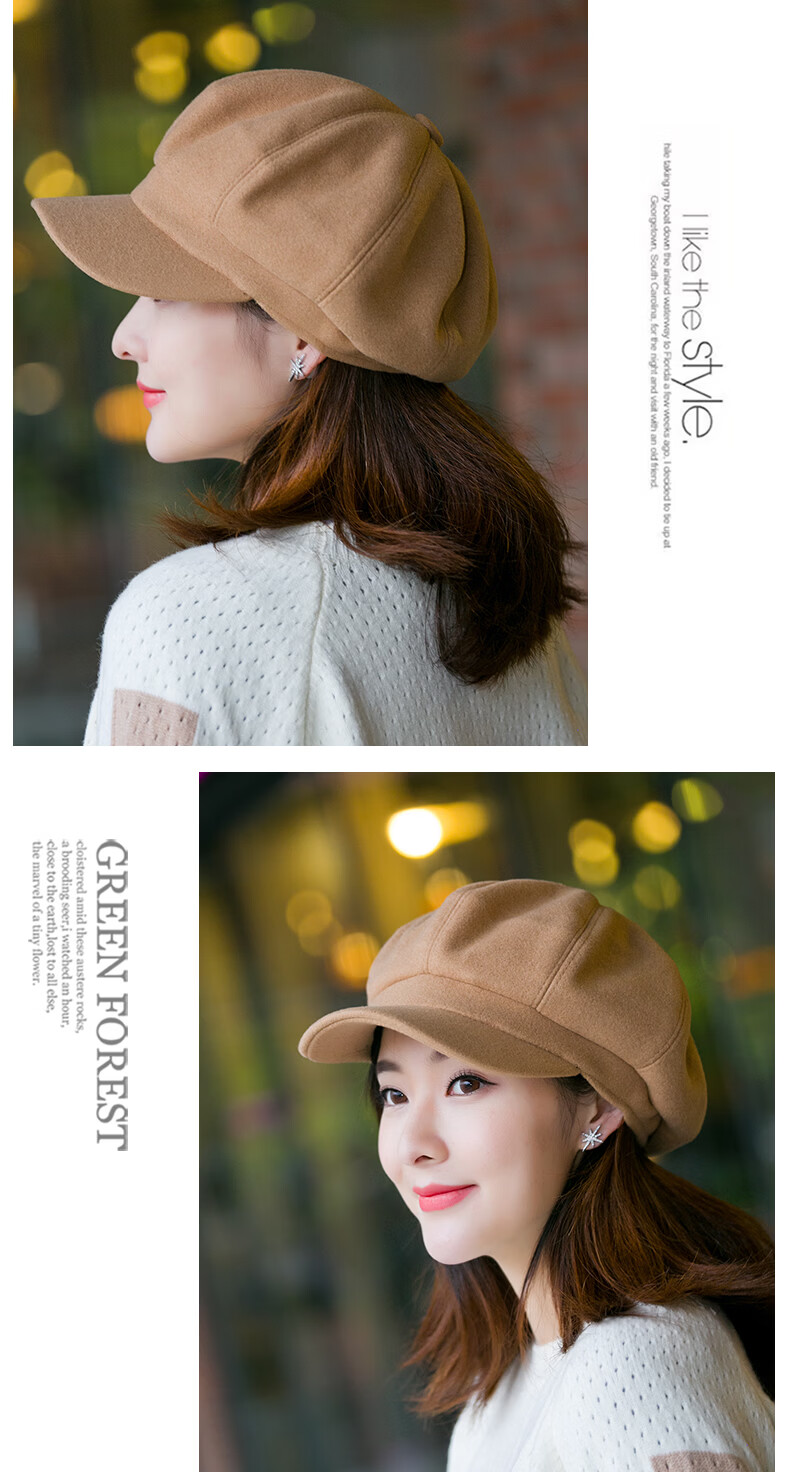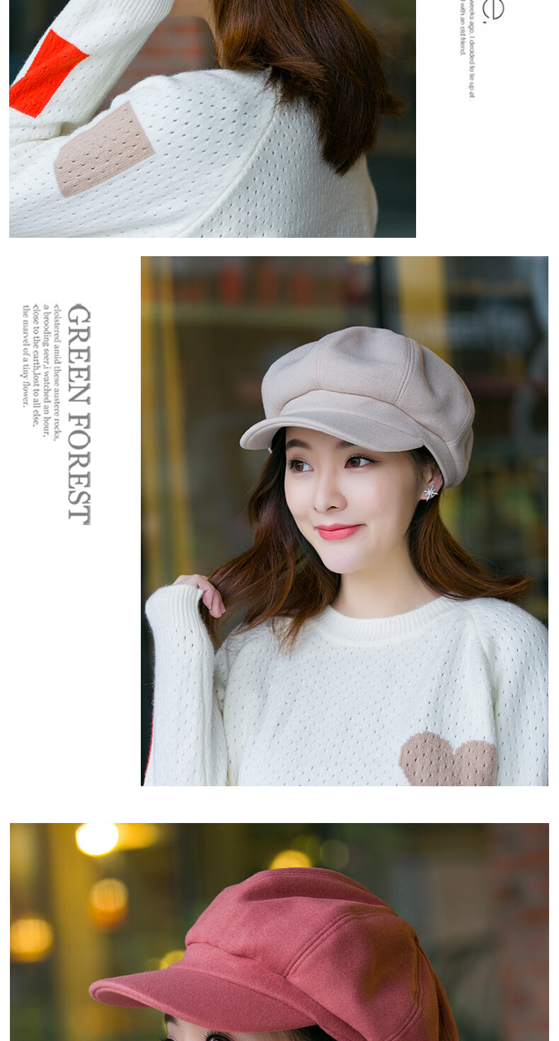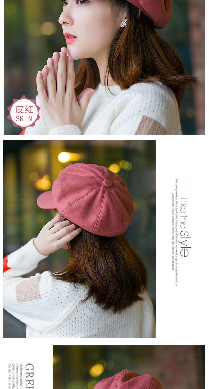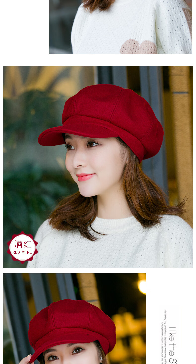 Odaixiu small head circumference hat women's beret Korean style wool octagonal British retro autumn and winter trendy versatile Japanese style literature and art burgundy M adjustable (54-59c)