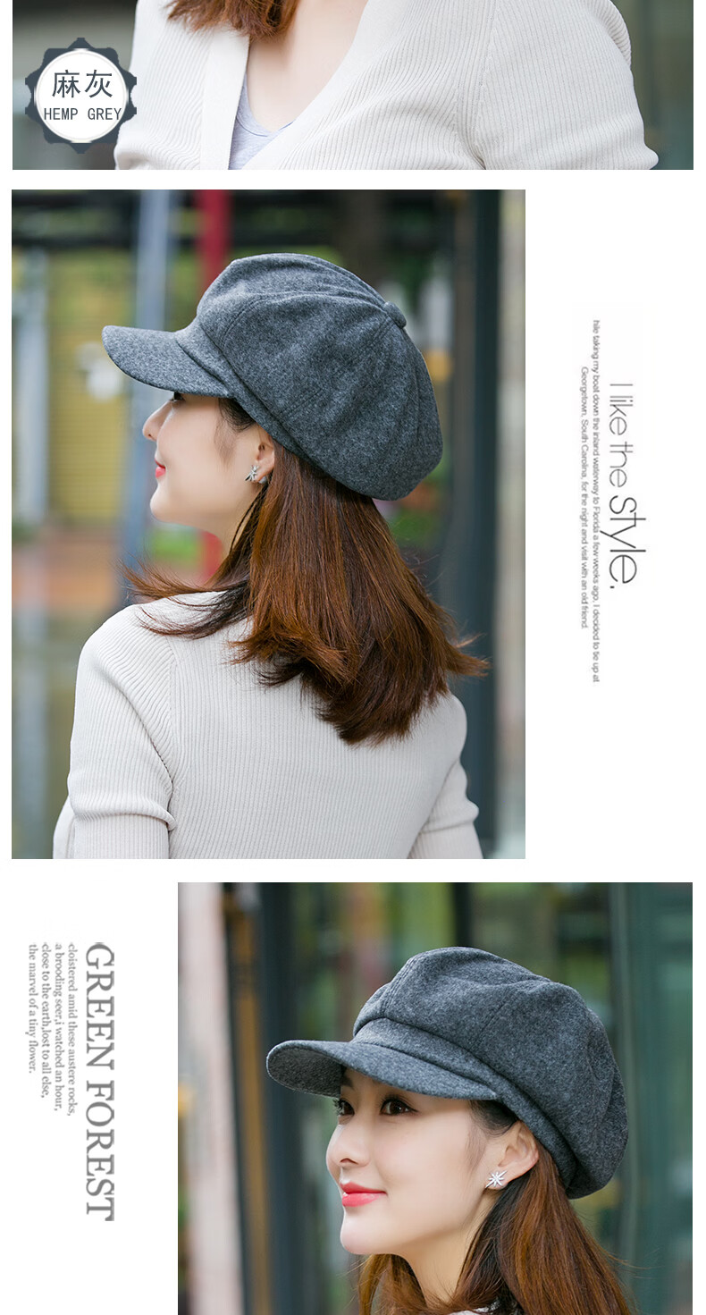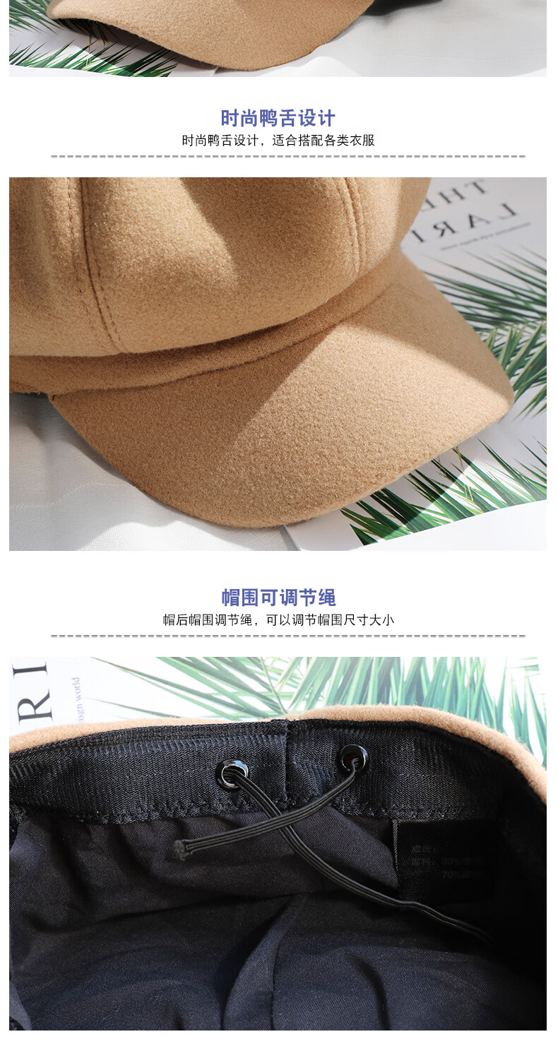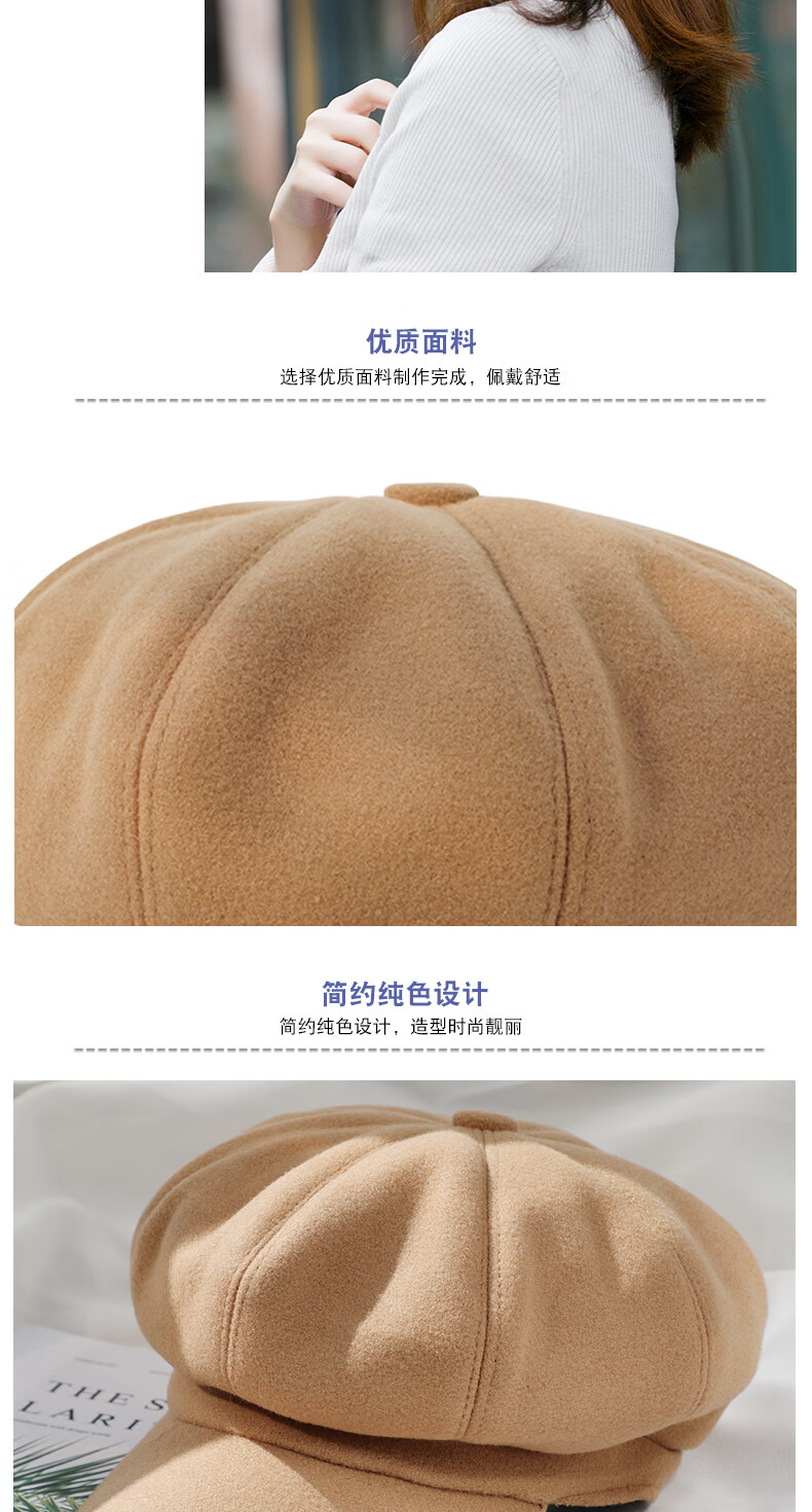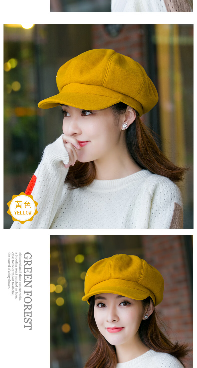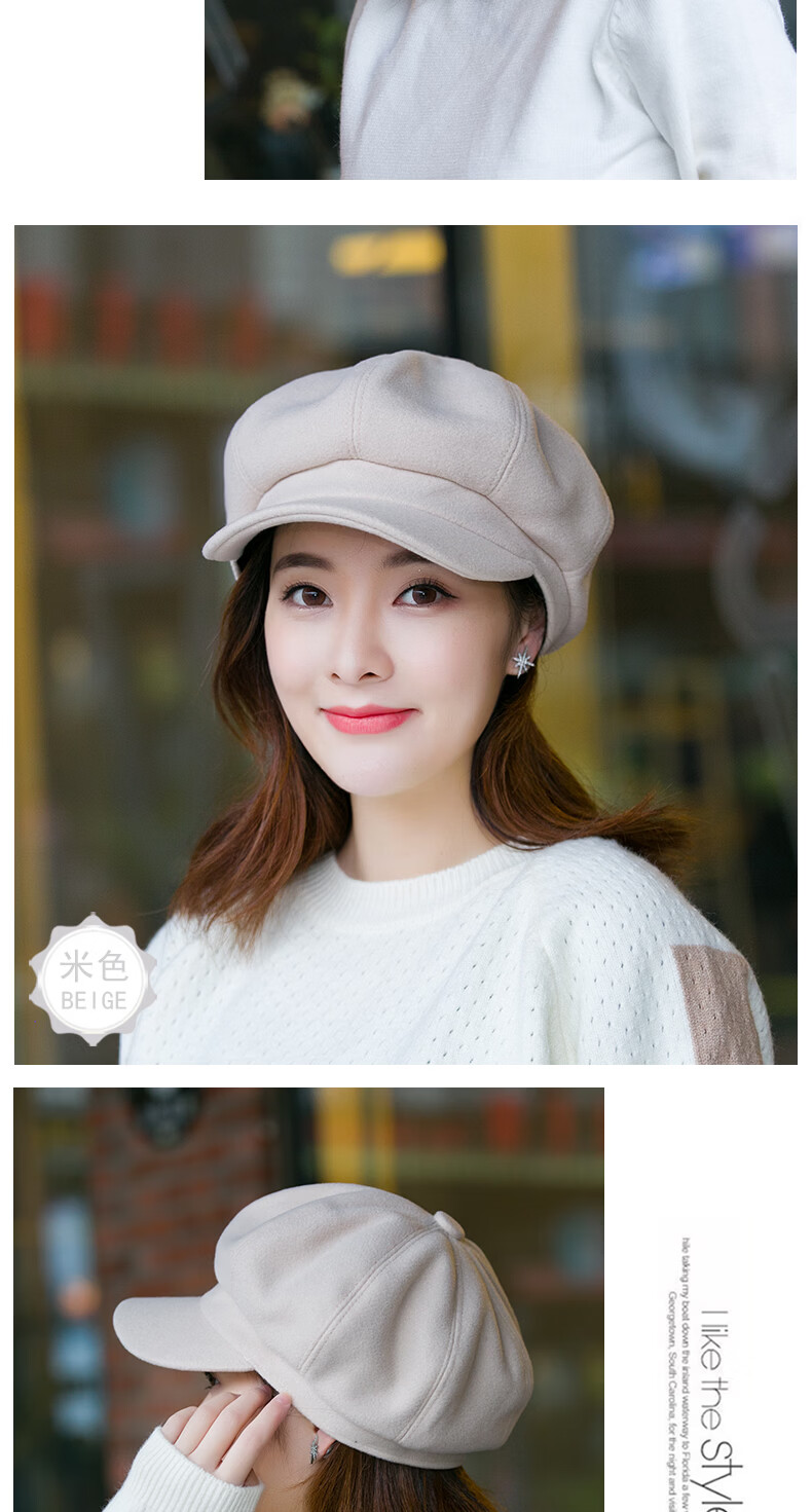 Odaixiu small head circumference hat women's beret Korean style wool octagonal British retro autumn and winter trendy versatile Japanese style literature and art burgundy M adjustable (54-59c)