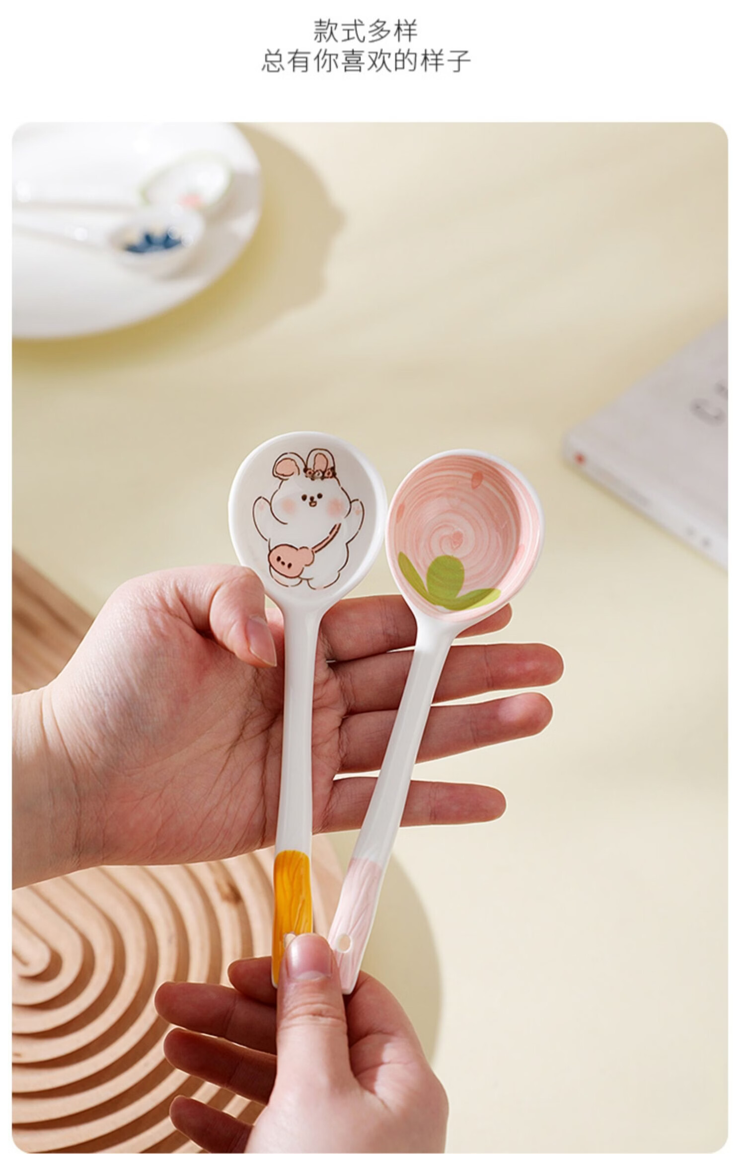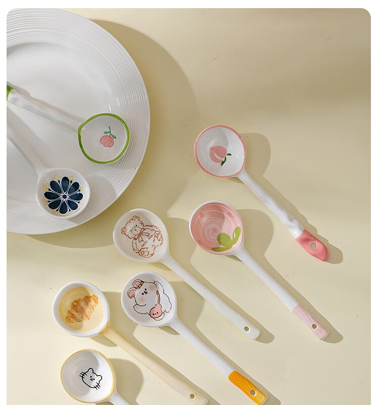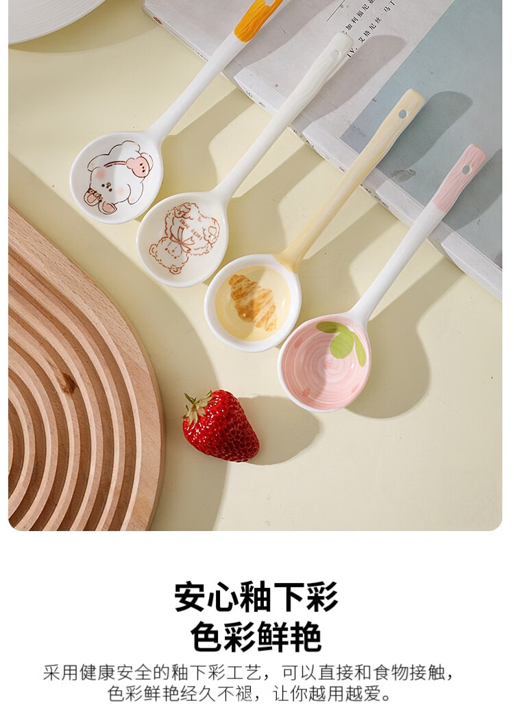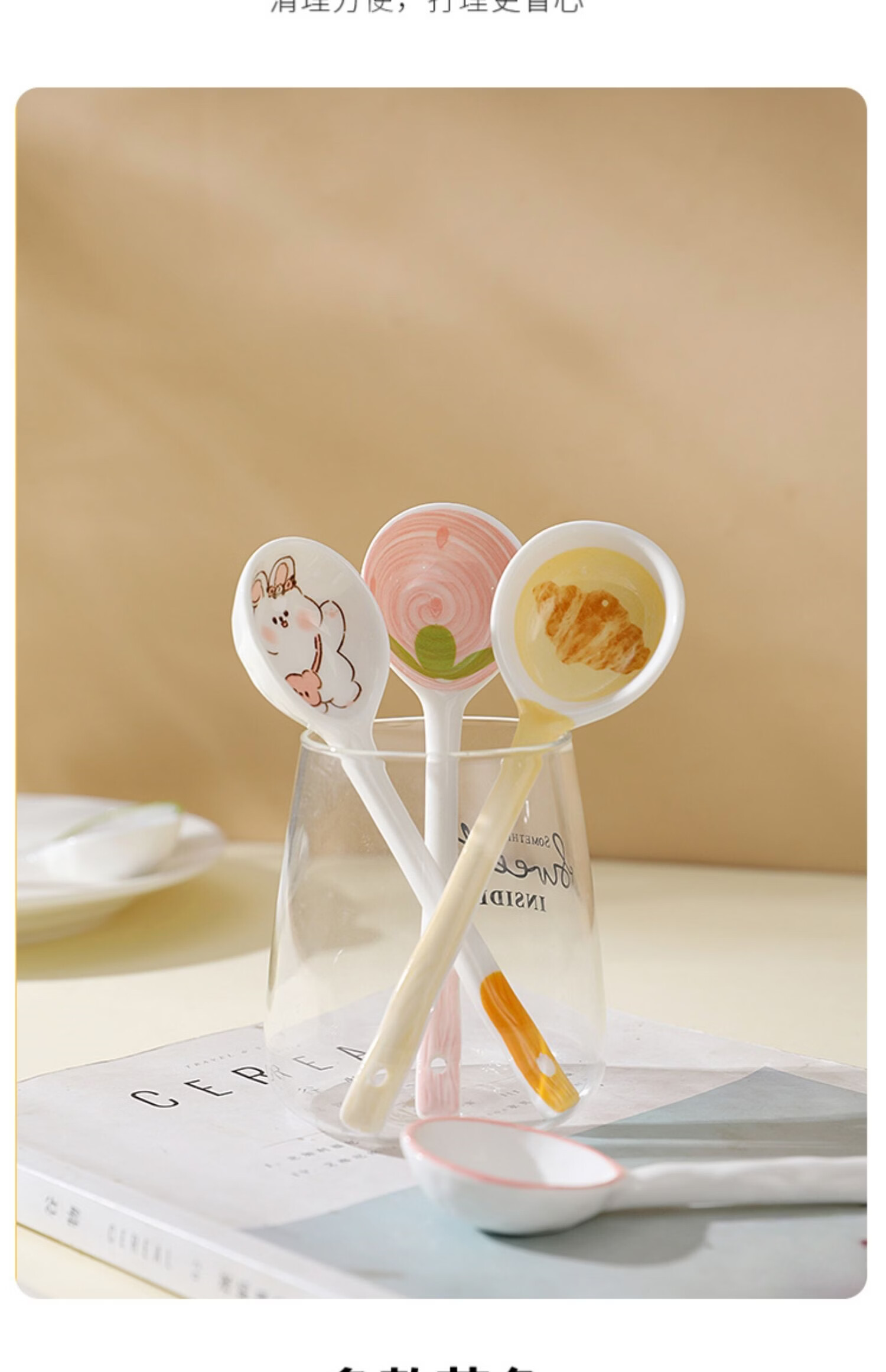 Baxi (BAXI) cute ceramic long-handled dessert spoon, underglaze color, hand-painted baby spoon, teaspoon coffee stirring spoon, good-looking mint macaron