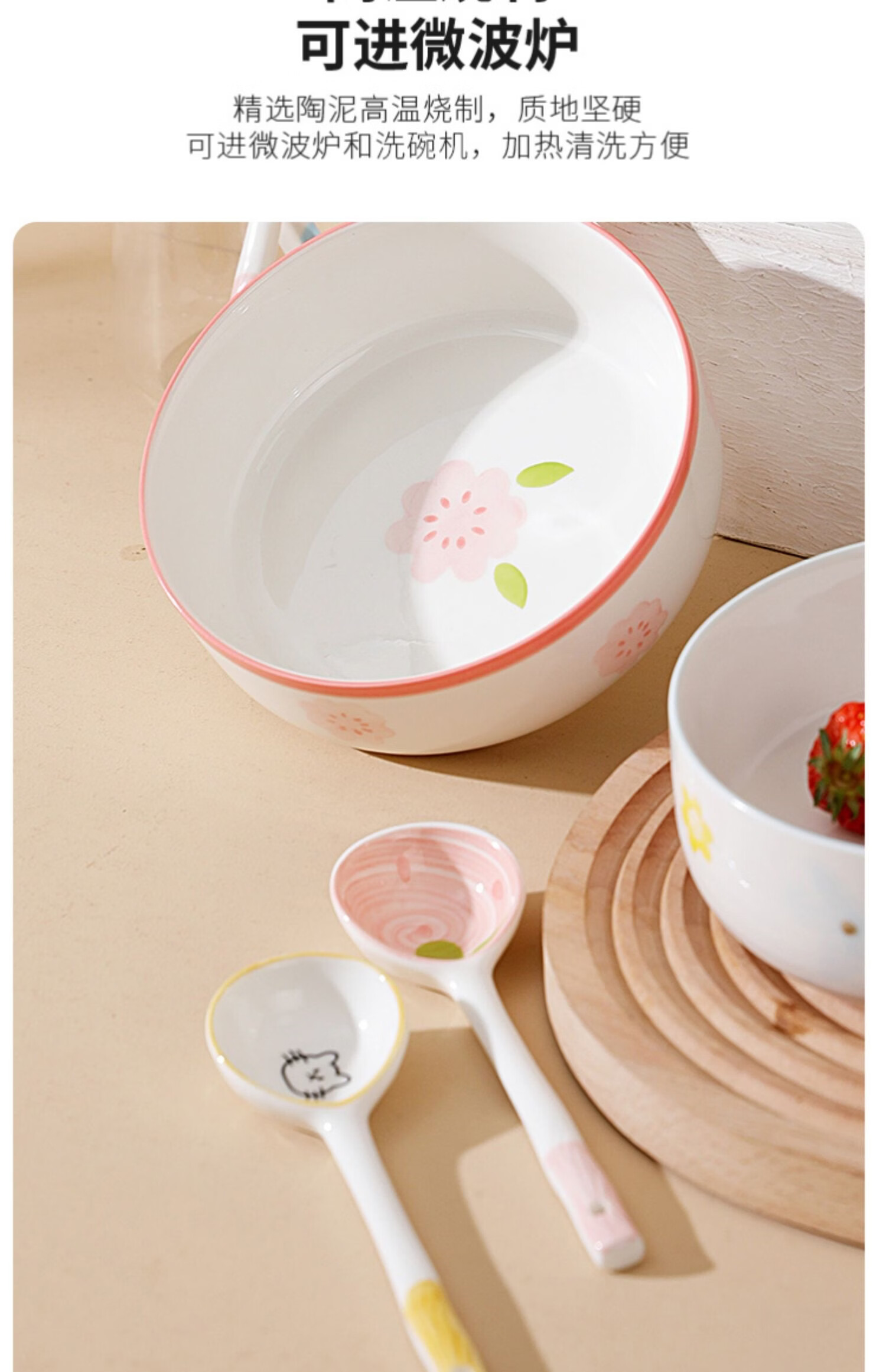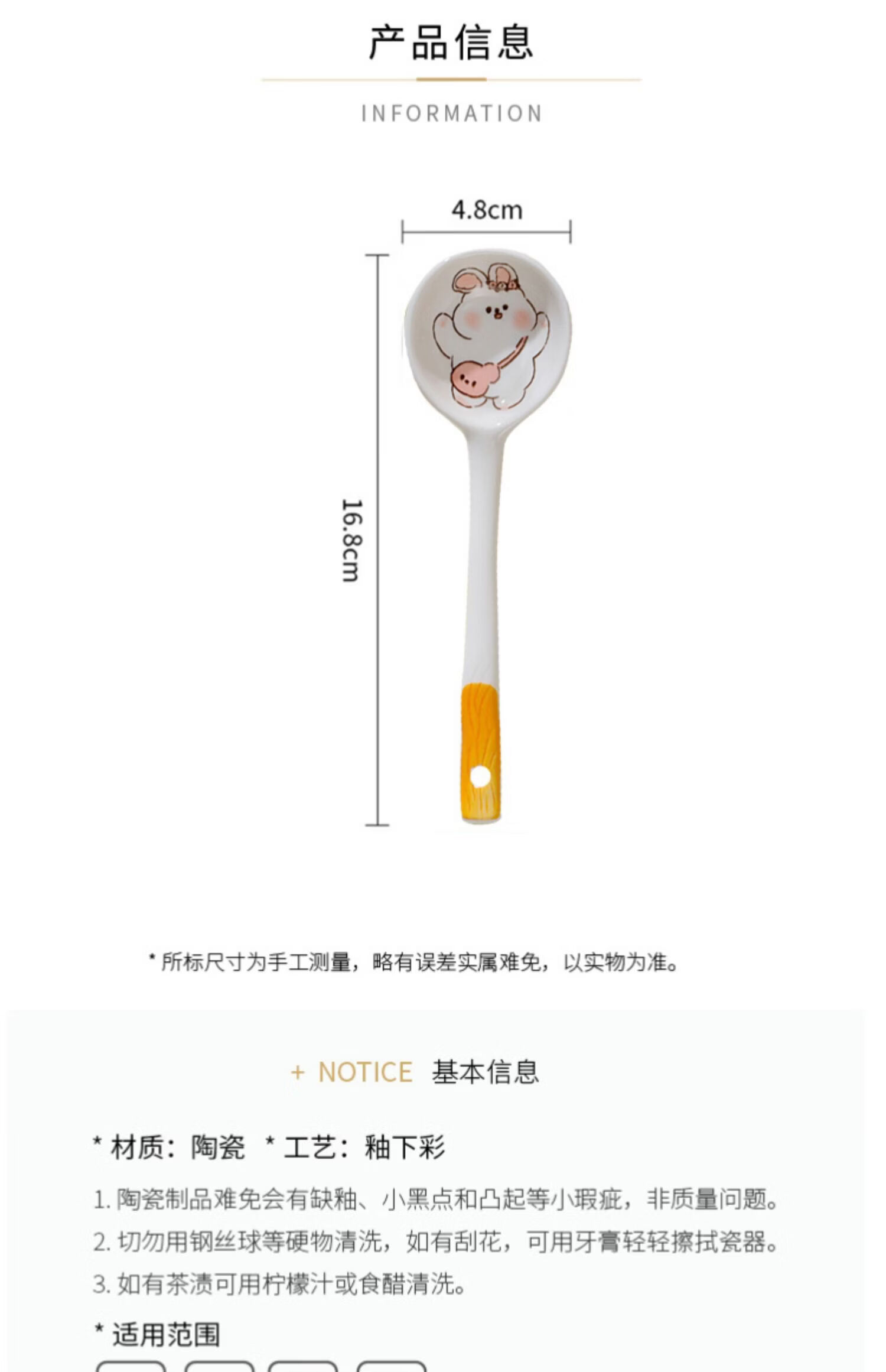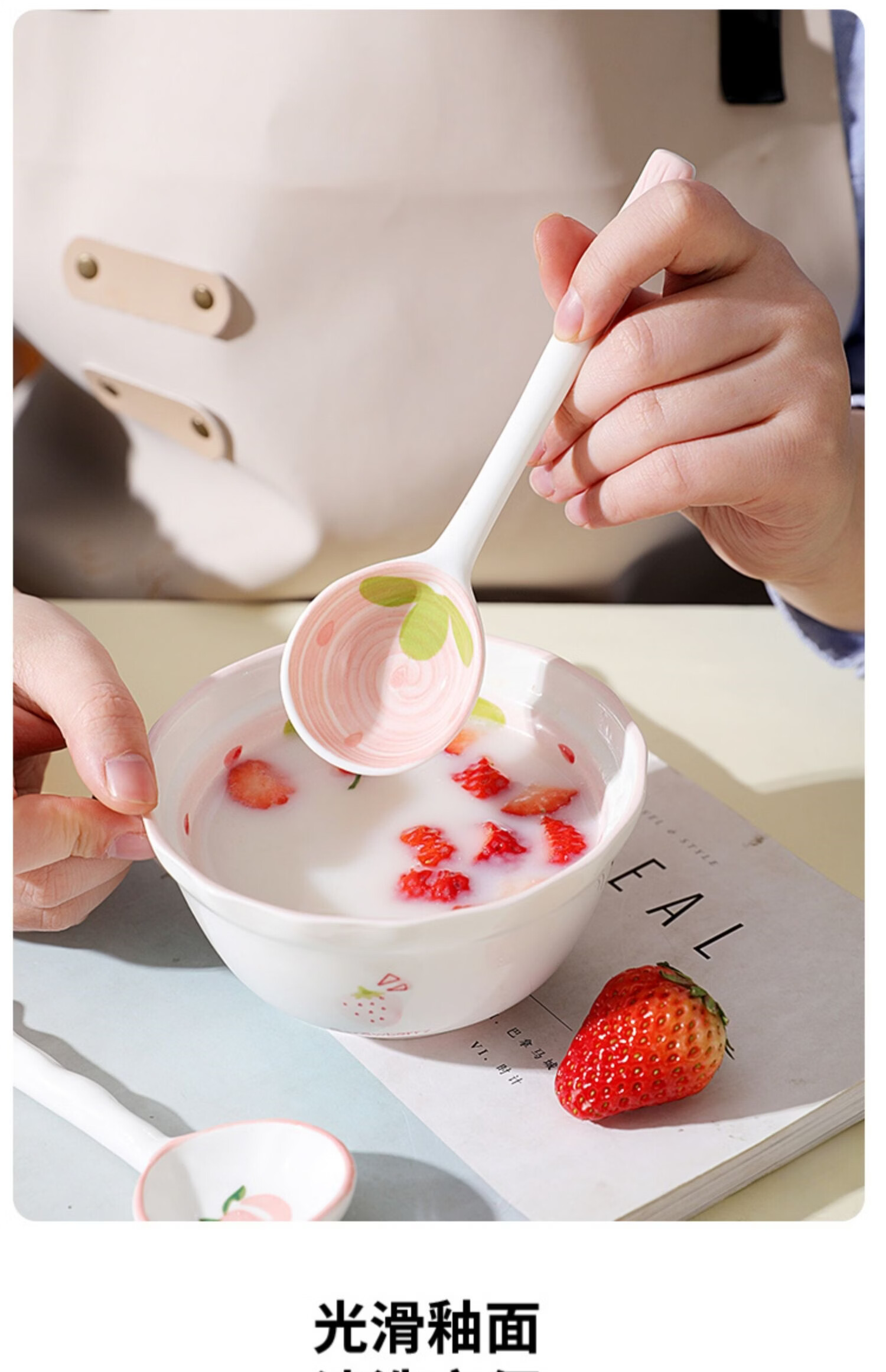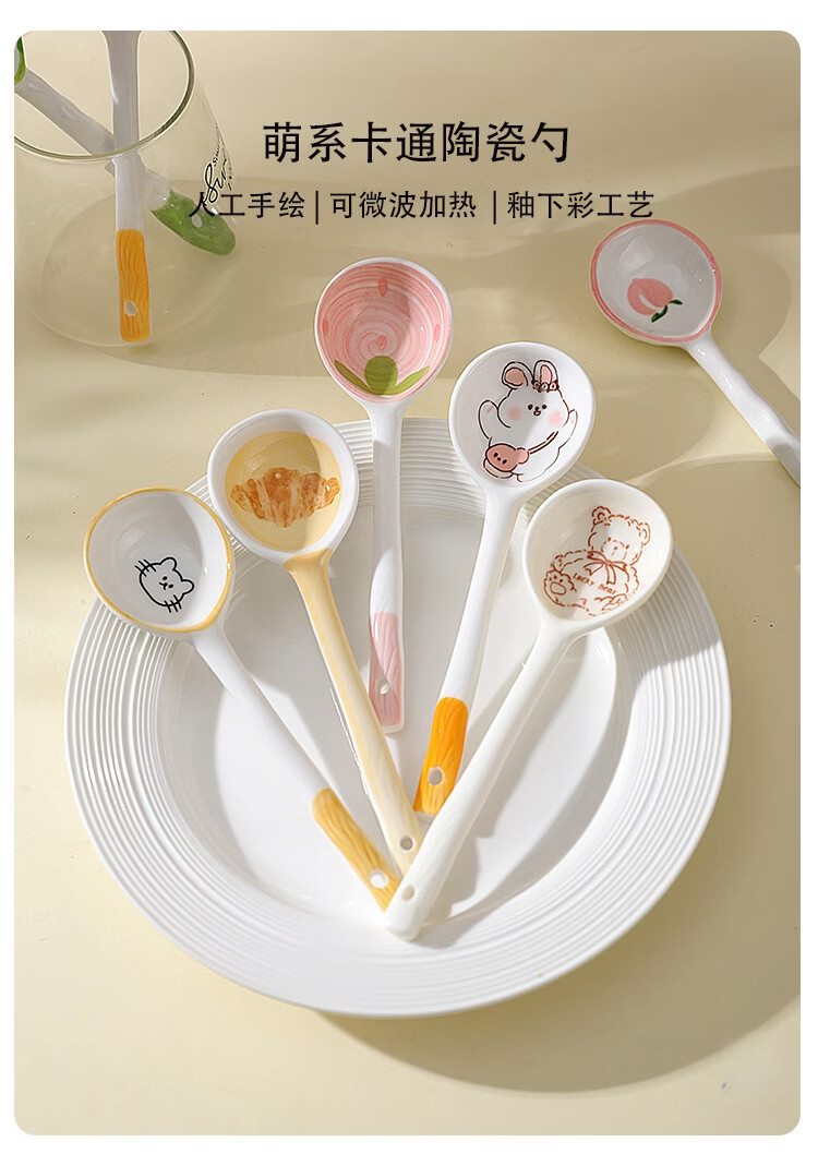 Baxi (BAXI) cute ceramic long-handled dessert spoon, underglaze color, hand-painted baby spoon, teaspoon coffee stirring spoon, good-looking mint macaron