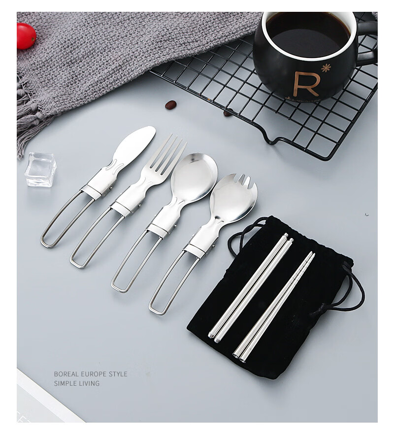 Shantou Lincun Spoon 304 Stainless Steel Folding Spoon and Fork Portable Tableware Outdoor Travel Spoon Work Picnic Takeaway Tableware 1 piece 304 Stainless Steel 304 Stainless Steel