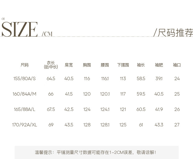 China (cm) 160-165/84-86 165-170 / 88-90 167-172 / 92-96 168-173 / 98-102 170-176 / 106-110