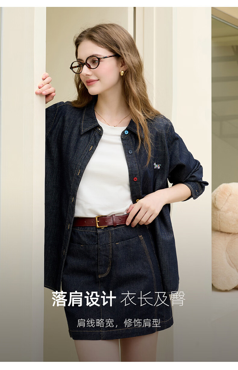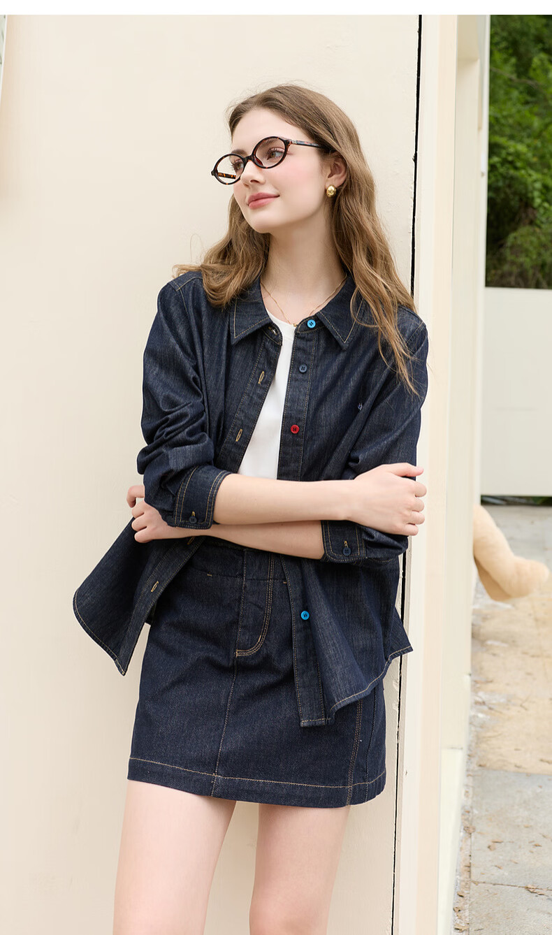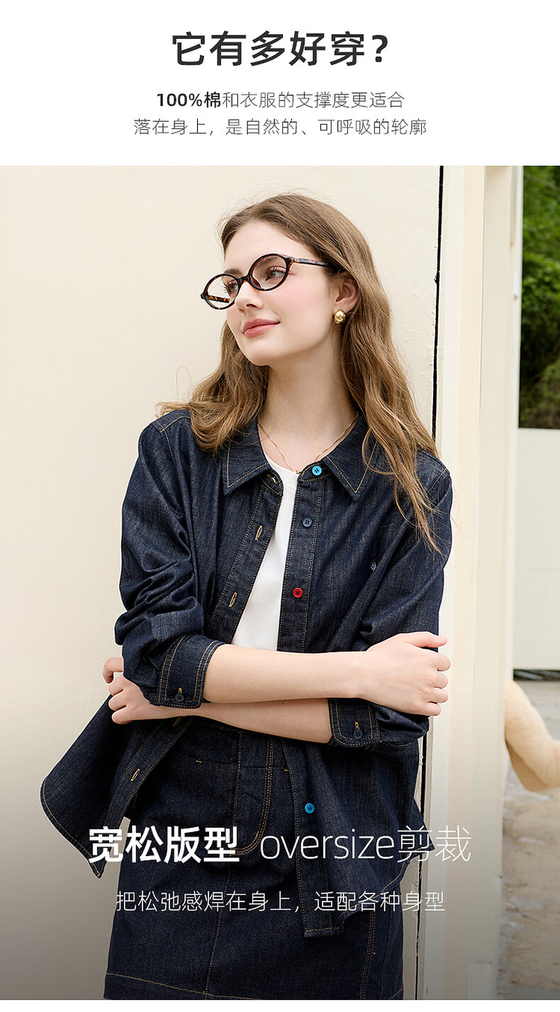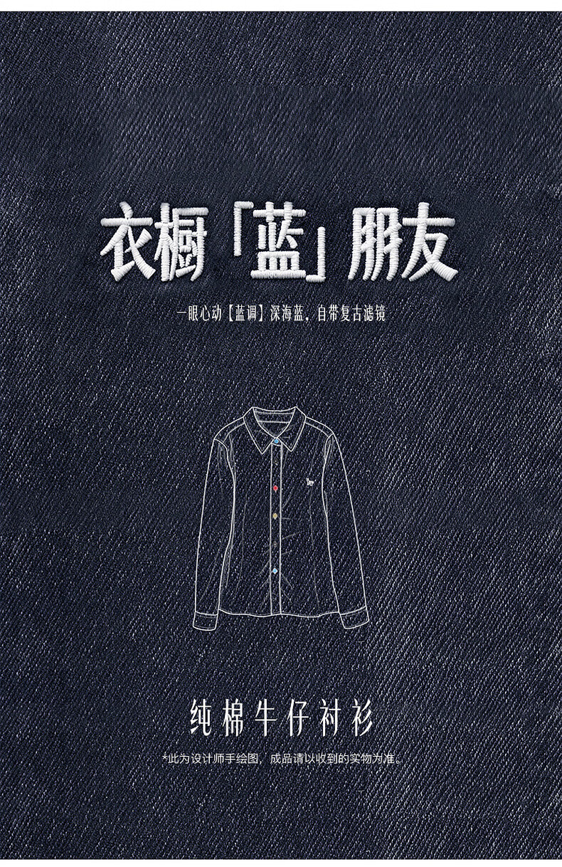 Tricolor 100 cotton 2026 spring new retro washed denim shirt loose long-sleeved shirt top M deep sea blue M 160/84A