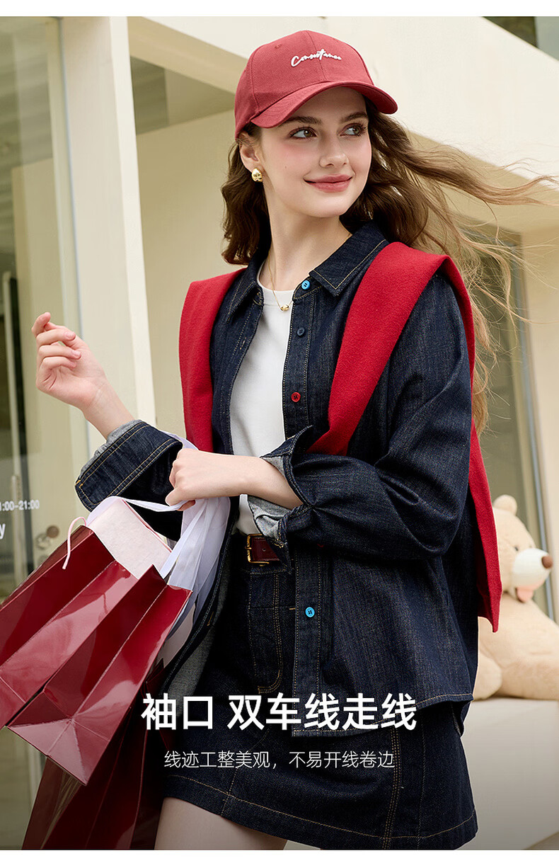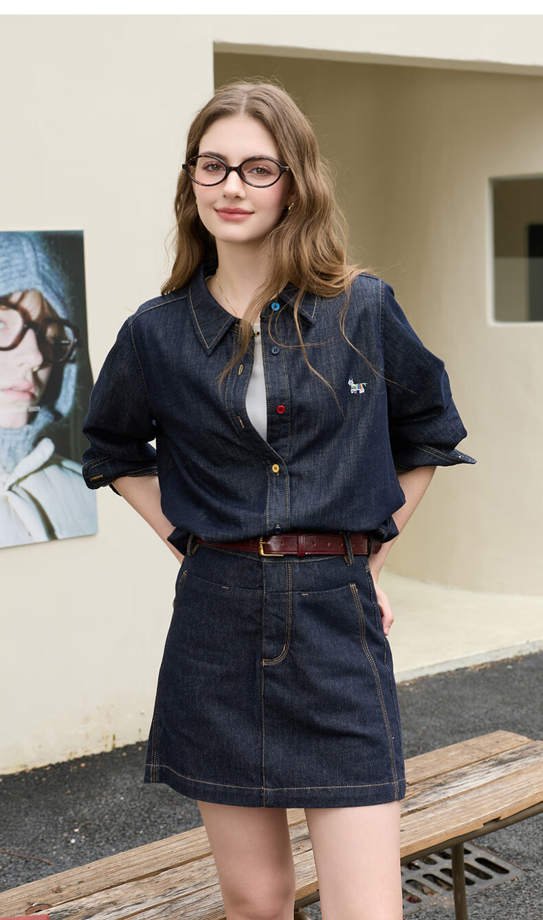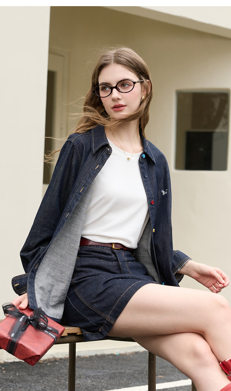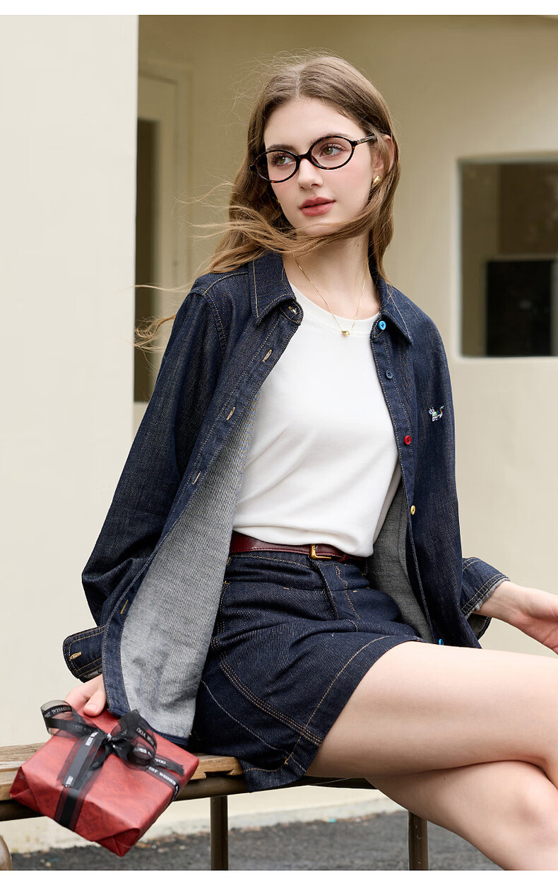 Tricolor 100 cotton 2026 spring new retro washed denim shirt loose long-sleeved shirt top M deep sea blue M 160/84A