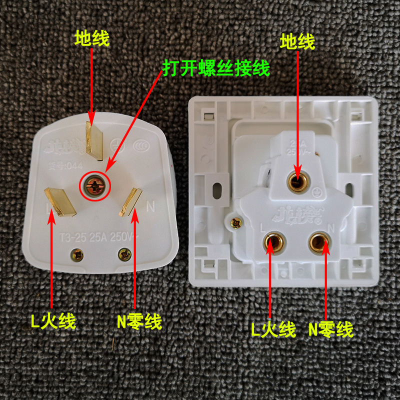 Pupan plug high-power three-hole plug air-conditioning water heater new energy vehicle charging pile socket Hongyan 32A plug socket + bottom box surface mounting
