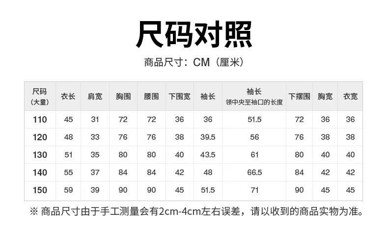 China (cm) 160-165/84-86 165-170 / 88-90 167-172 / 92-96 168-173 / 98-102 170-176 / 106-110