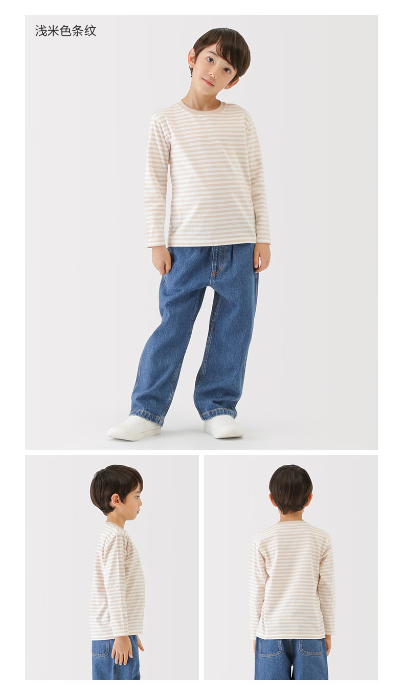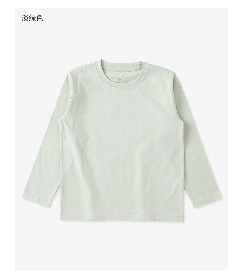 MUJI Big Children's Tianzhu Weaving Round Neck Long Sleeve T-shirt Children's Clothing Bottoming Shirt Children's Boys and Girls Spring 26 Light Green 150/76A