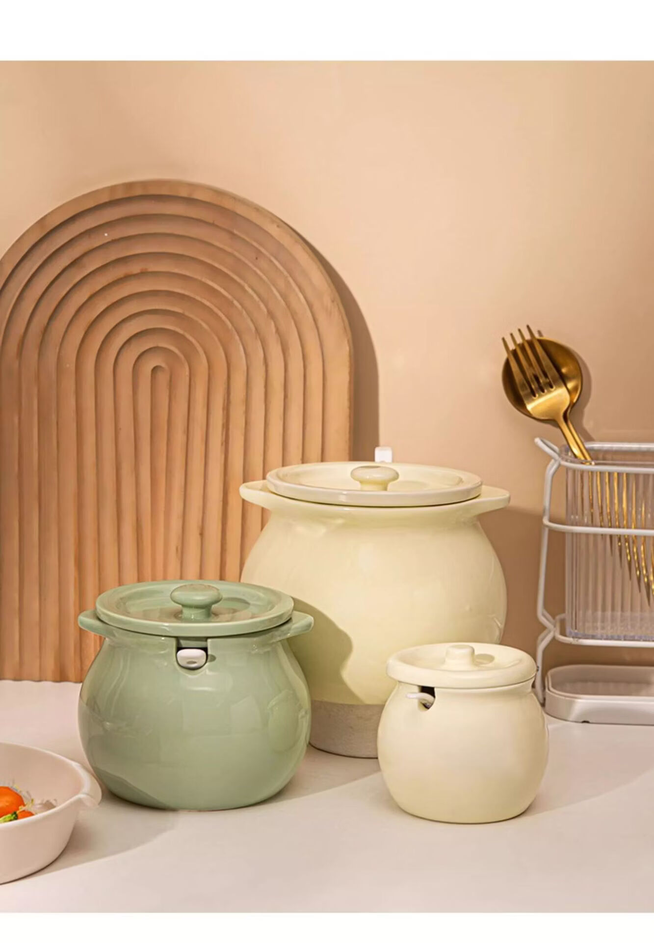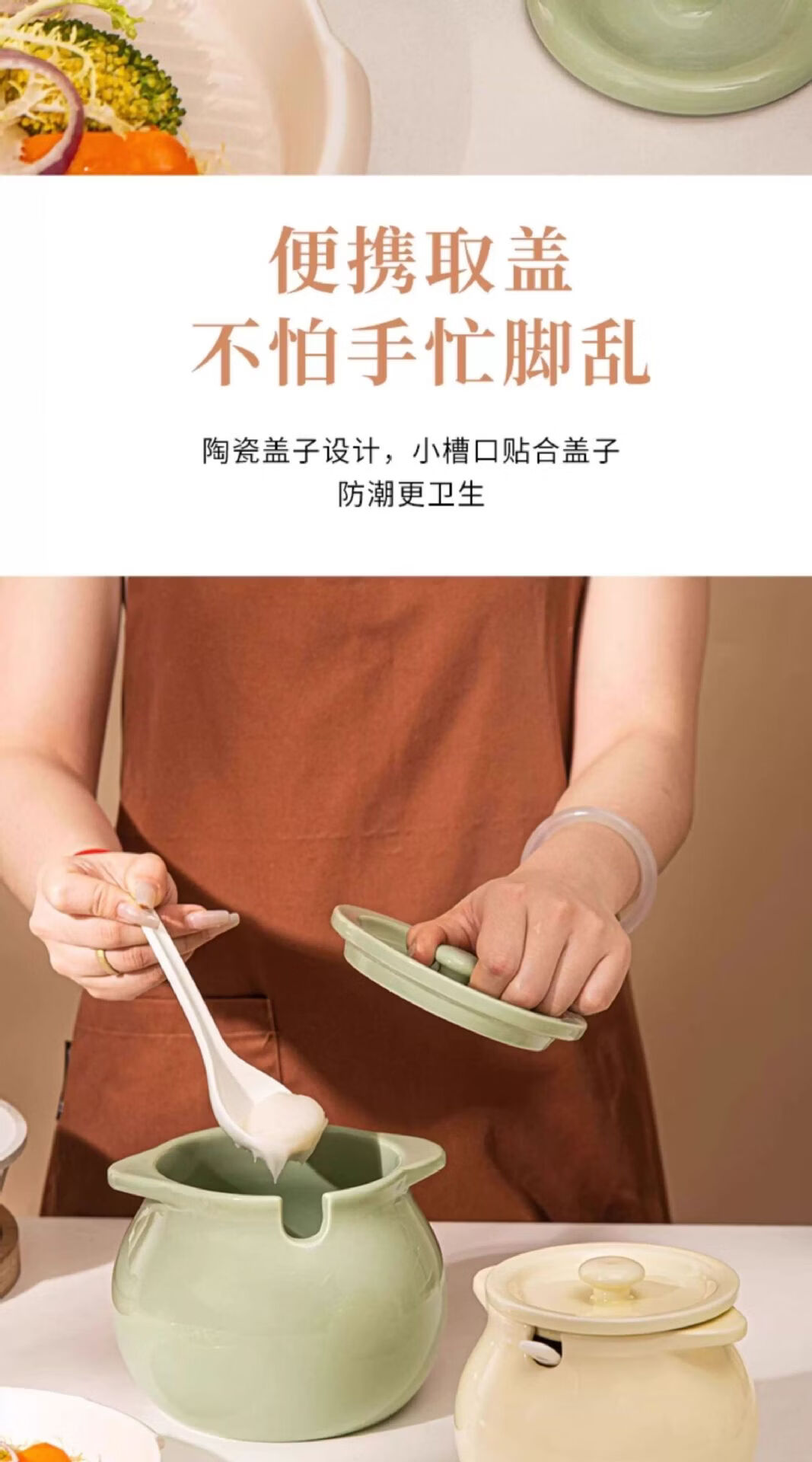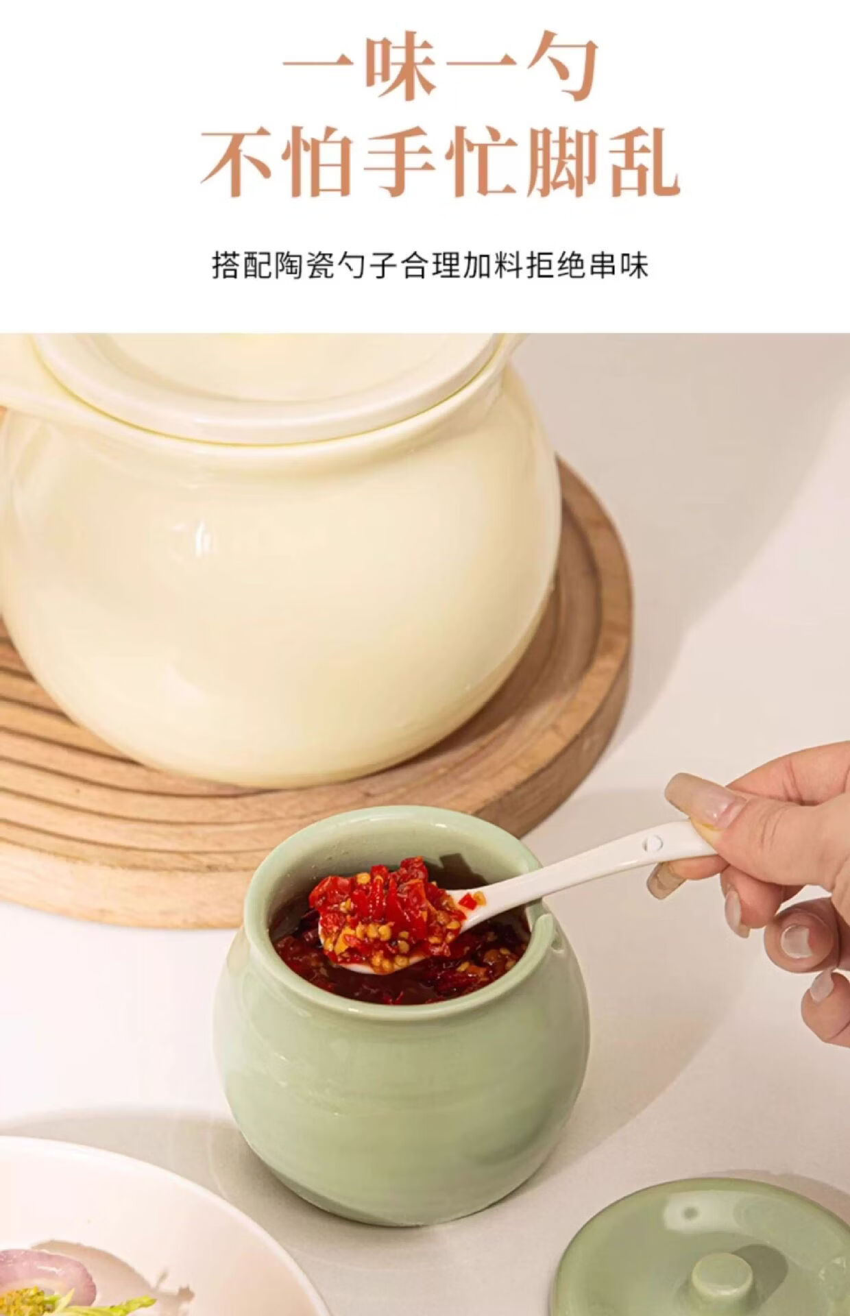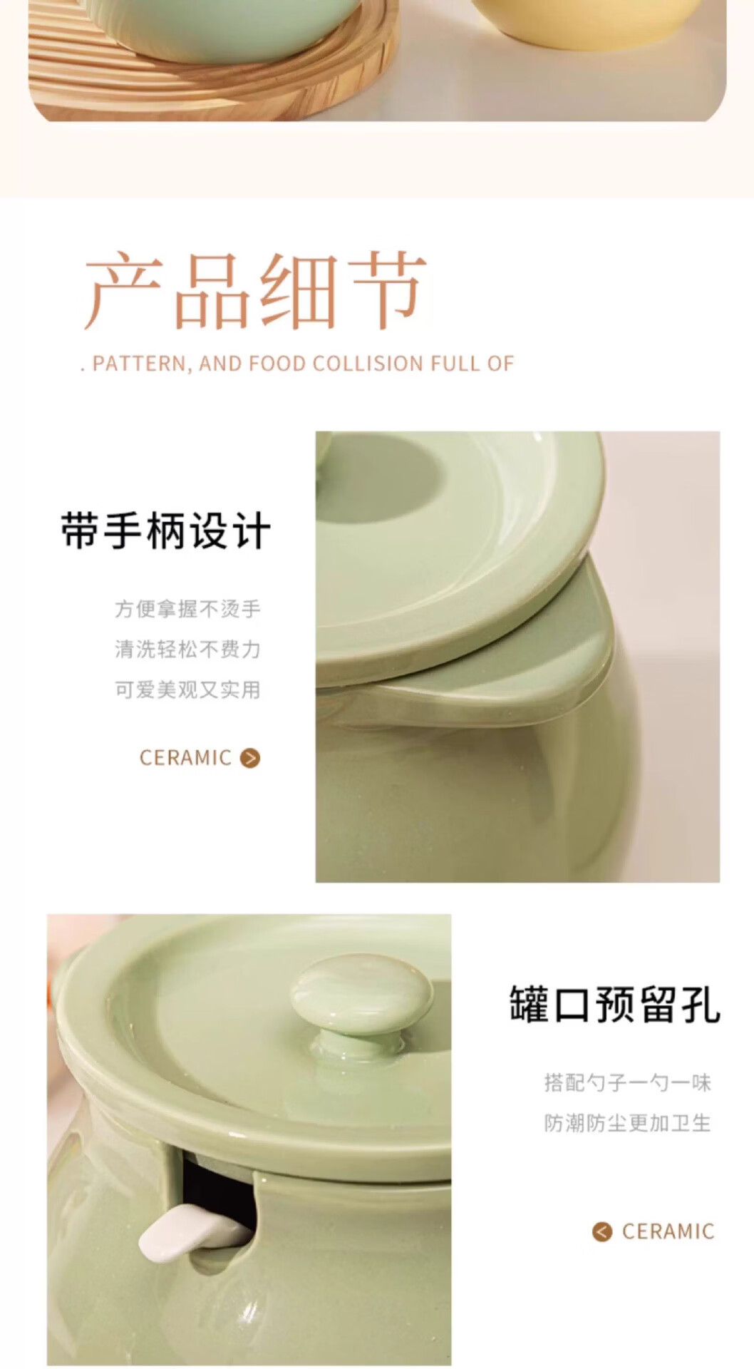 BYX lard jar household high temperature resistant ceramic jar with lid kitchen oil salt seasoning jar meat oil chili oil red oil storage jar milk green small size 750ml (free special ceramic spoon)