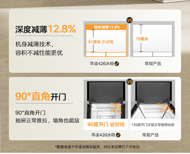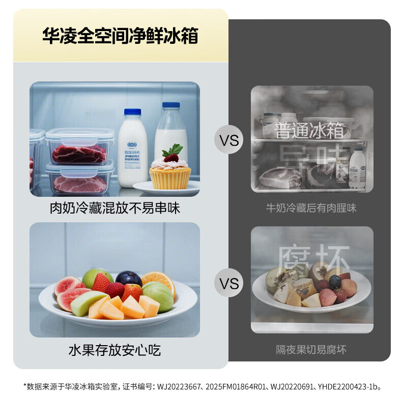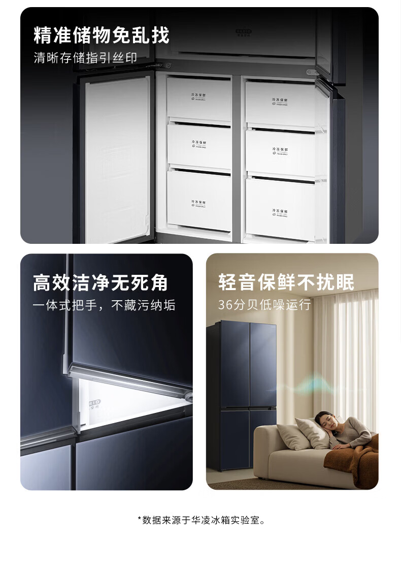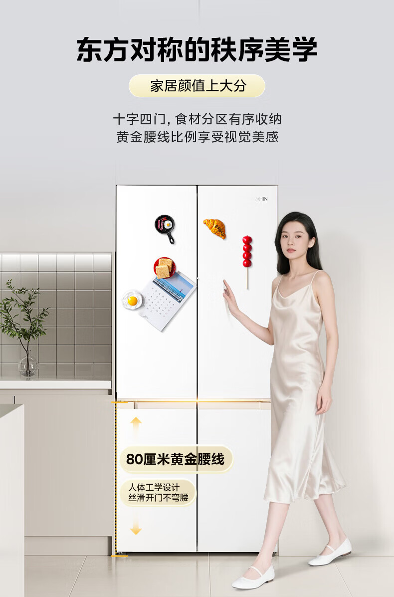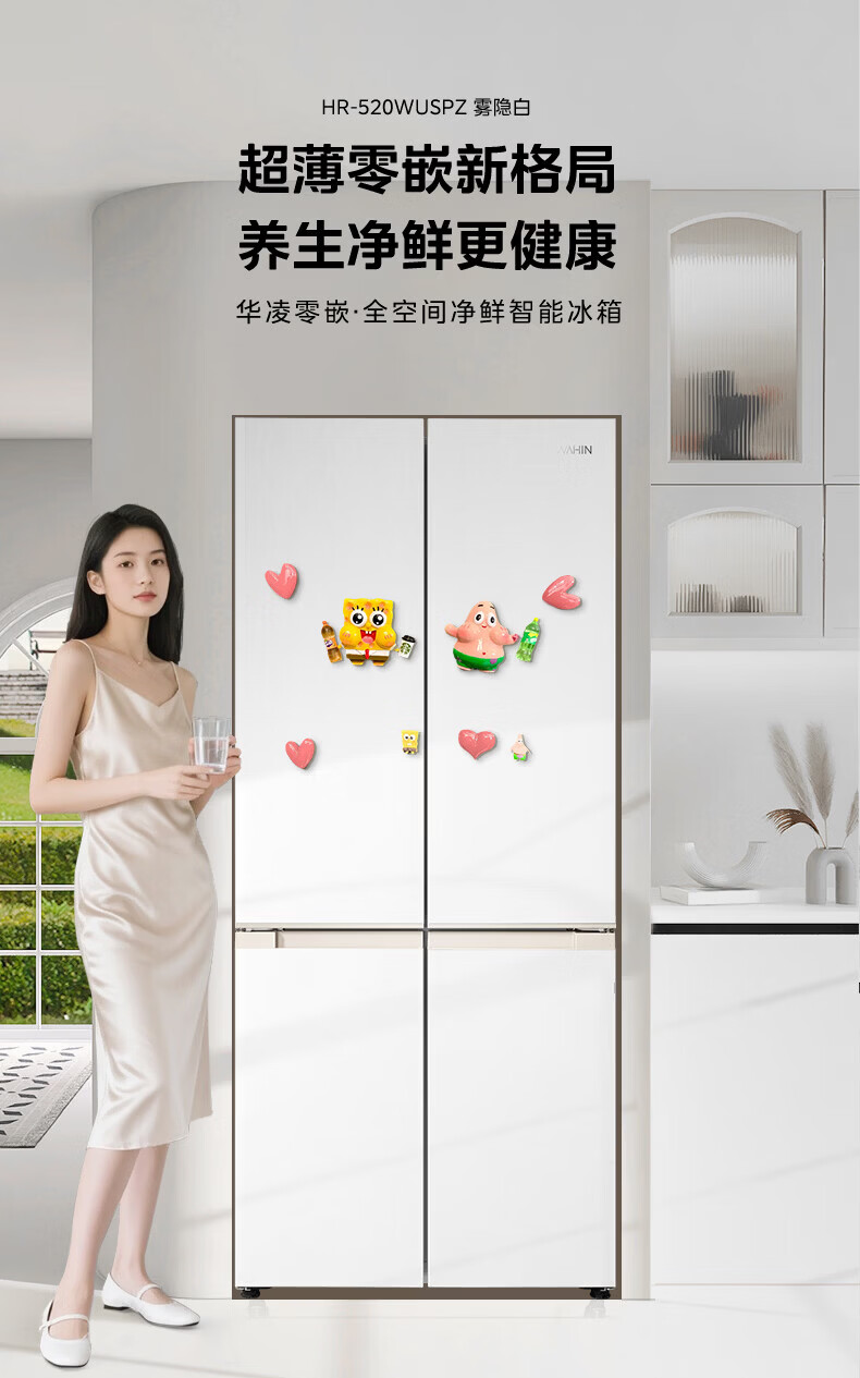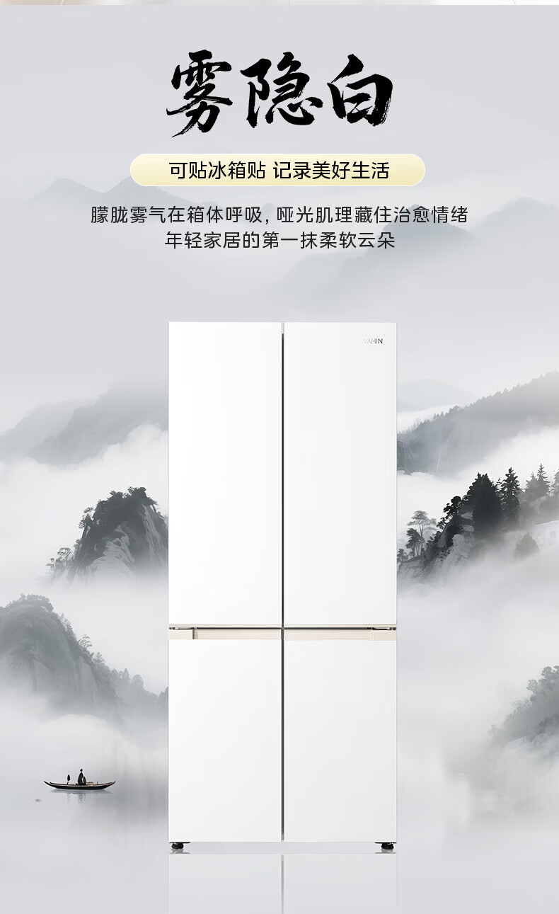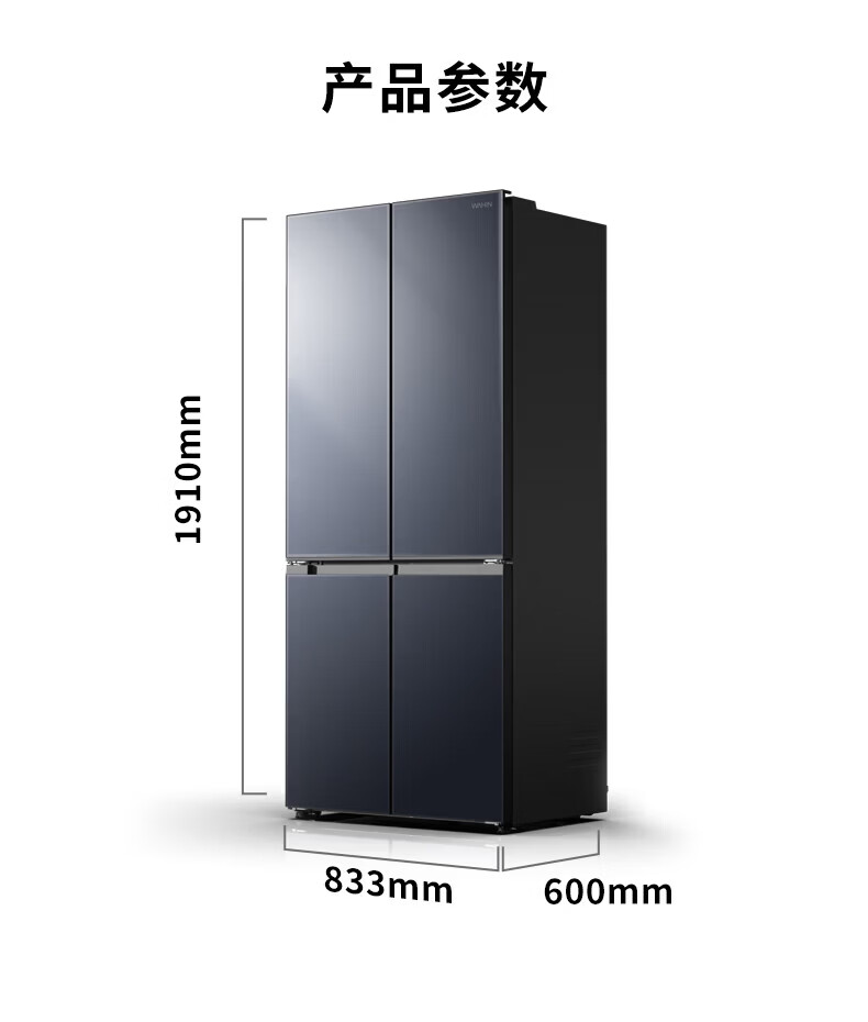 Hualing Refrigerator produced by Midea, first-class energy efficiency cross double-door, four-door, multi-door, dual-system, large-capacity PT odor-free and sterilizing home silent thin removable refrigerator HR-426WSP/air-cooled frost-free/dual frequency conversion first-class energy efficiency