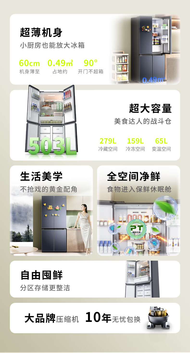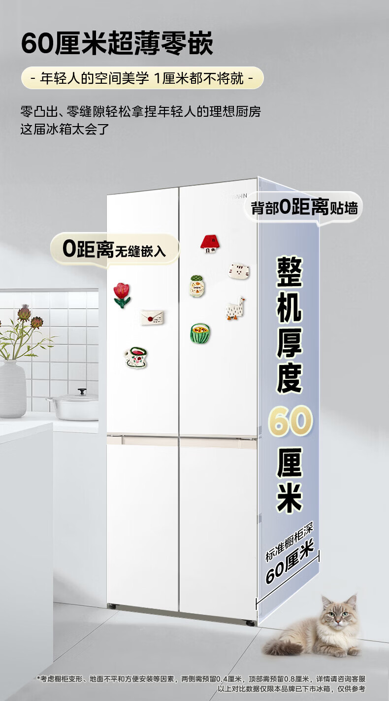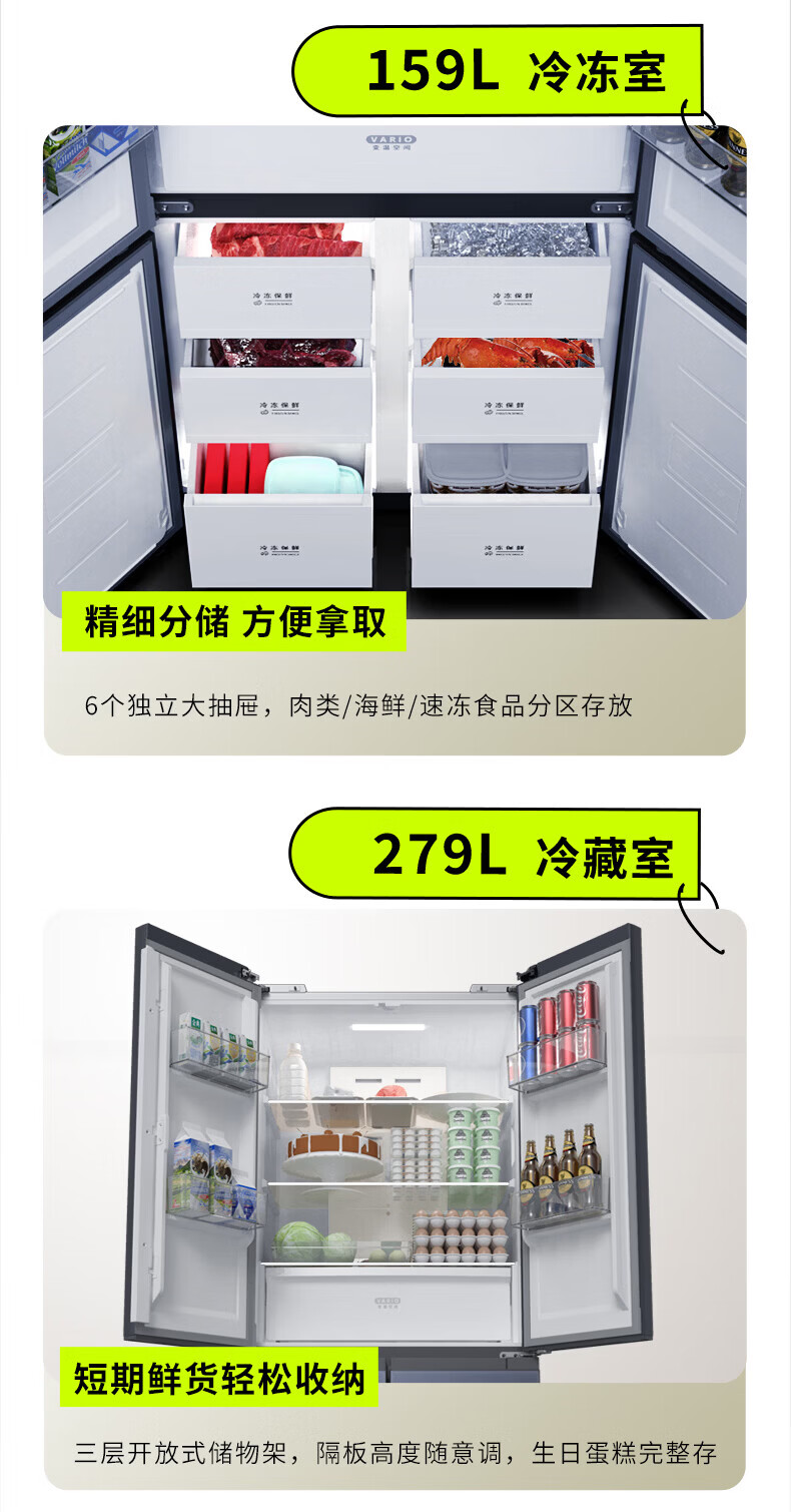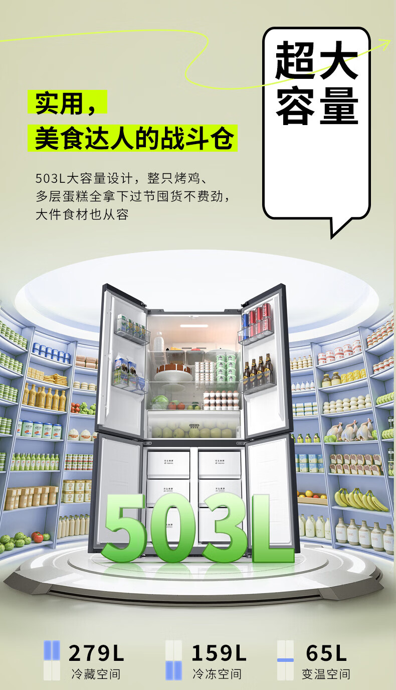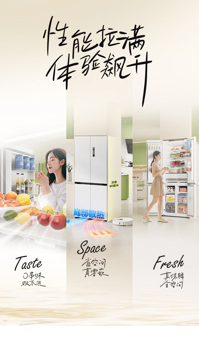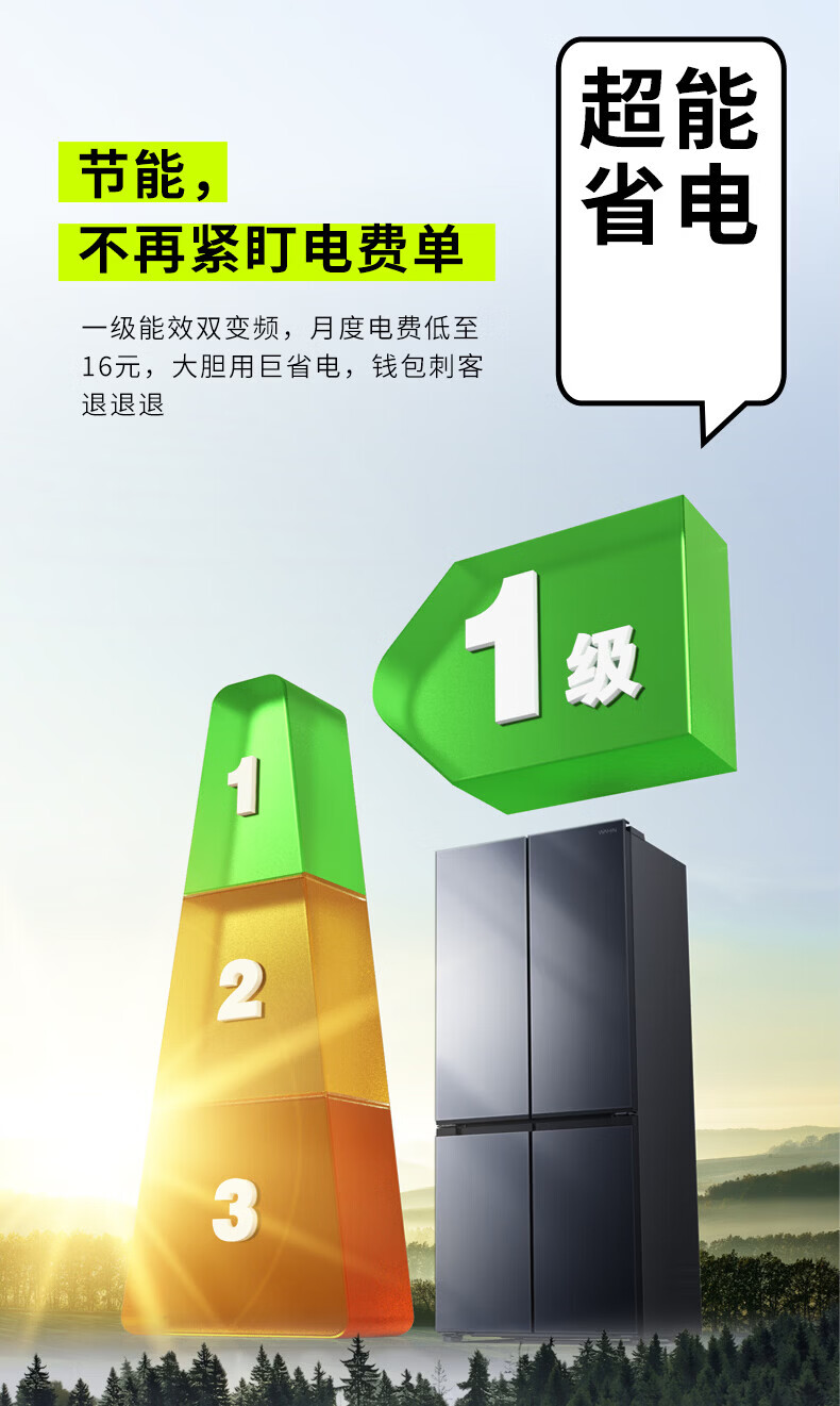 Hualing Refrigerator produced by Midea, first-class energy efficiency cross double-door, four-door, multi-door, dual-system, large-capacity PT odor-free and sterilizing home silent thin removable refrigerator HR-426WSP/air-cooled frost-free/dual frequency conversion first-class energy efficiency