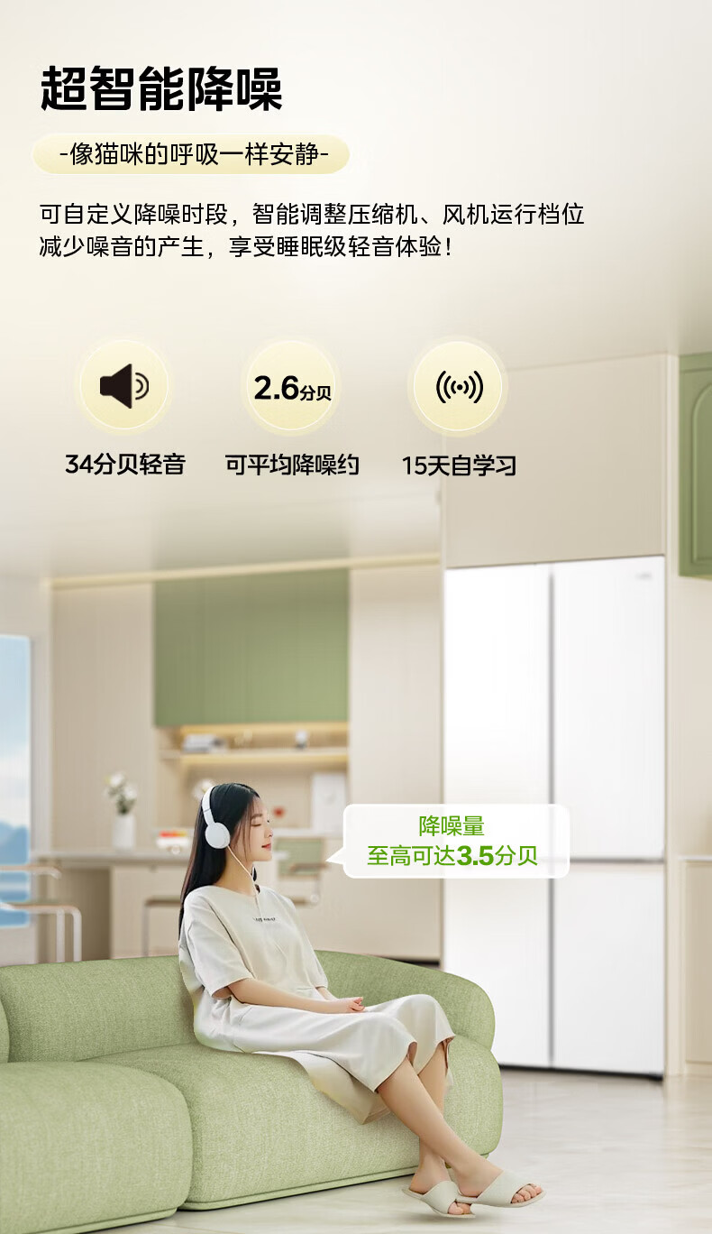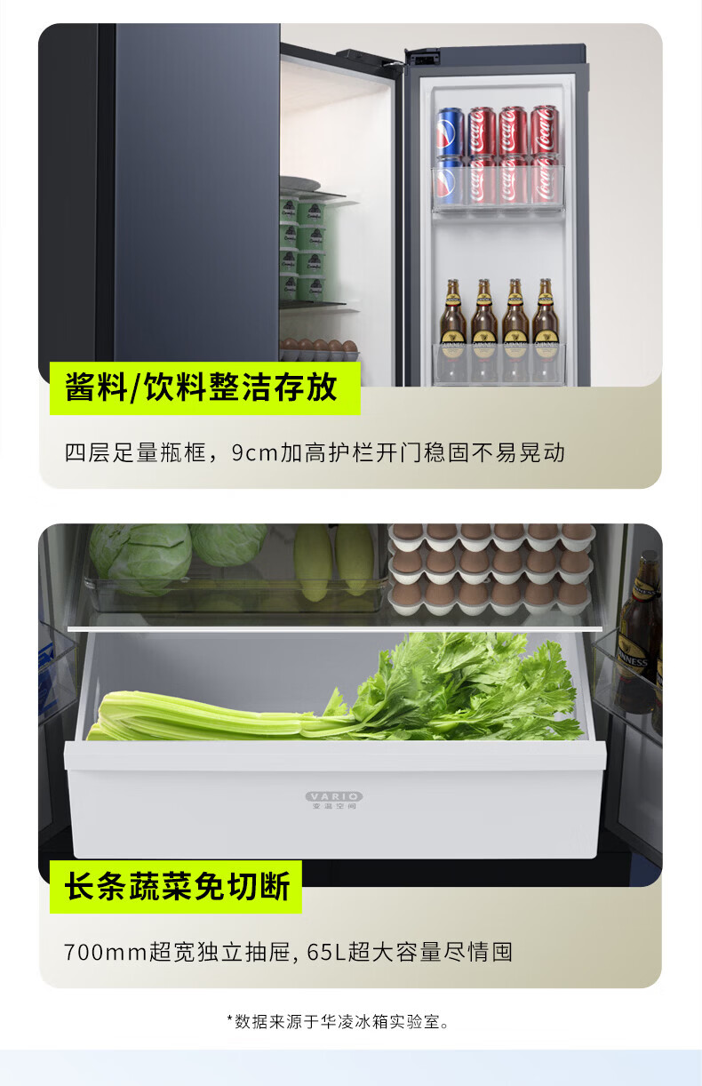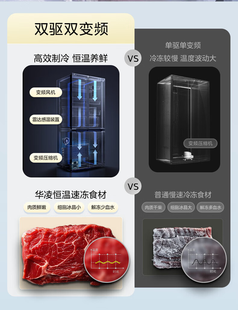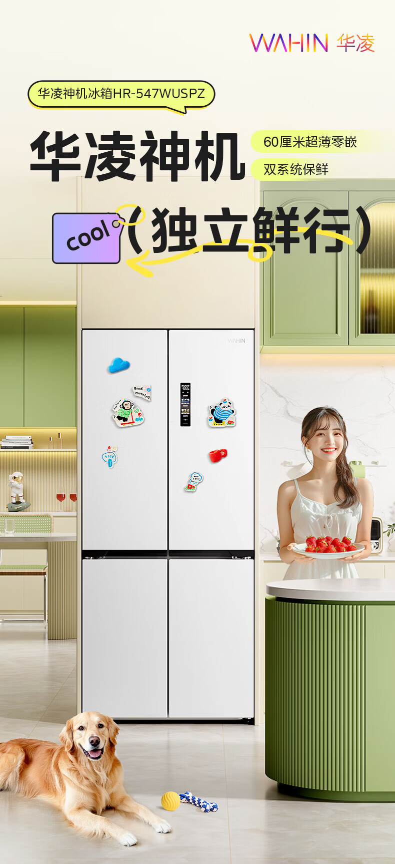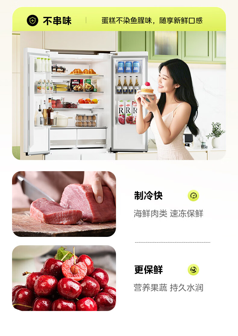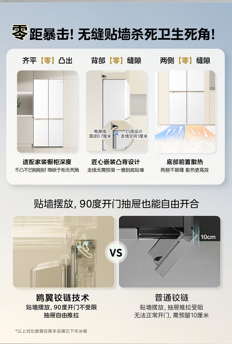 Hualing Refrigerator produced by Midea, first-class energy efficiency cross double-door, four-door, multi-door, dual-system, large-capacity PT odor-free and sterilizing home silent thin removable refrigerator HR-426WSP/air-cooled frost-free/dual frequency conversion first-class energy efficiency