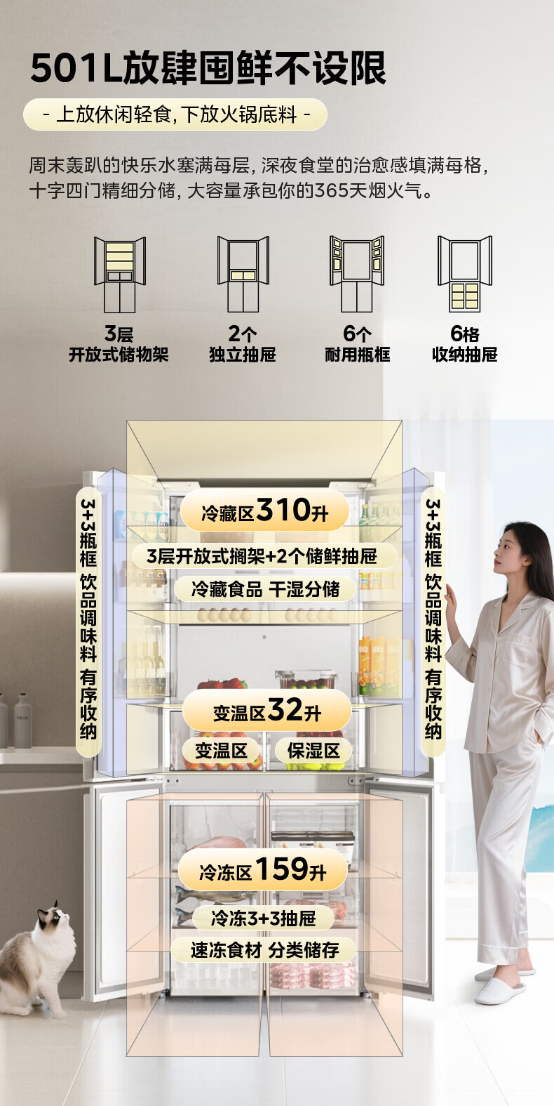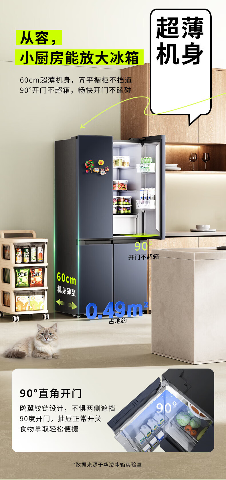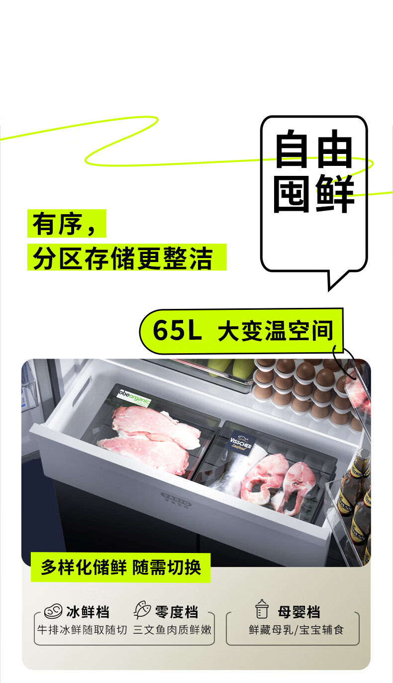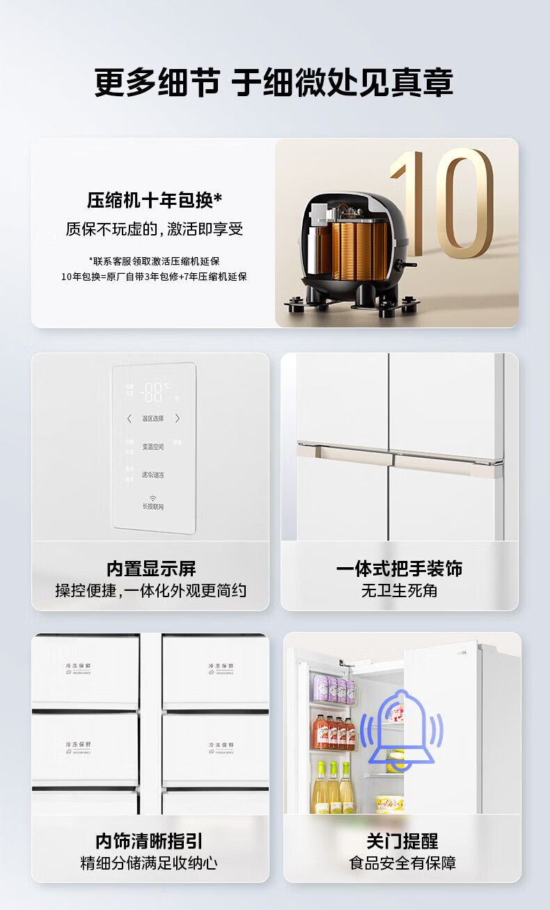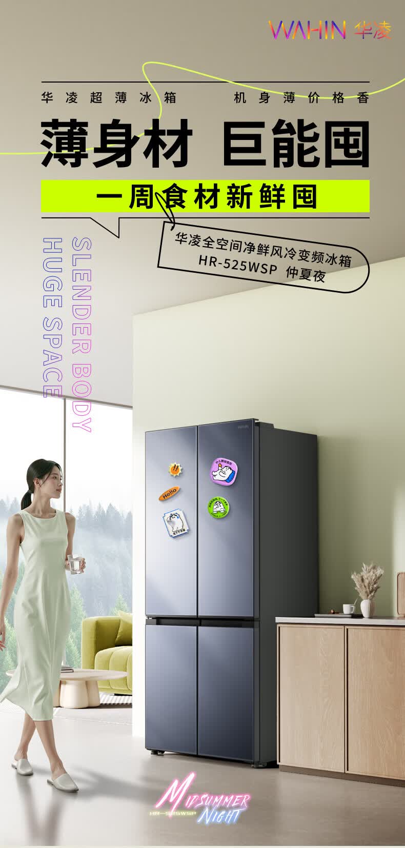 Hualing Refrigerator produced by Midea, first-class energy efficiency cross double-door, four-door, multi-door, dual-system, large-capacity PT odor-free and sterilizing home silent thin removable refrigerator HR-426WSP/air-cooled frost-free/dual frequency conversion first-class energy efficiency