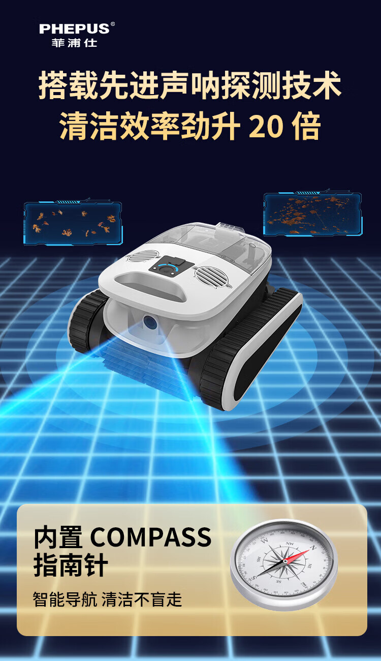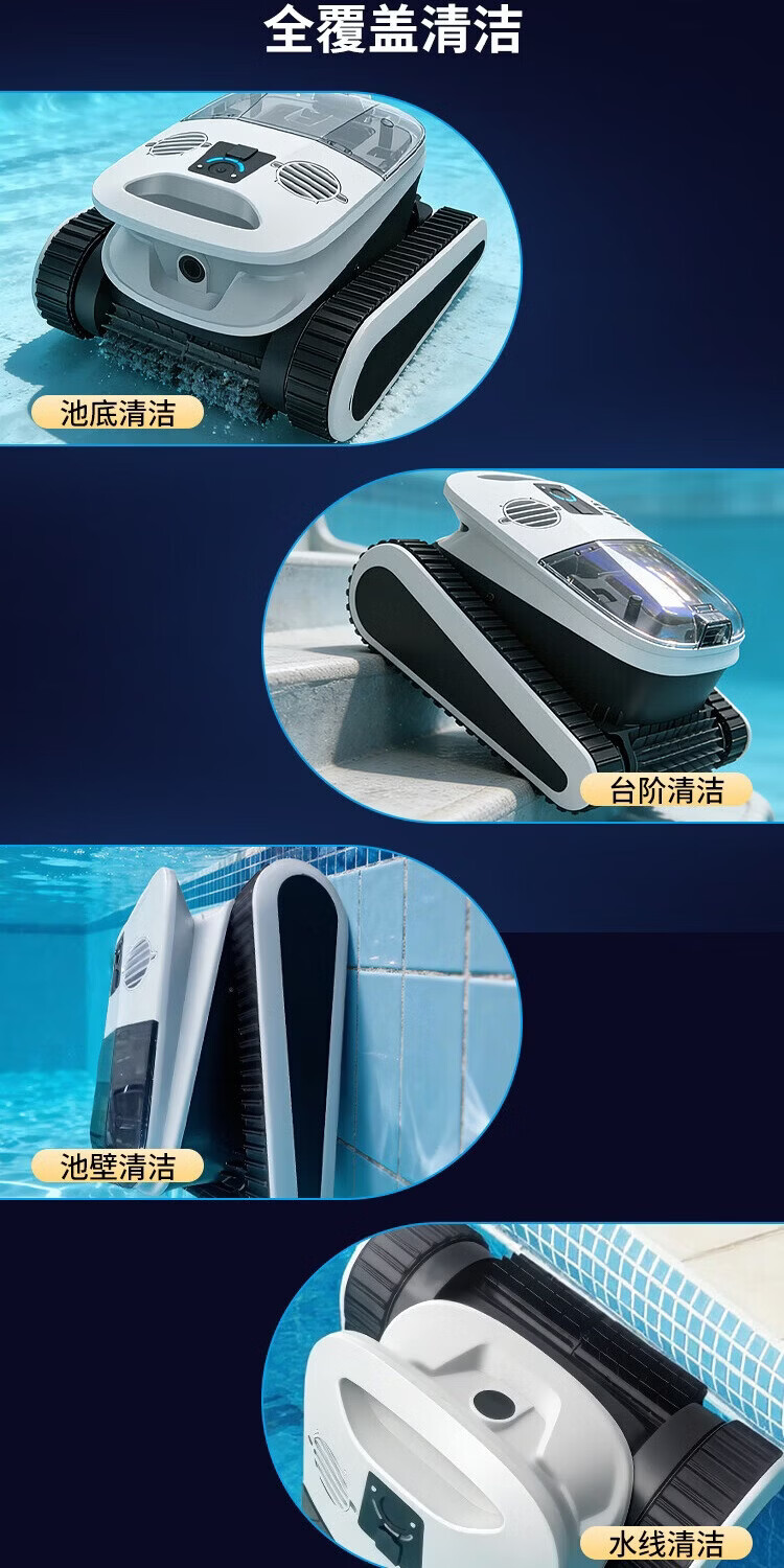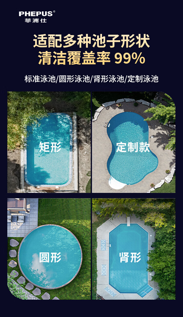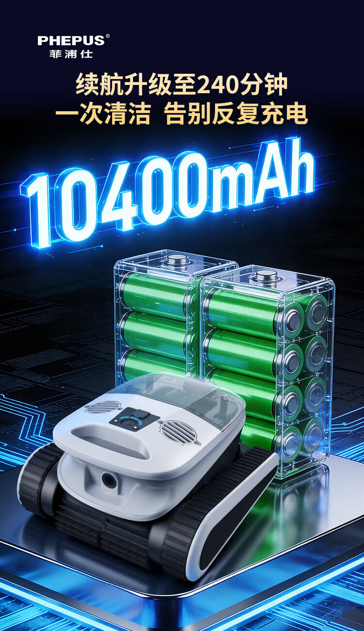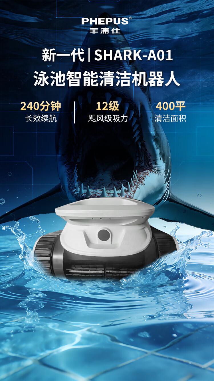 PHEPUS Swimming Pool Automatic Sewage Suction Machine Wireless Intelligent Underwater Cleaning Robot Villa B&B Fish Pond Pool Vacuum Cleaner A01-Shark Wireless Fully Automatic Model Battery Life 3H/Cleaning Area 400