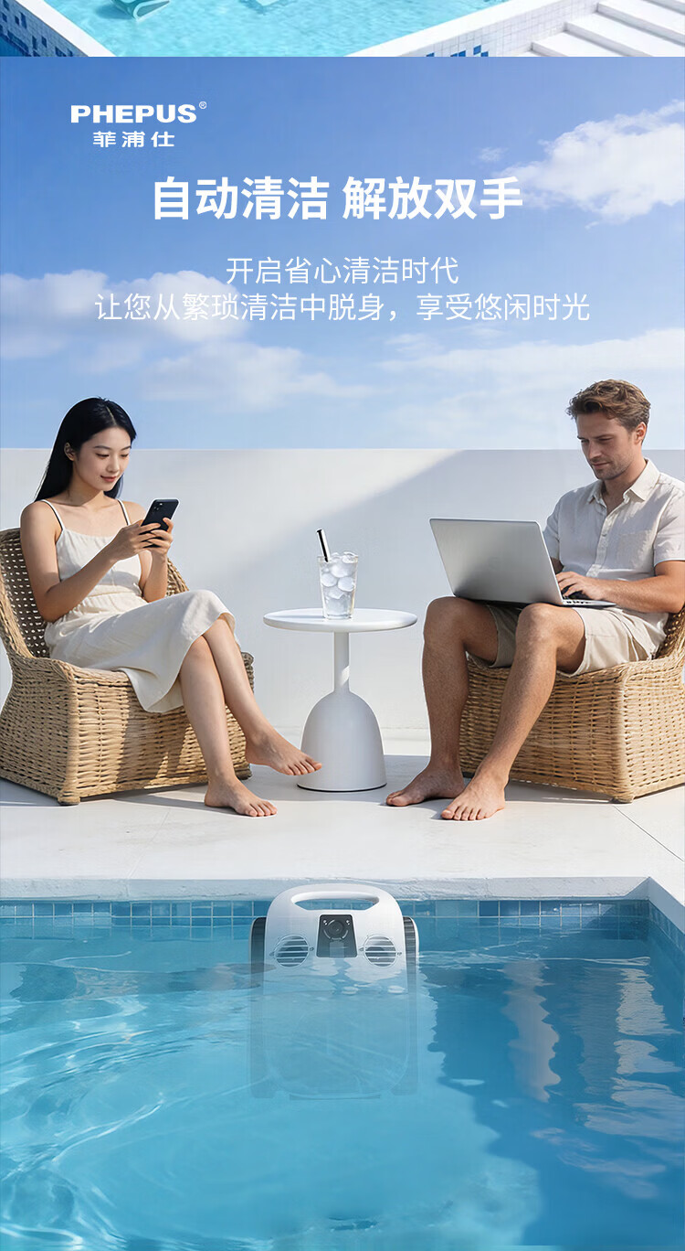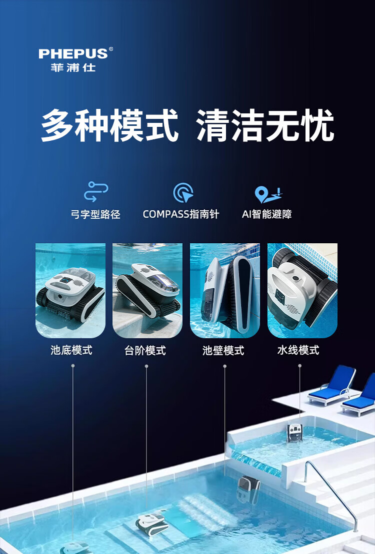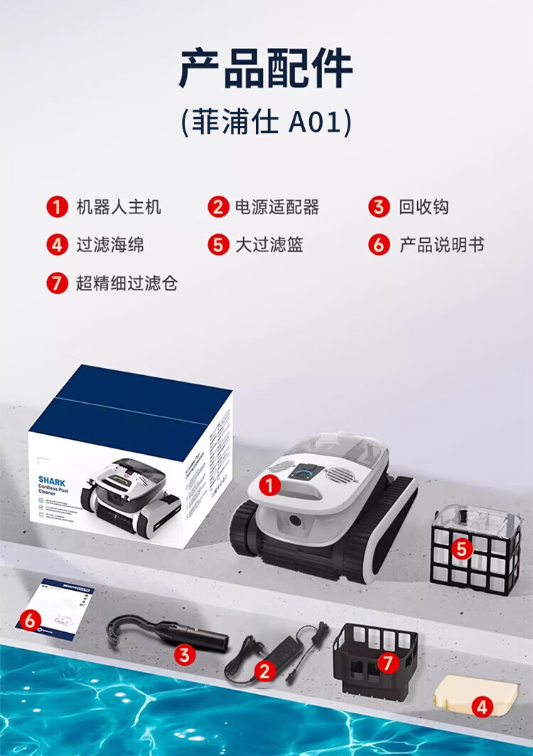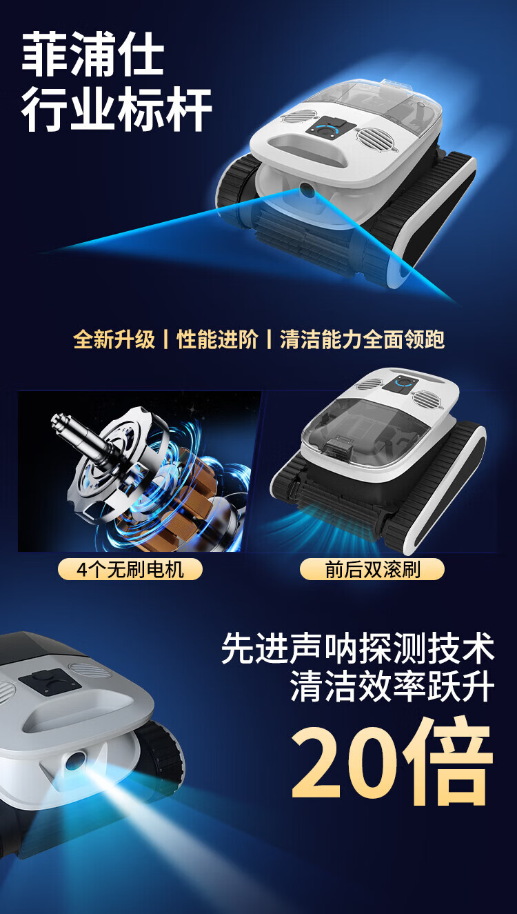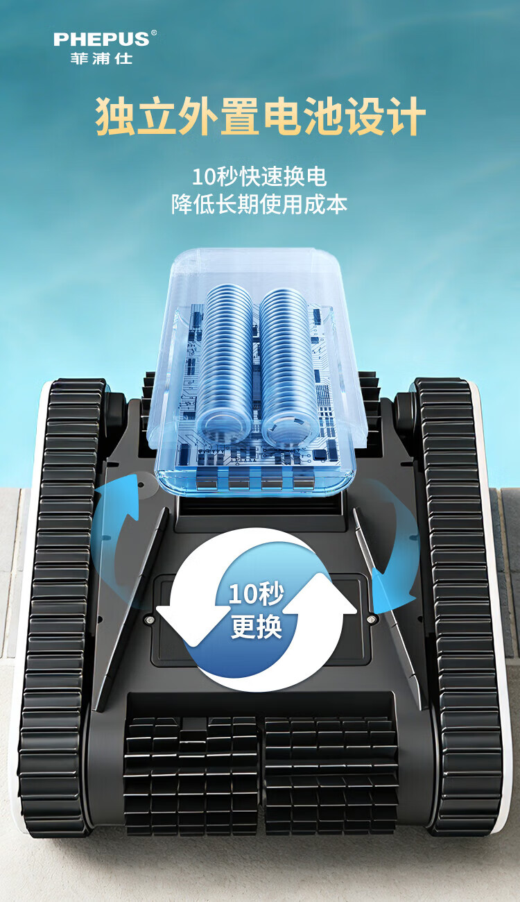 PHEPUS Swimming Pool Automatic Sewage Suction Machine Wireless Intelligent Underwater Cleaning Robot Villa B&B Fish Pond Pool Vacuum Cleaner A01-Shark Wireless Fully Automatic Model Battery Life 3H/Cleaning Area 400
