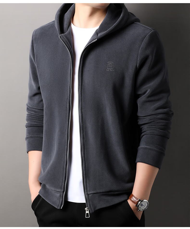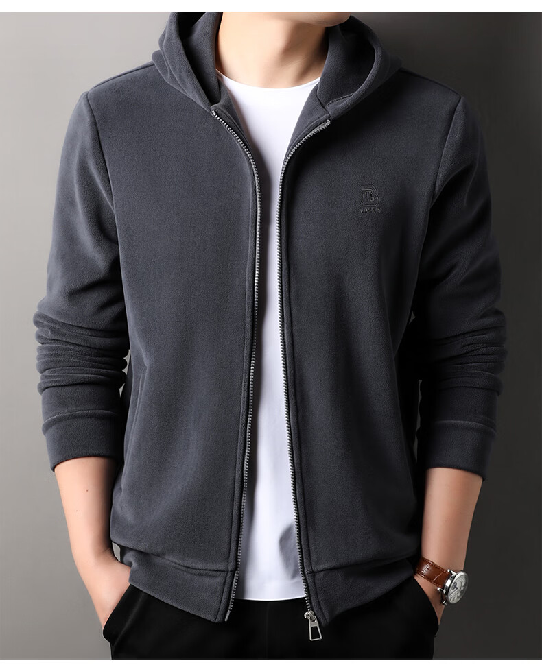 Hengyuanxiang Austrian velvet sweatshirt men's jacket autumn and winter new cardigan hooded casual sports thickened warm jacket men's gray 3XL 185 recommended 170-185Jin Jin equals 0.5 kg
