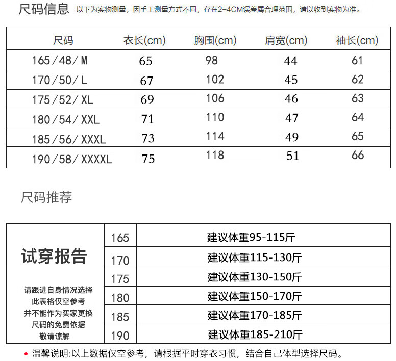China (cm) 165 / 88-90 170 / 96-98 175 / 108-110 180 / 118-122 185 / 126-130