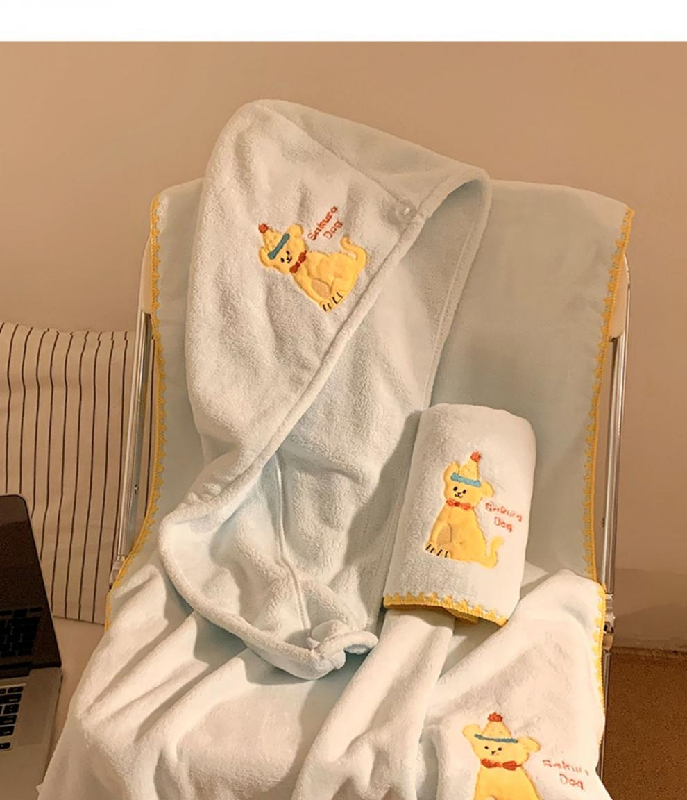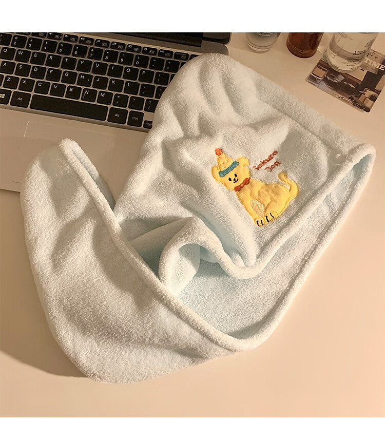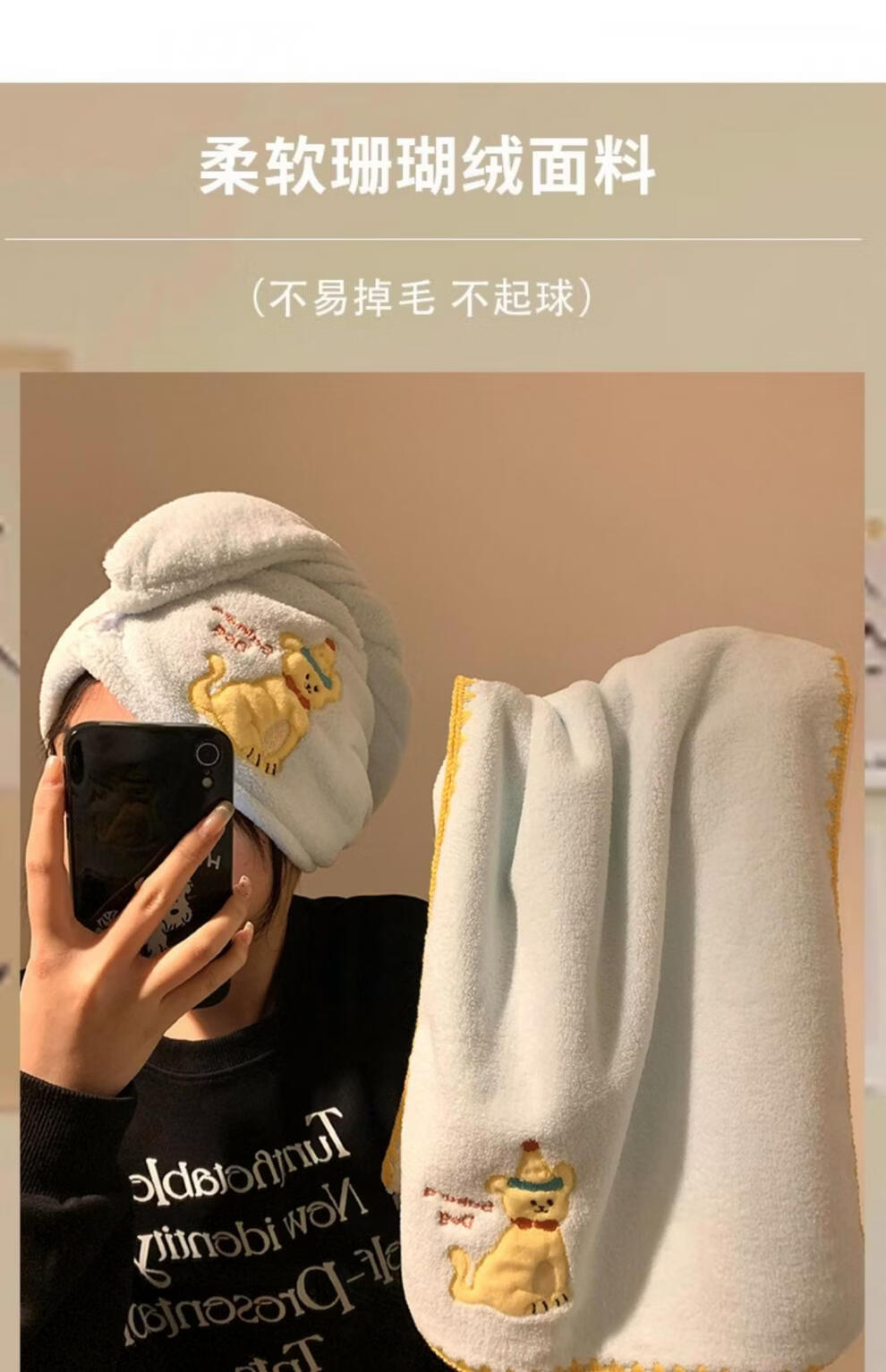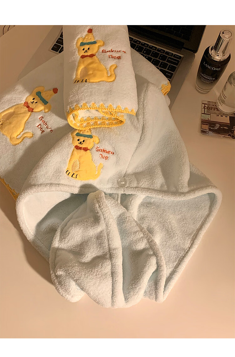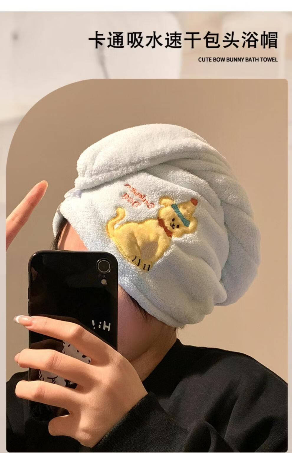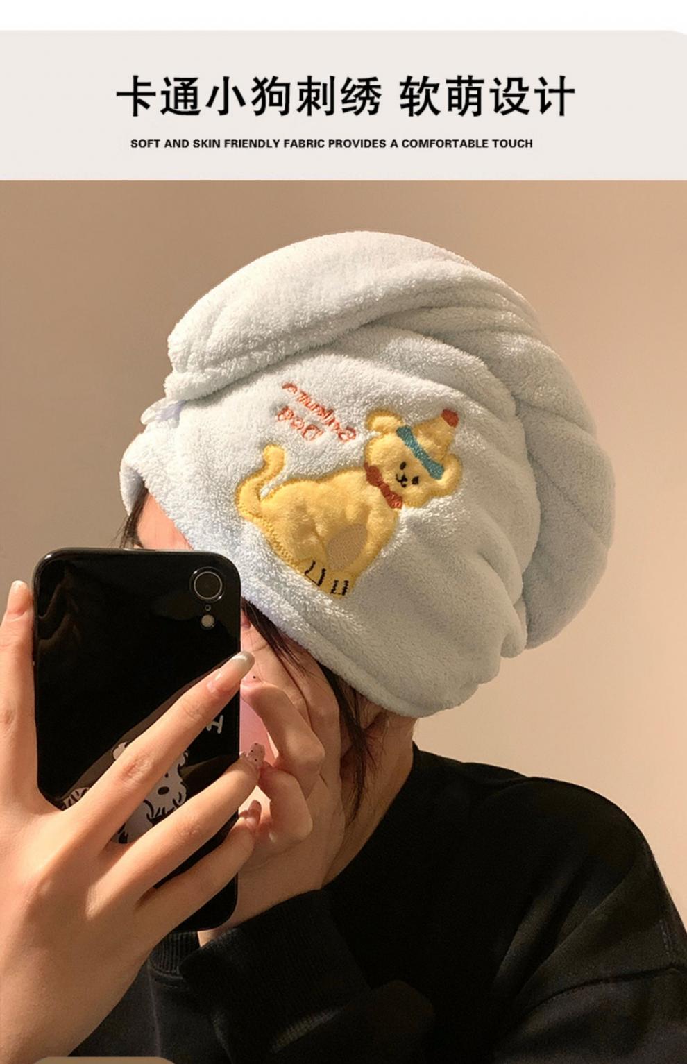 Jingga cute puppy hair drying cap for women, absorbent and quick-drying hair towel, coral velvet thickened shampoo and shower cap for students, yellow puppy drying hair cap, absorbent and quick-drying