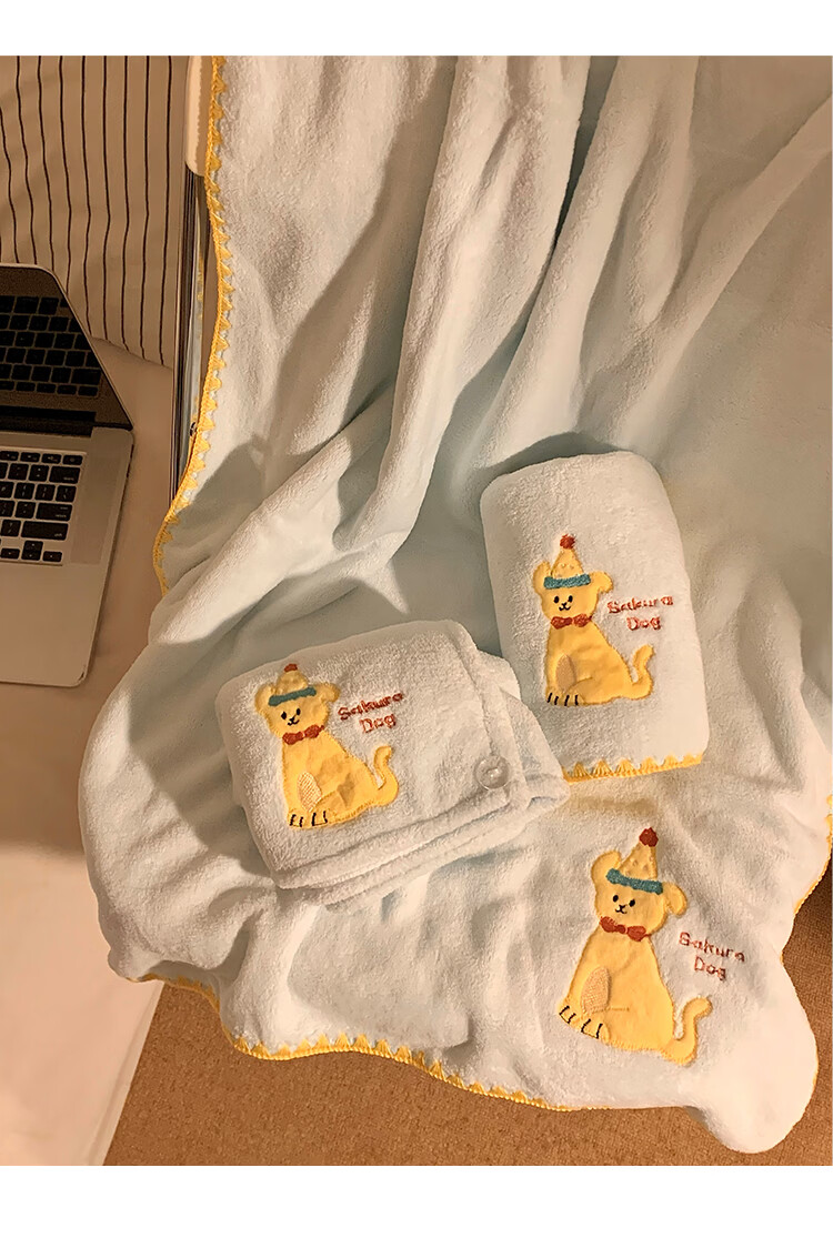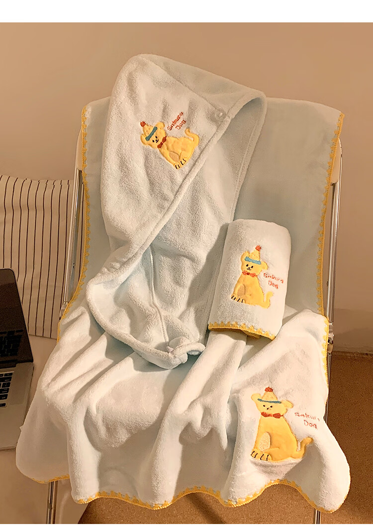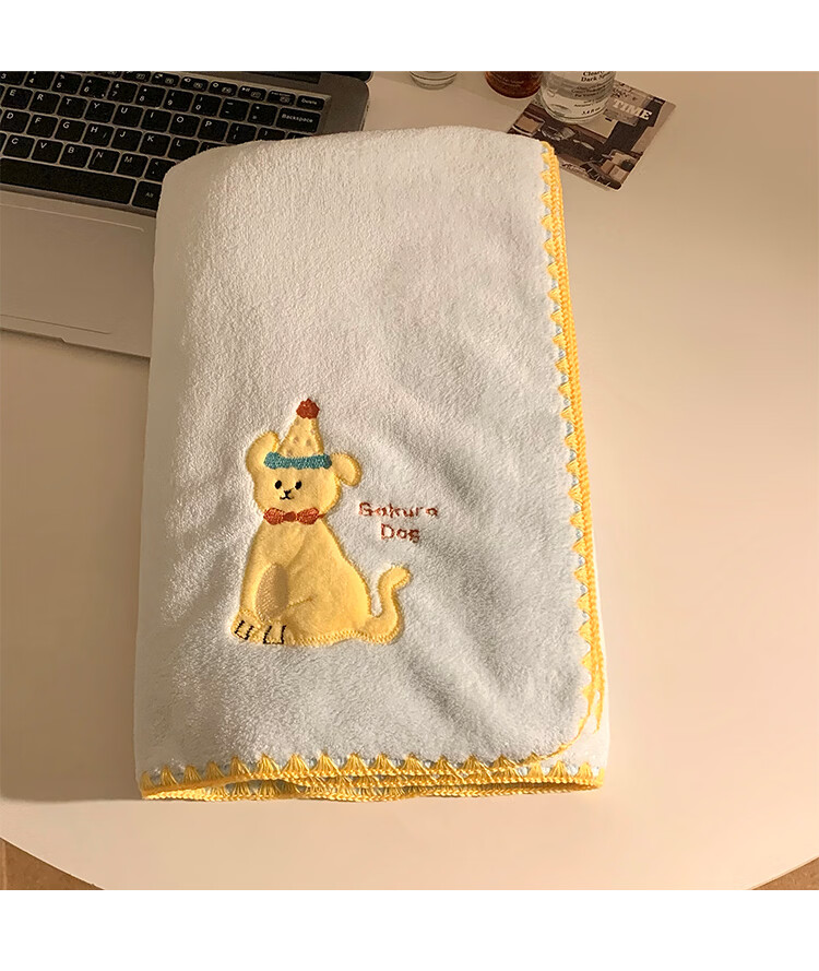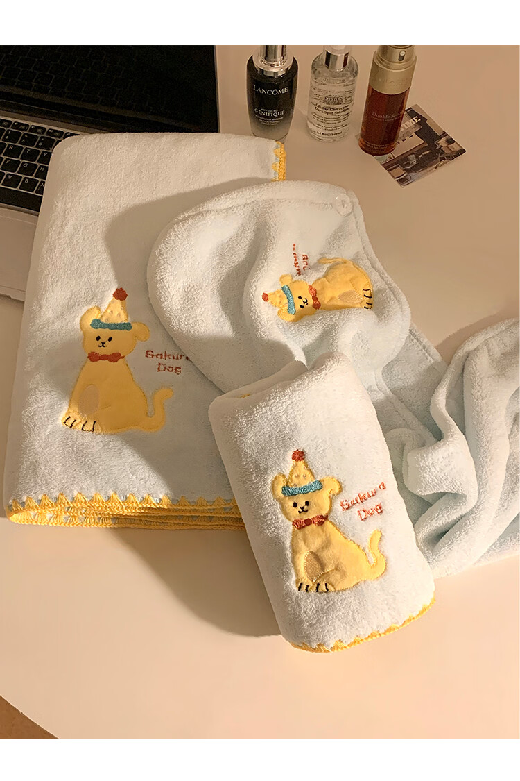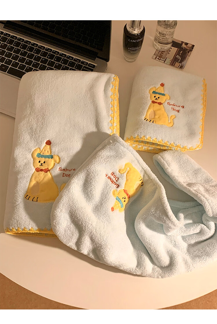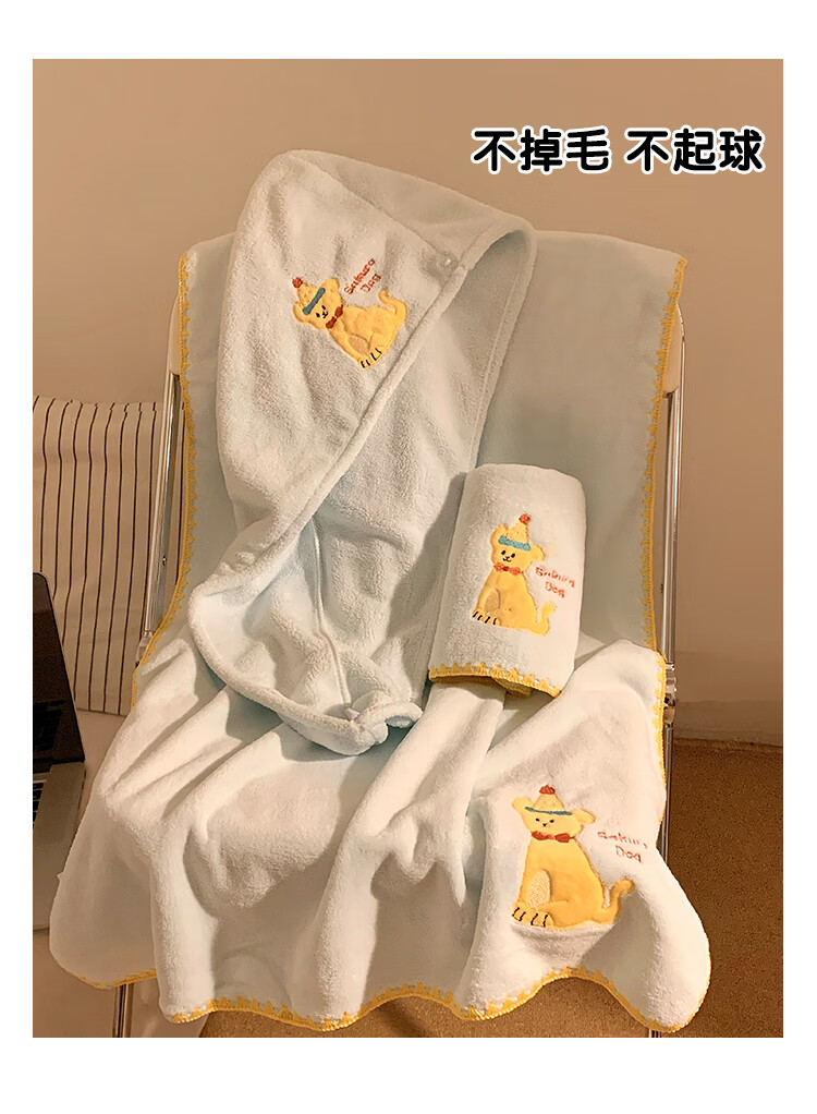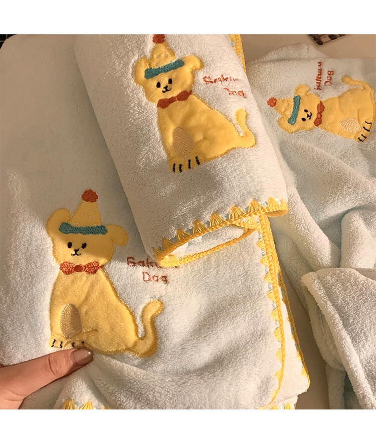 Jingga cute puppy hair drying cap for women, absorbent and quick-drying hair towel, coral velvet thickened shampoo and shower cap for students, yellow puppy drying hair cap, absorbent and quick-drying