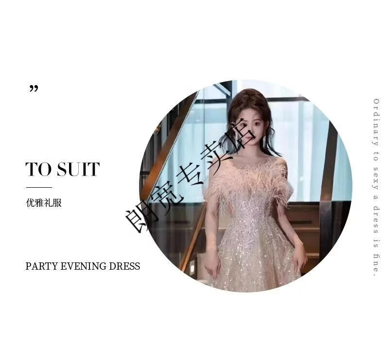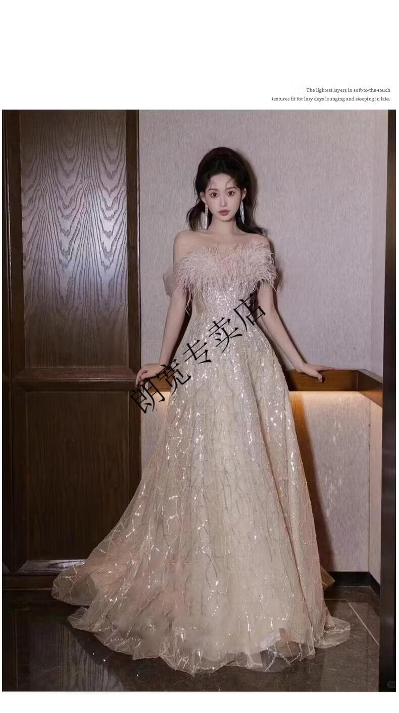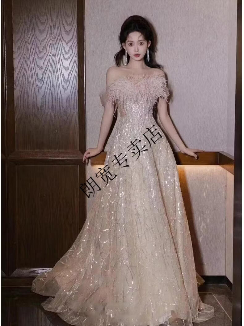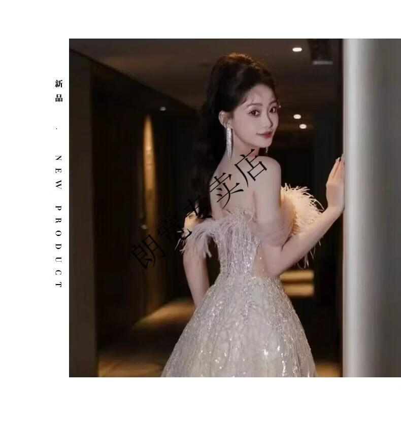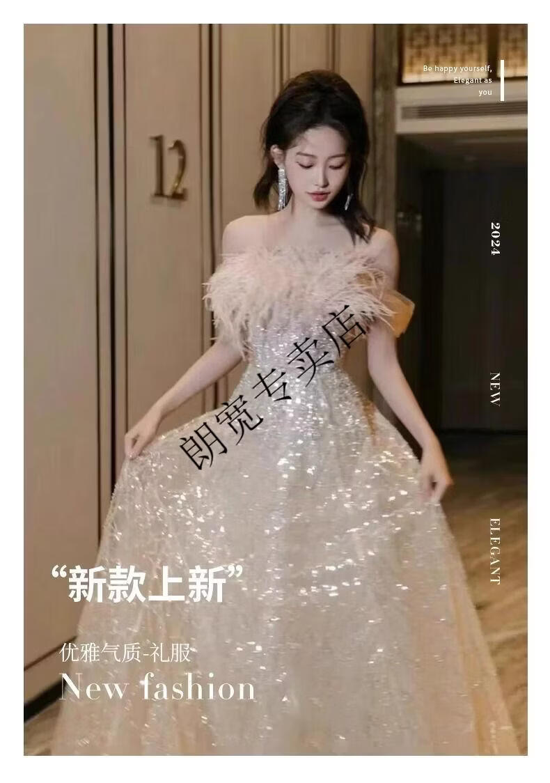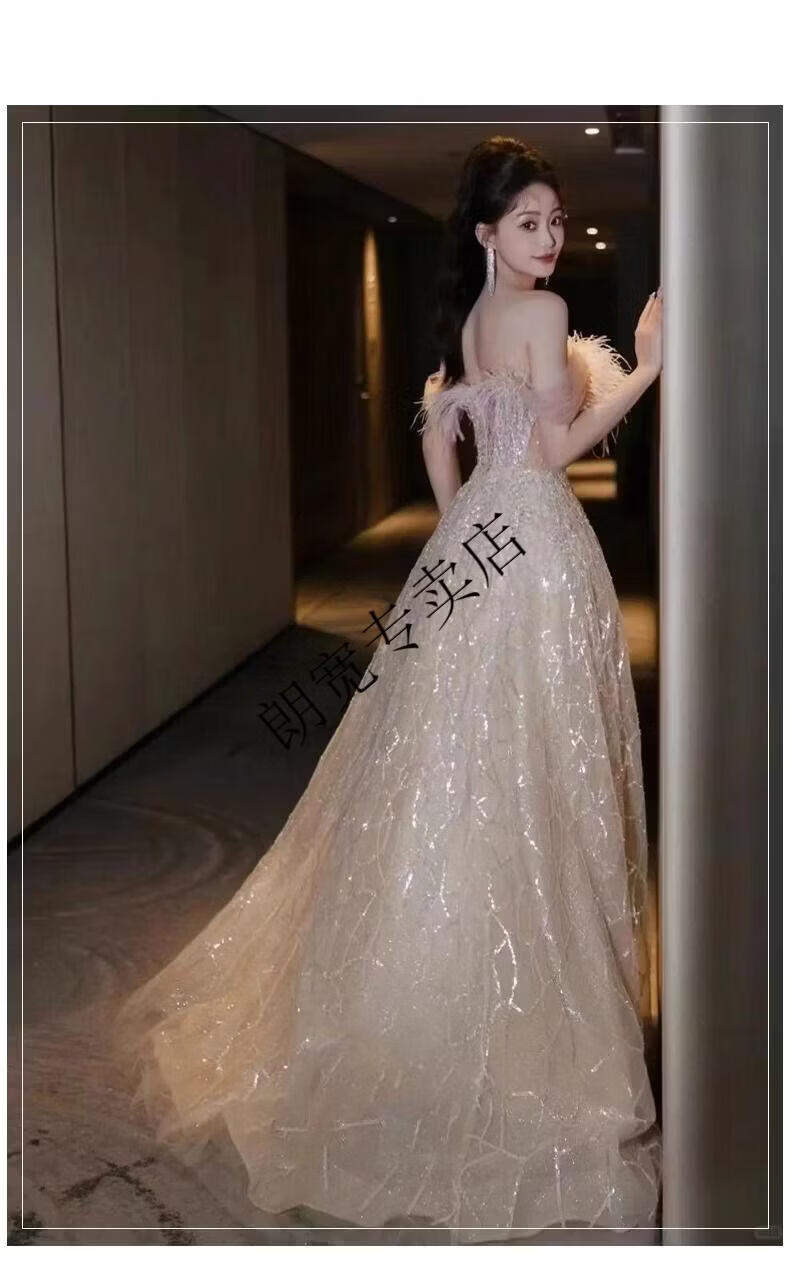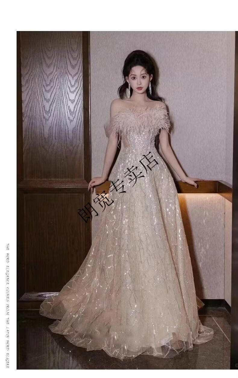 Pierre Cardin haute couture evening dress for women 2025 new women's light luxury high-end banquet host 18th birthday adult ceremony toast clothing 1727 Qi floor style XS
