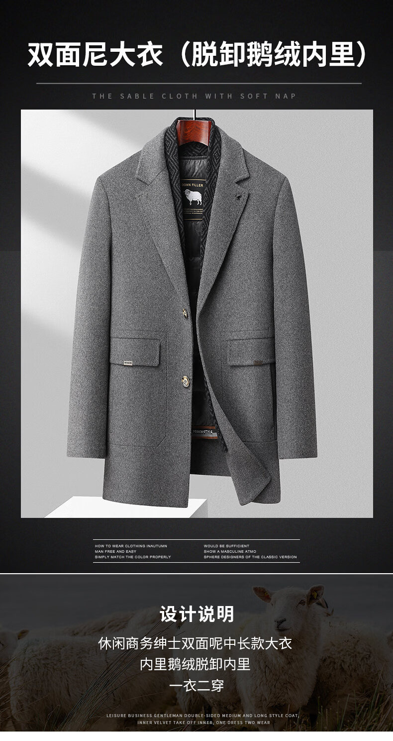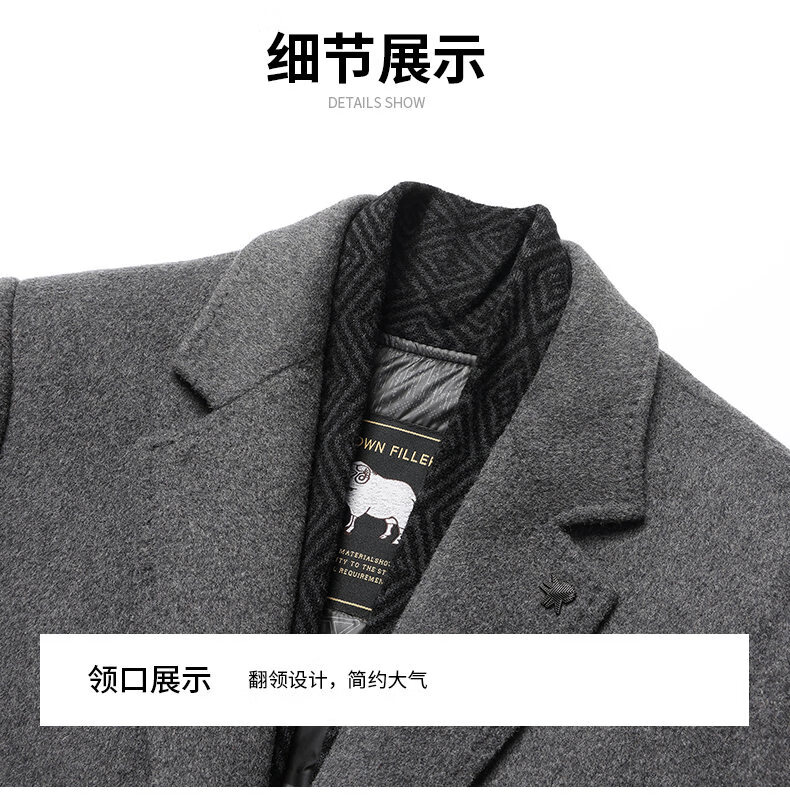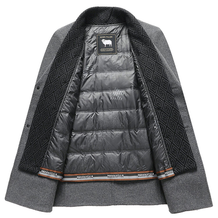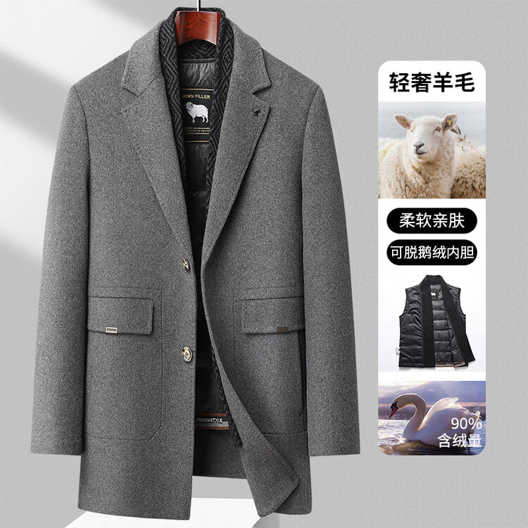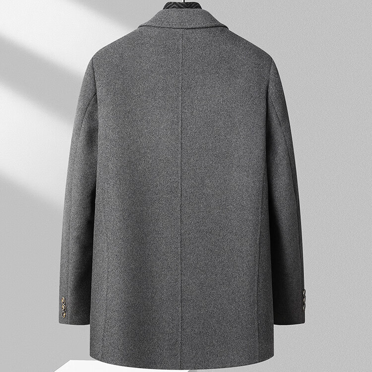 Lomon wool woolen coat for men, down lining, double-sided woolen scarf collar, casual middle-aged dad autumn and winter coat, light gray M